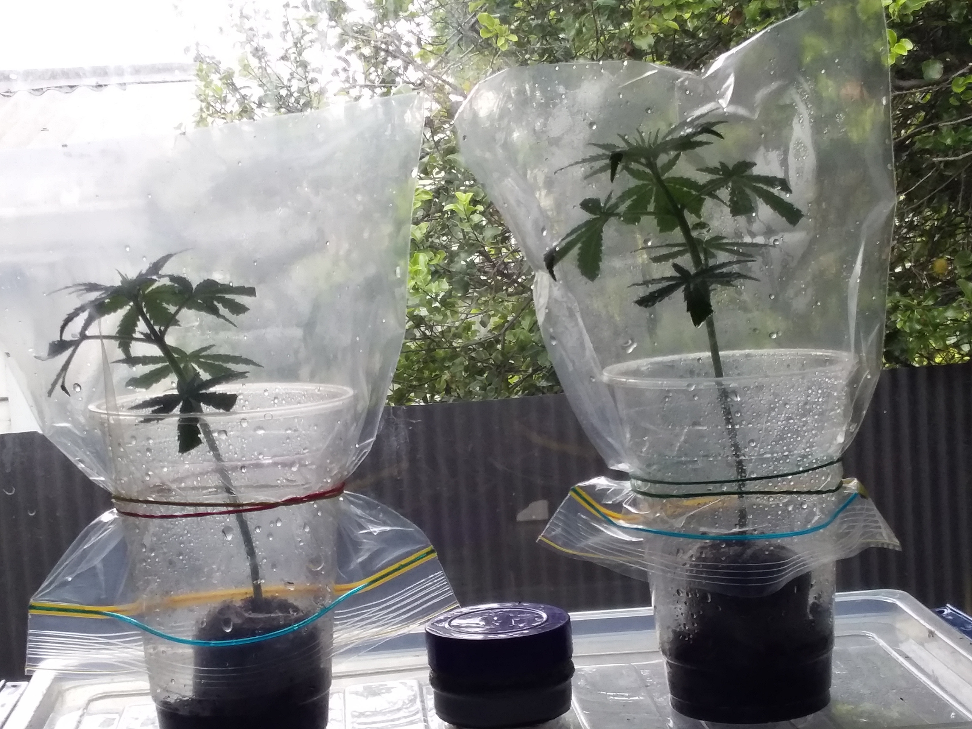 this is my cloning at moment soil i plastic cup. jiffy. Clonex.clone ziplock bag with rubberband at bottom to humidify most and leave alone till day 3 .cut 1st small top corner of bag day 6 cut 2nd corner of bag bigger than 1st cut so now 2x corners now venting day 9 remove bag completly day ready for outside due to now hardend in sunny climate i being told start couple days not in direct intense light i want to try to make me a basic 20w cooldaylight cfl rooter box