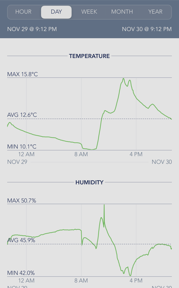My drying space humidity avg for 24 hrs is 45% and my temp avg is 12C. I’m running a small 6” fan blowing directly across a large bowl of water just to keep the RH where it is and to keep some air movement.