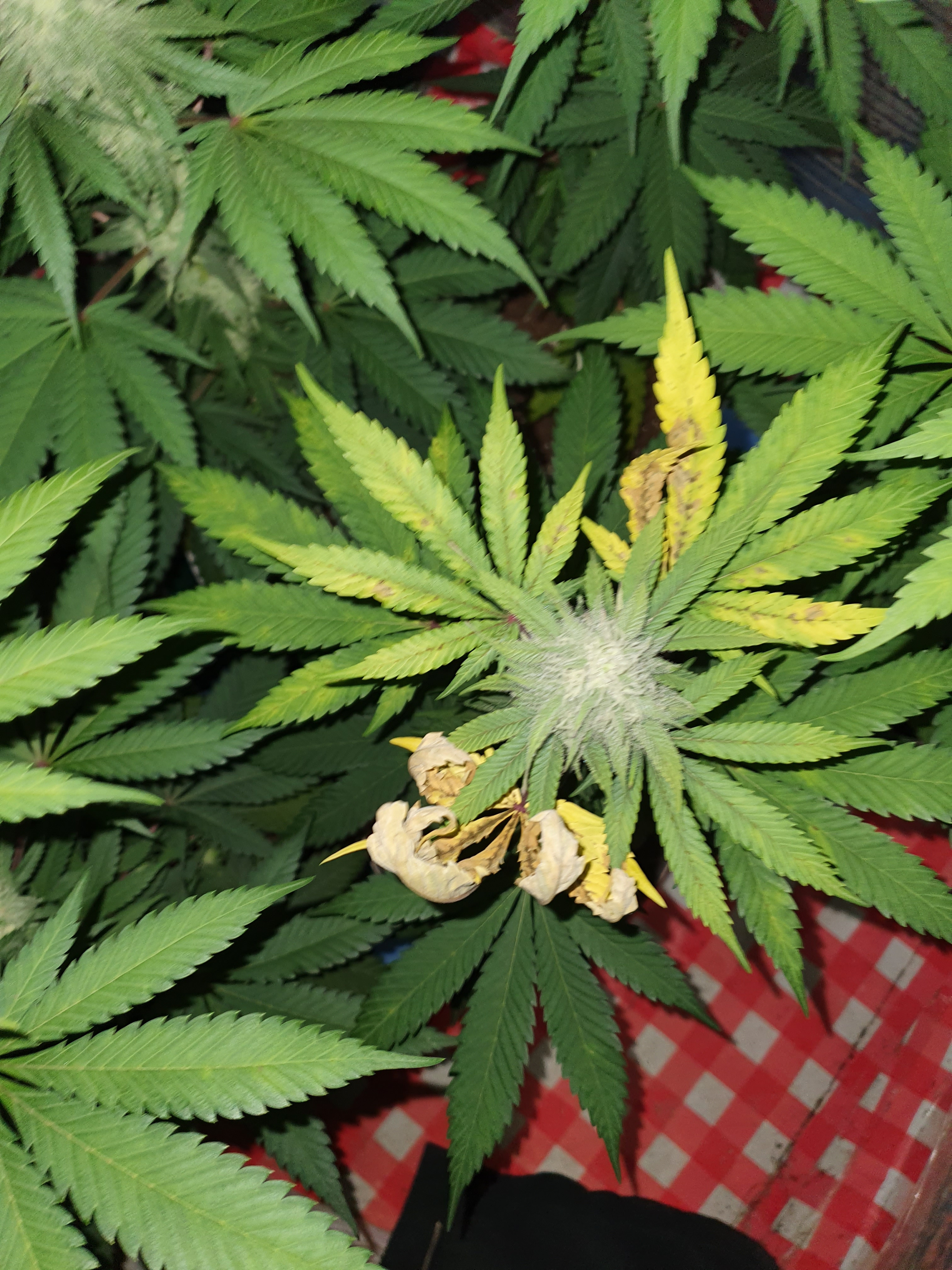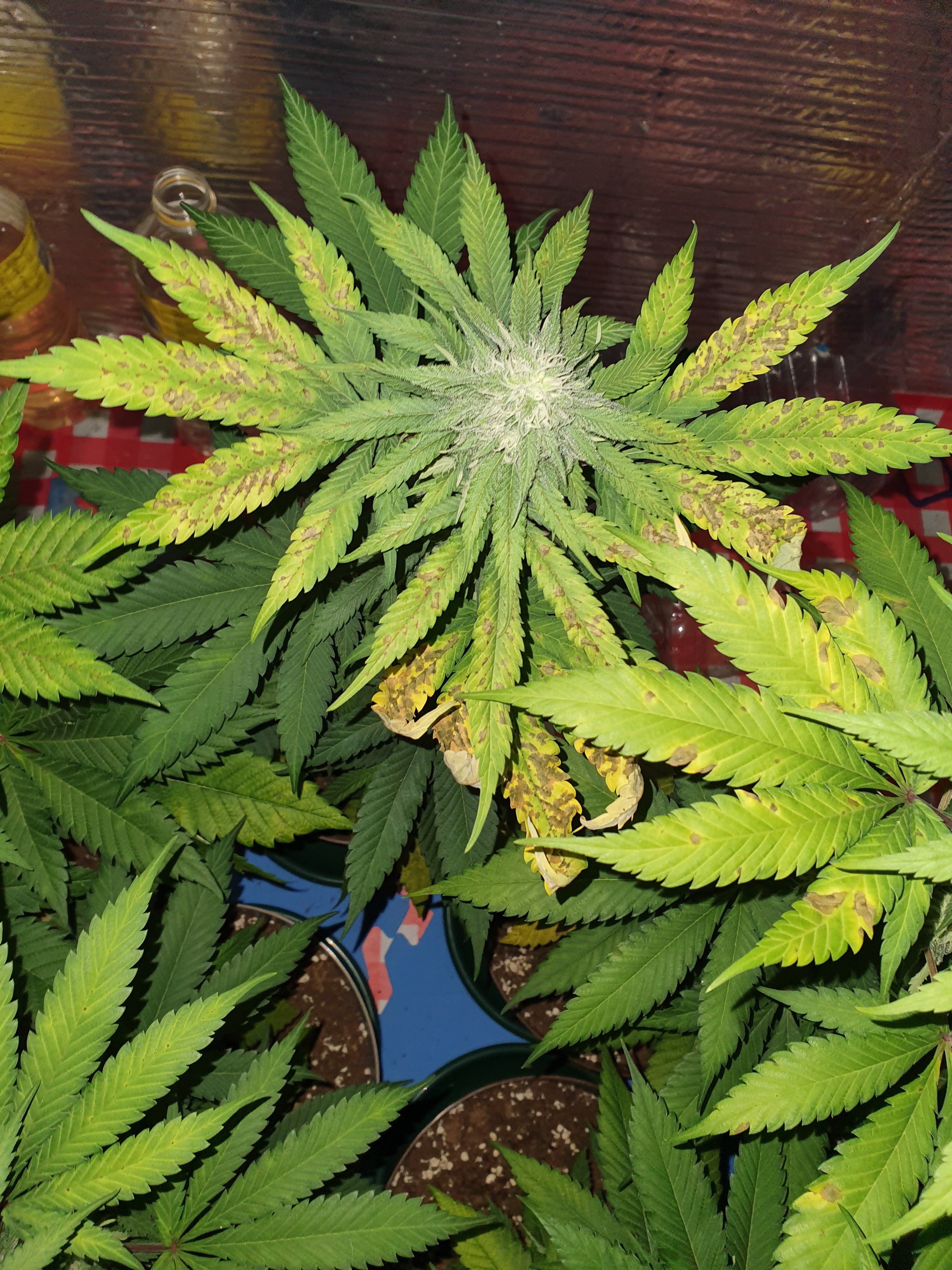 Hi.. Its been 2weeks since i change to 12/12 Light cycle and today 3 of the plants had Brown spots in the top leaves, what should i do?