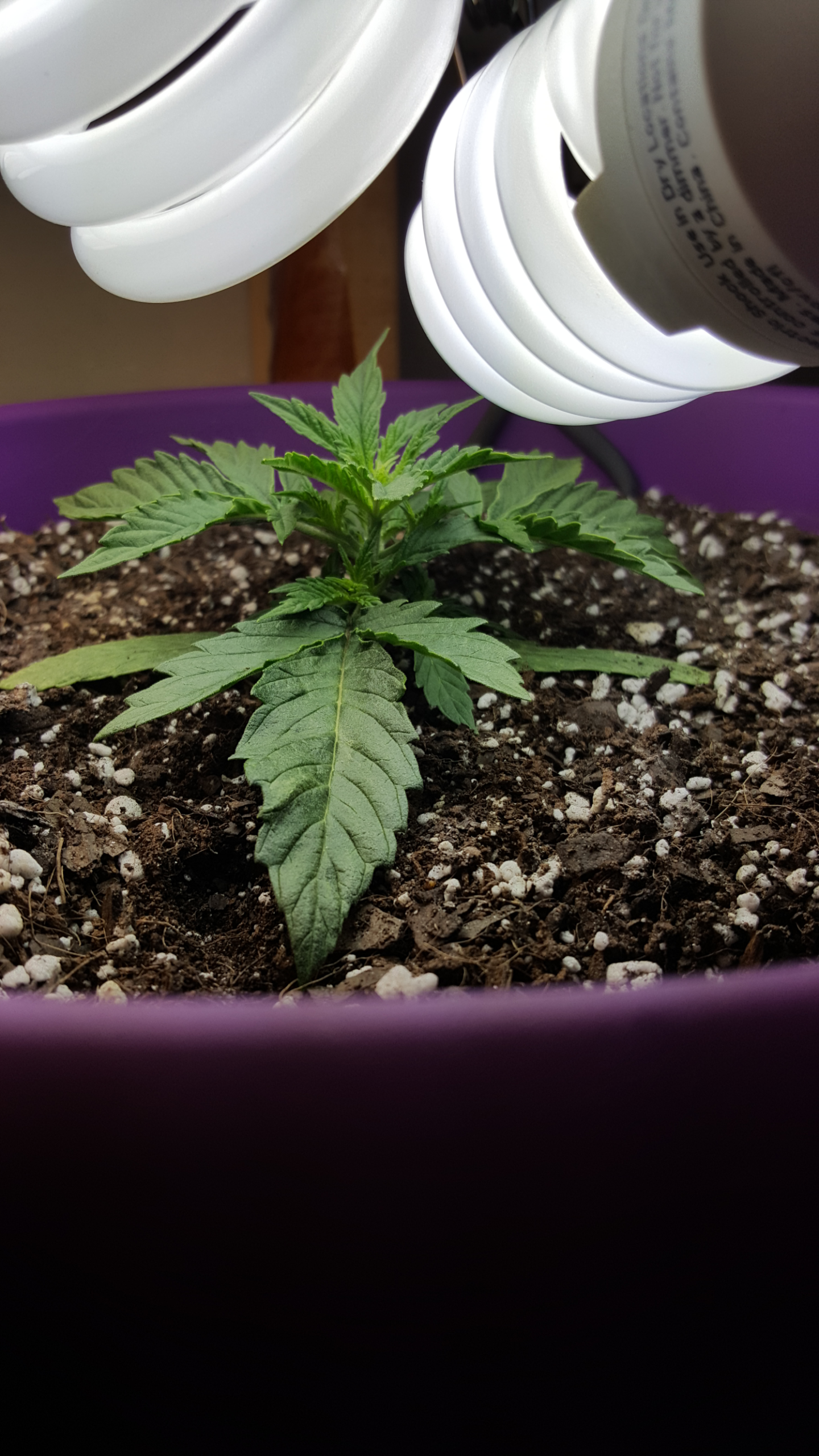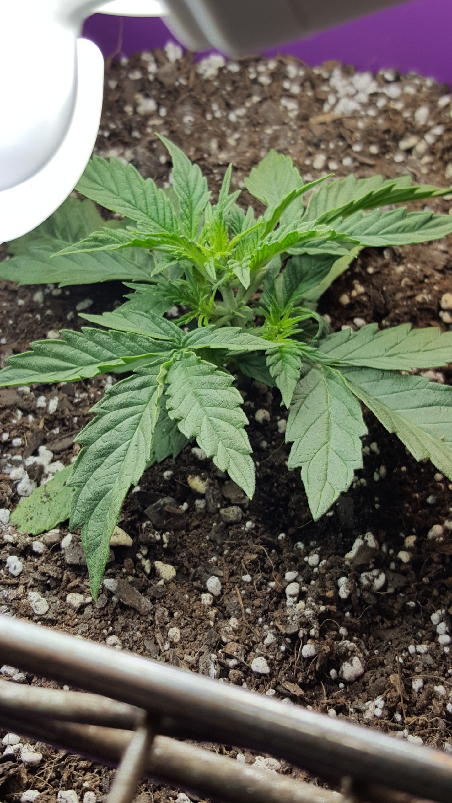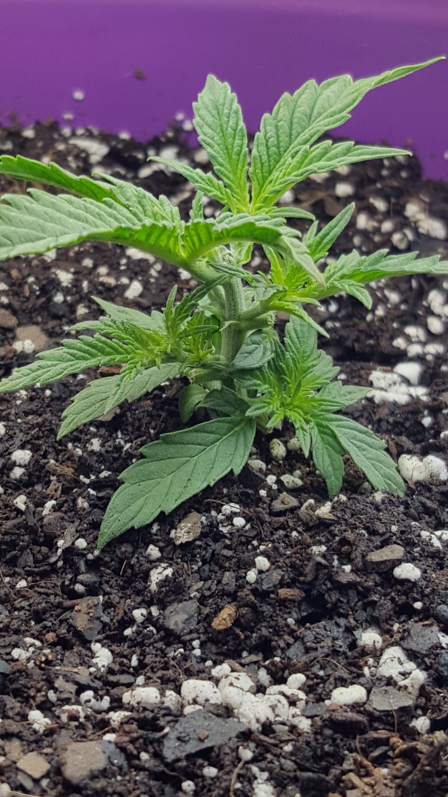 Day 18....she has been growing slowly due to low humidity in room.....I took some fan leaves off and fimed her last night at her fourth node