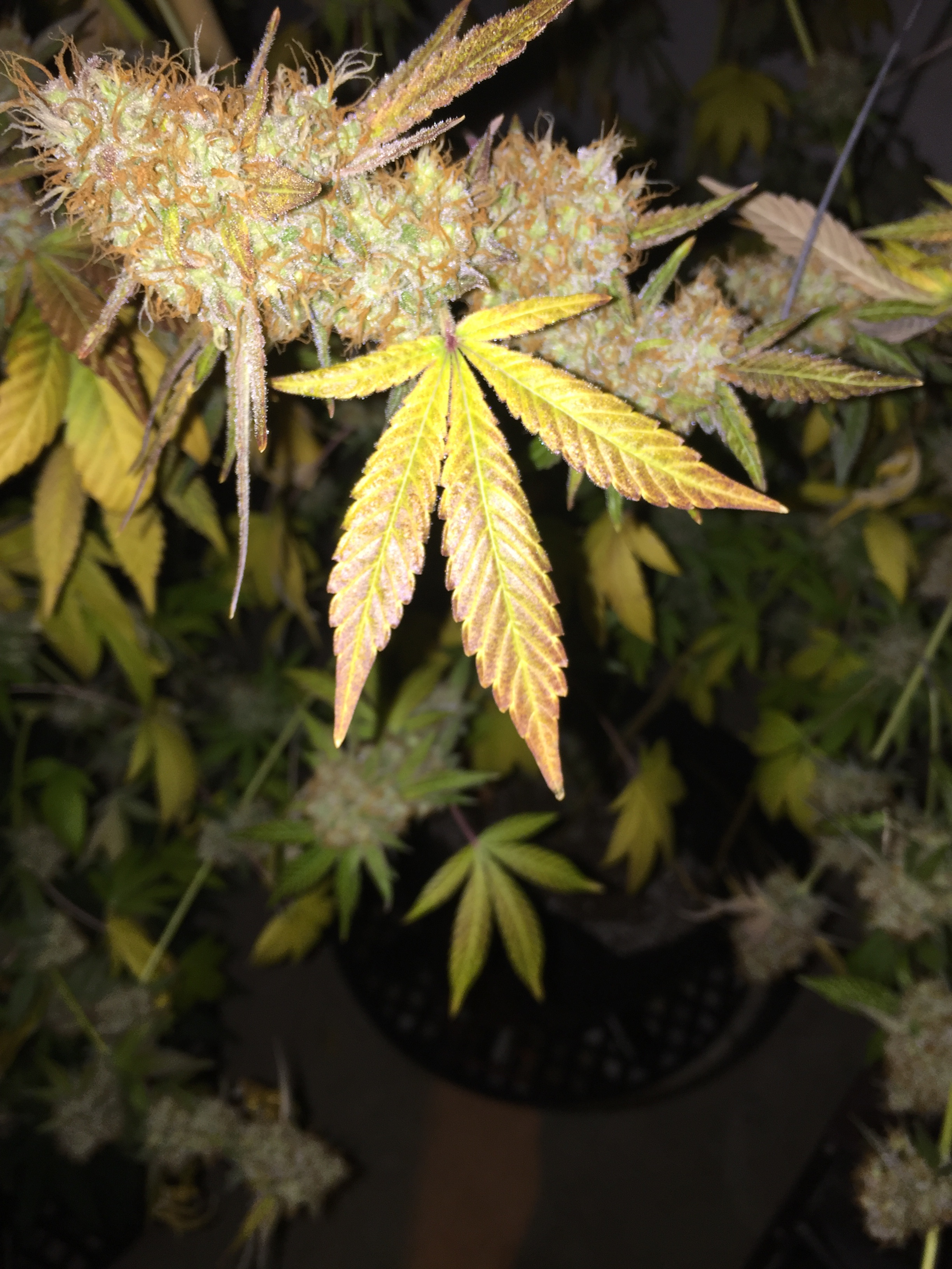 that picture is of the donor plant about 1 1/2 weeks from harvest. the more yellow one is the current run.