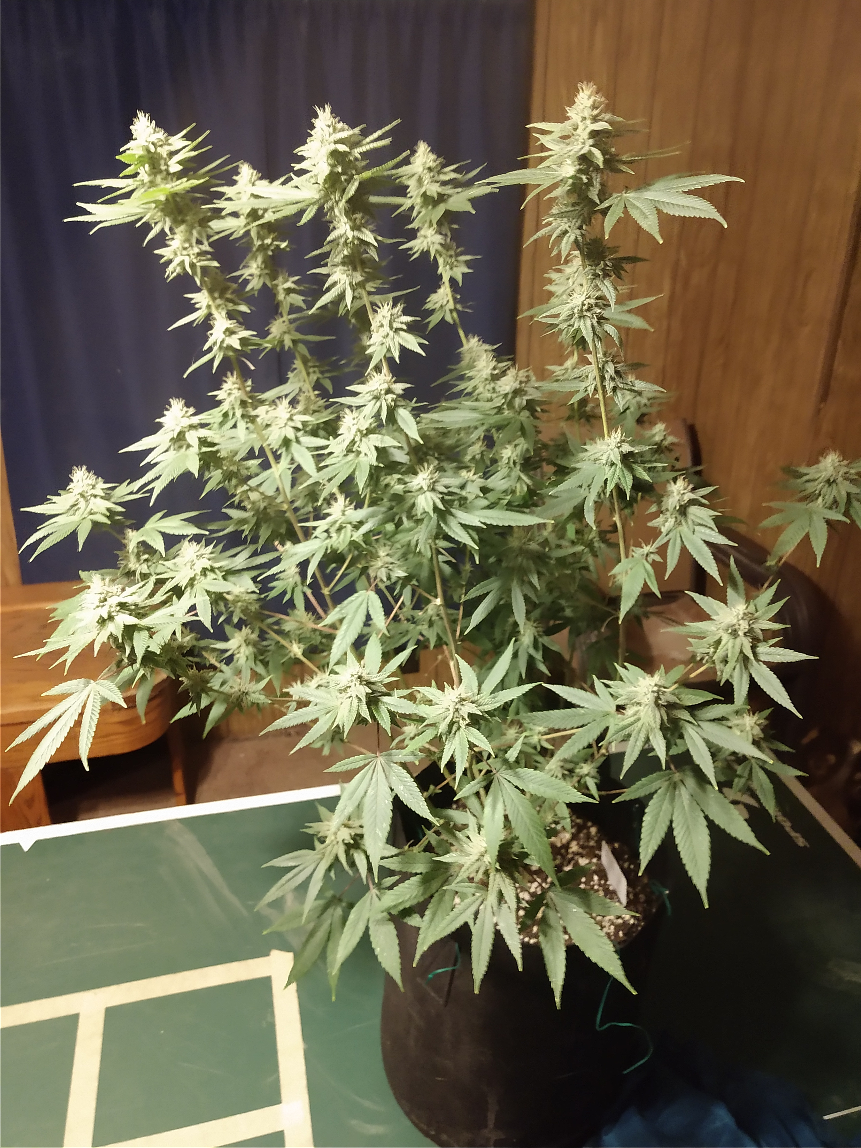 So this one has 8 colas and is just over 2' tall, just into week 6 of flower. Not really sure on a guess cause this is the first good grow I've really had and the buds tend to fool the eye (look heavier than they are) so I usually guess high. I'm going to say I should get over 2 oz on this one. Keep in mind you'll need room for them to fill in so more isn't always better.
