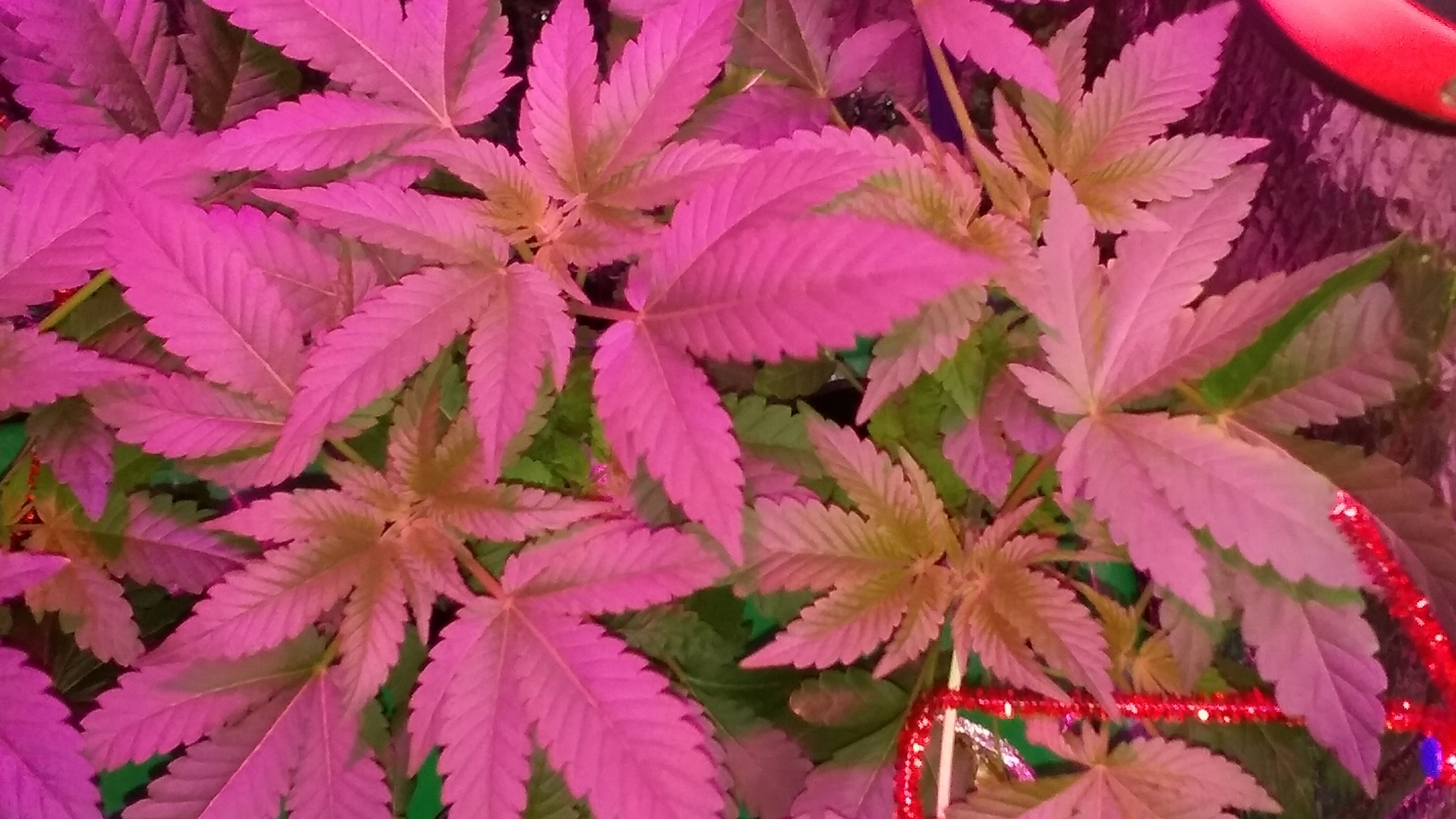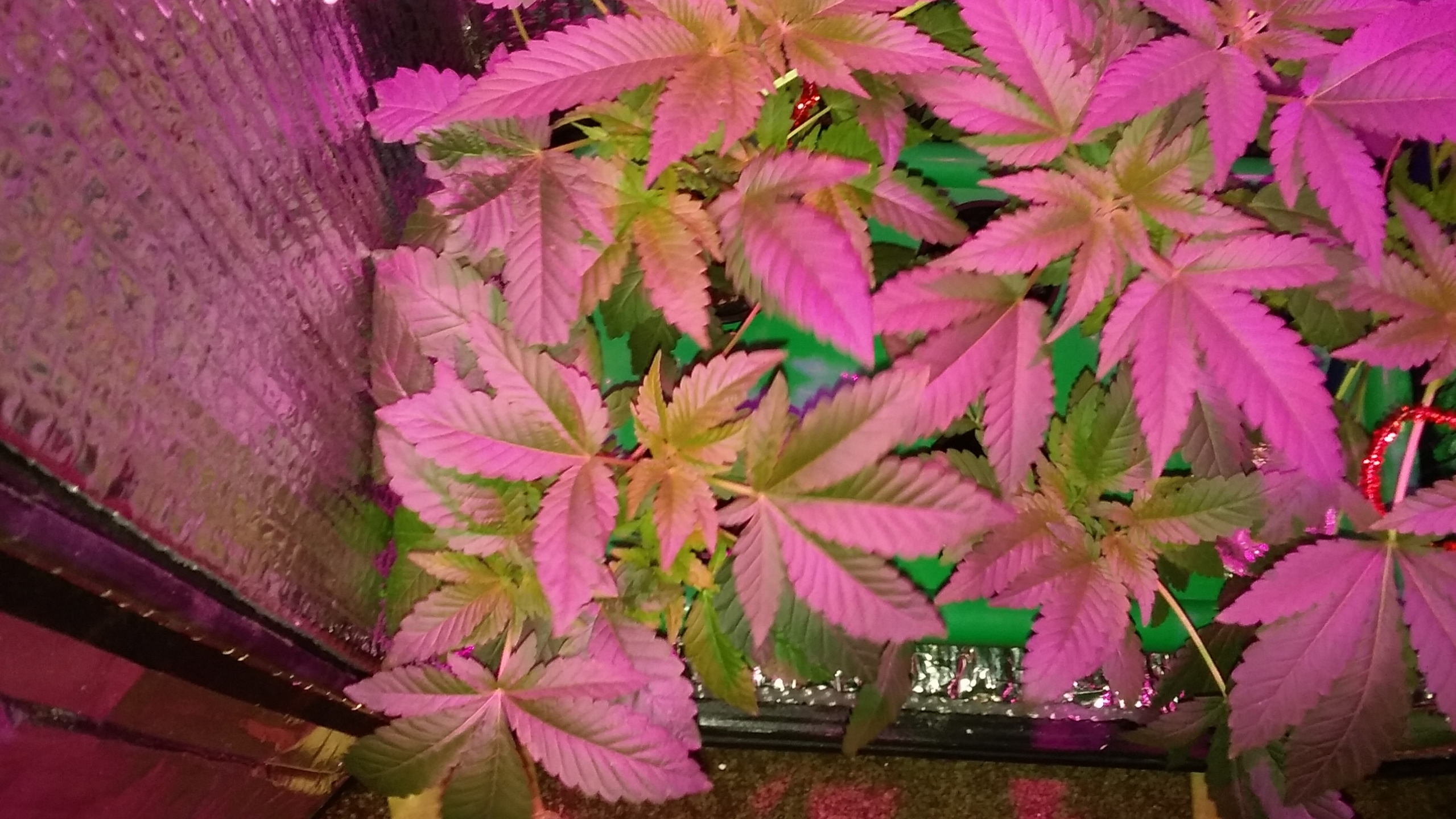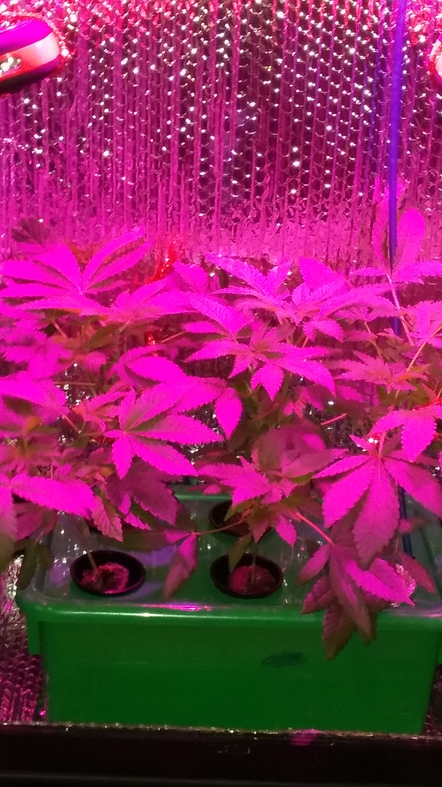 New photo update 13 days into flowering. I used white thumb tacks to mark my plants growth once i flipped them, and they grew past each mark. I have 5 plants in this Cash Crop 5.0, with a Full Spec 20Watt LED grow light that came with the setup (to which I still wonder if its strong enough to produce quality bud). I think I am going to upgrade the lighting on my next grow, by adding 2 strips of 10watt Gled LED grow bar strips. My grow is 4 plants of strawberry sour diesel, and 1 plant of Skunk #1. This coming week my focus will be keeping the plants healthy, looking out for any males, and a final defoliation which should be the ending period of my flowering stretch!