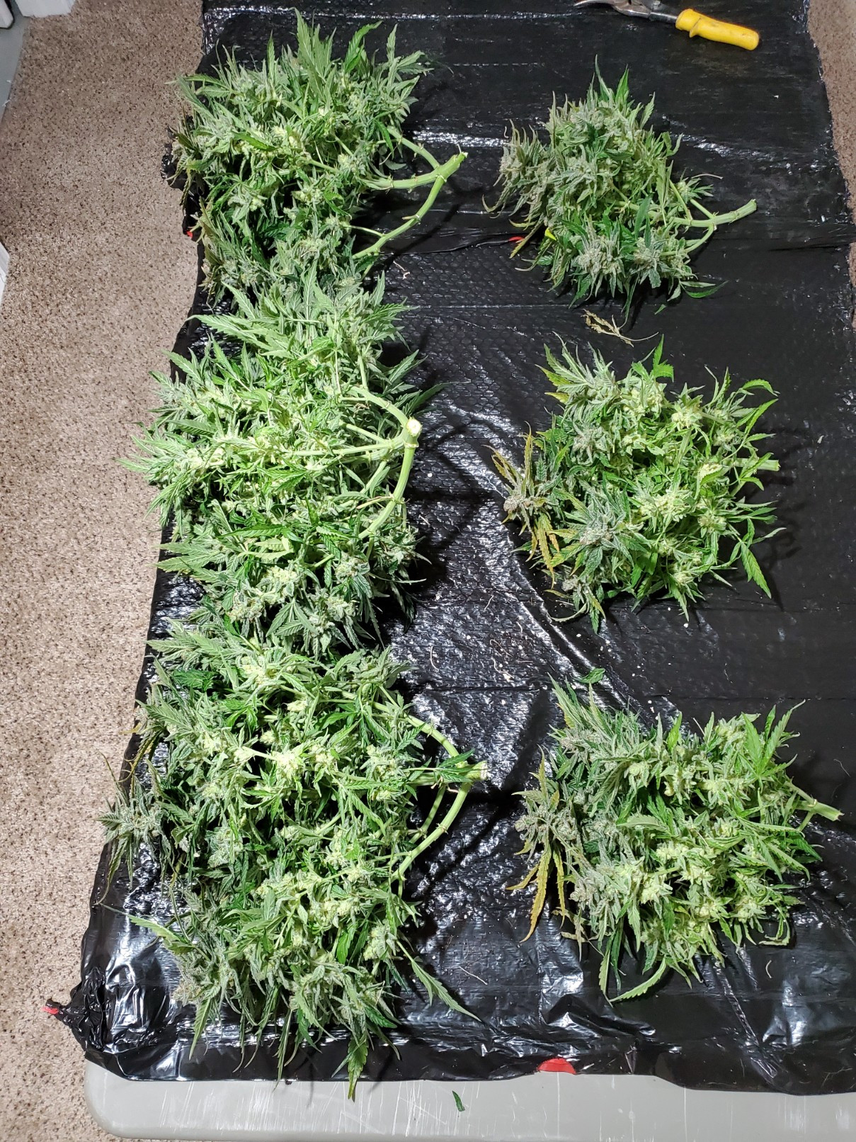 Well, certainly wasn't my best grow, but things didn't go horribly either. I knew the Trainwreck and Red Poison wouldn't yield a ton, and even with the quadline technique I couldn't get much more off of them than in the past. I was far happier with the flavor of both of these plants this time around, so I guess my curing game is getting better lol.
