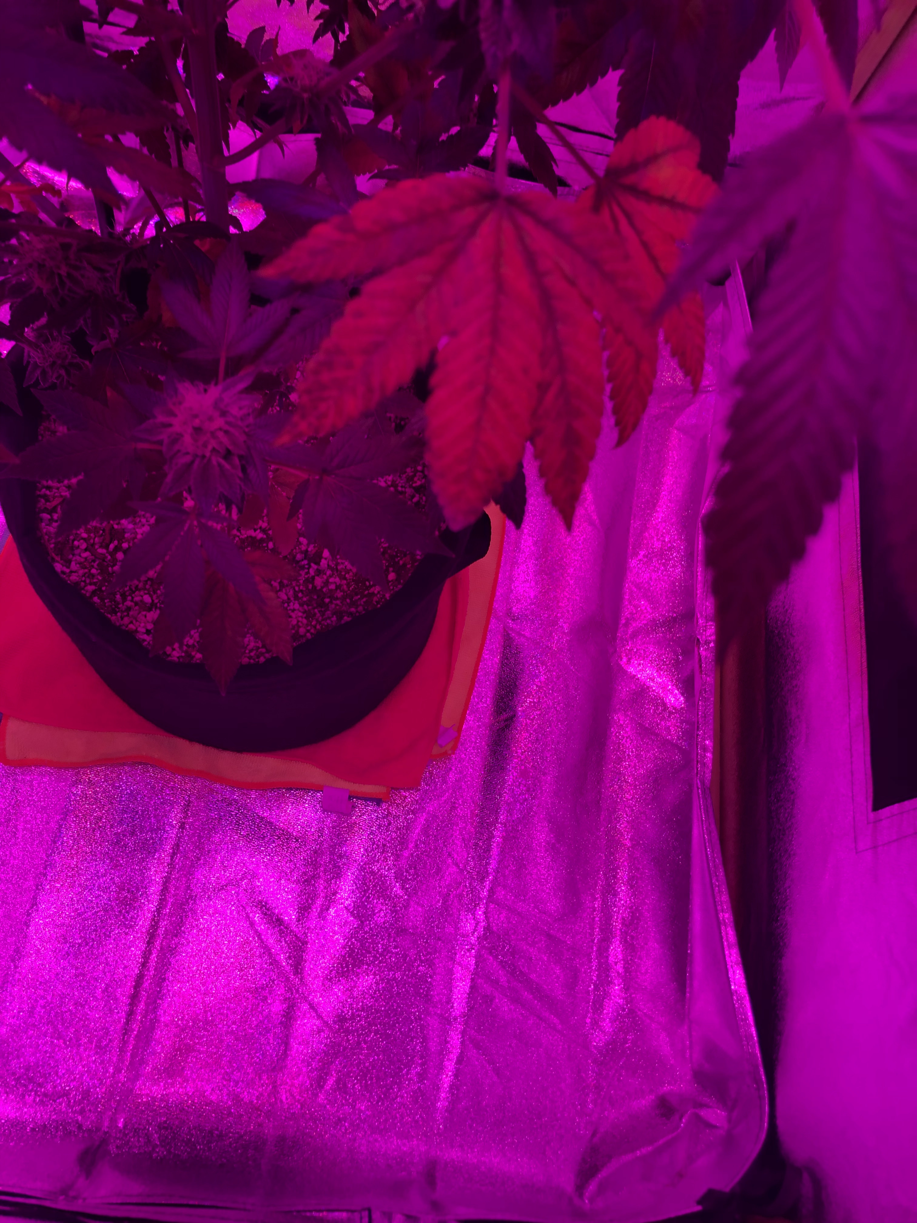 I have developed a problem over the last week. My plants fan leaves are blotchy and not looking great. I am 6 weeks into flower on a tangerine dream from San Rafael. I’m thinking two to 3 weeks left. She is in a 5 gallon fabric pot in a 5 foot x3x3 tent with a 300 watt led full spectrum light.