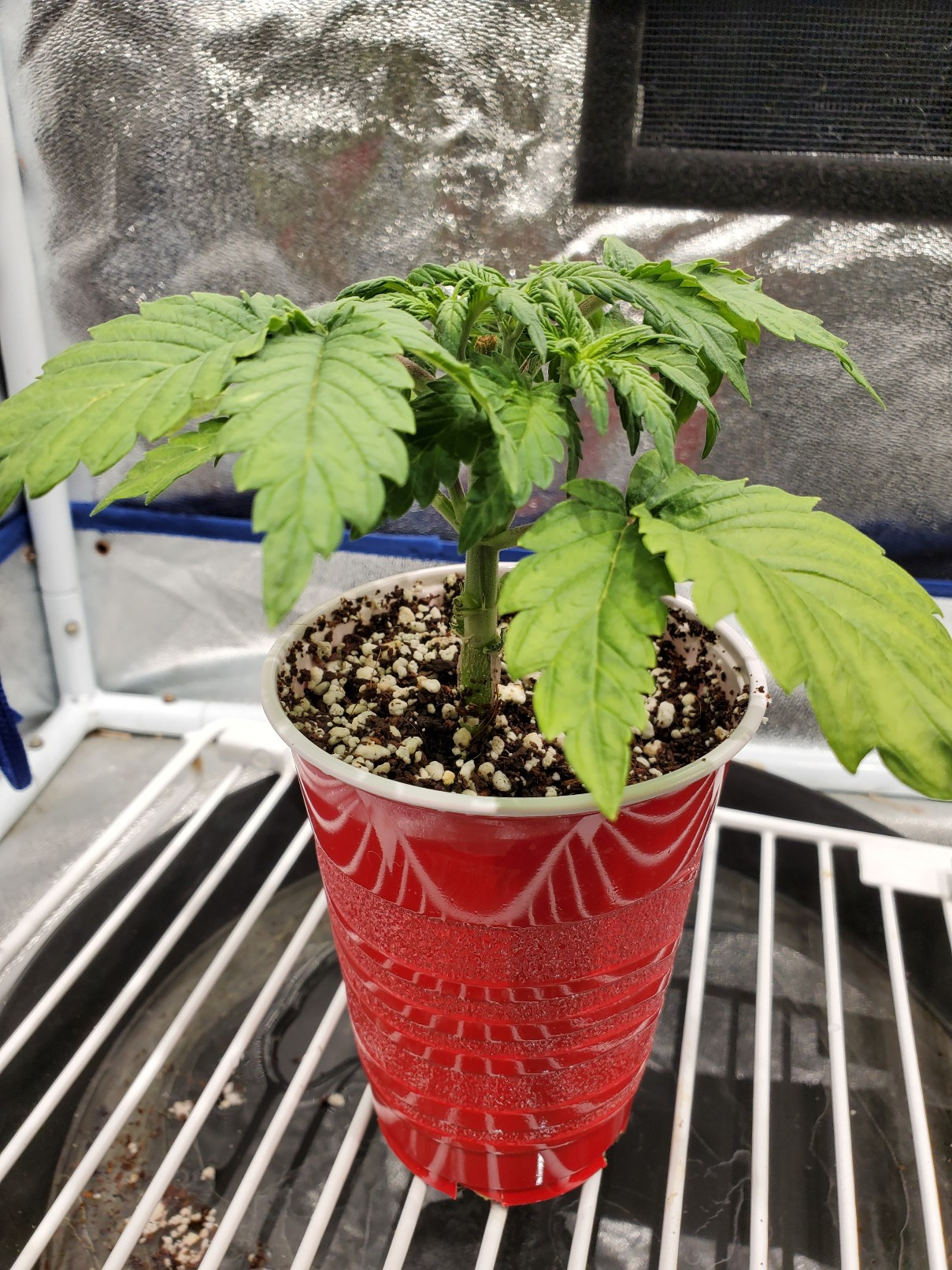 You have built a shrine. All hail the solo cup! Nice looking setup and plant.