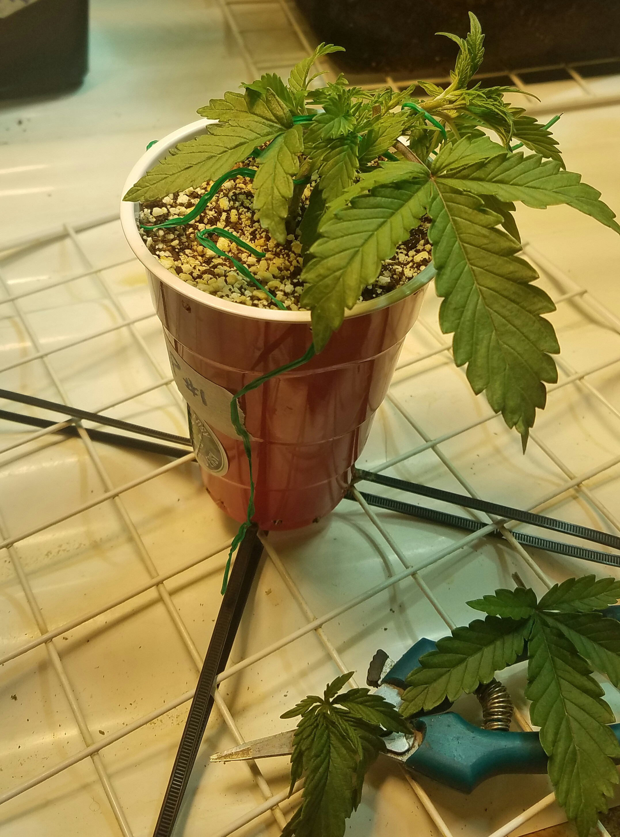 Today is day 26 for the Gorilla Glue. Havent done any training other than topping and clipping the bottom node off. Shes looking good for being in a solo cup lol.