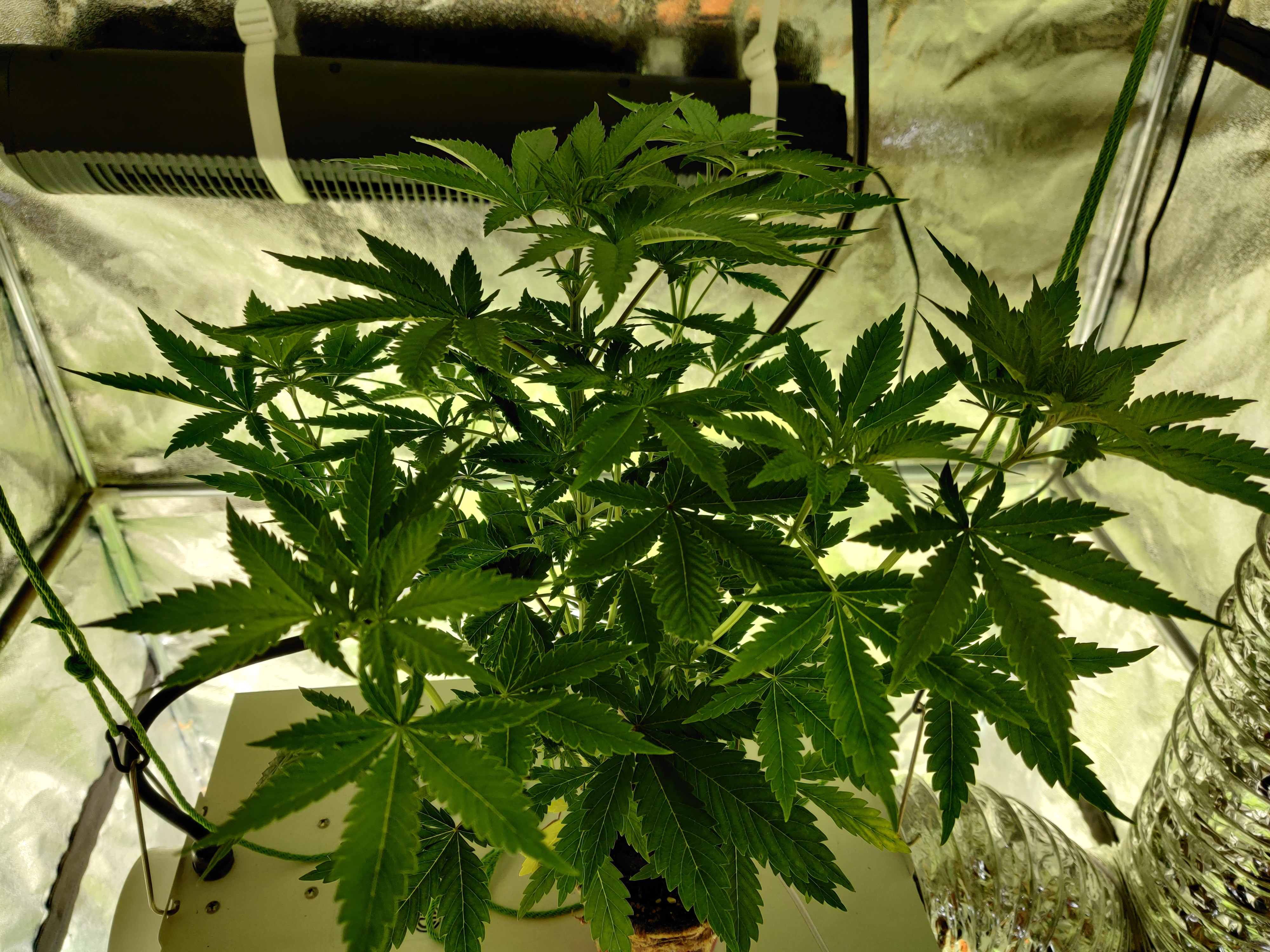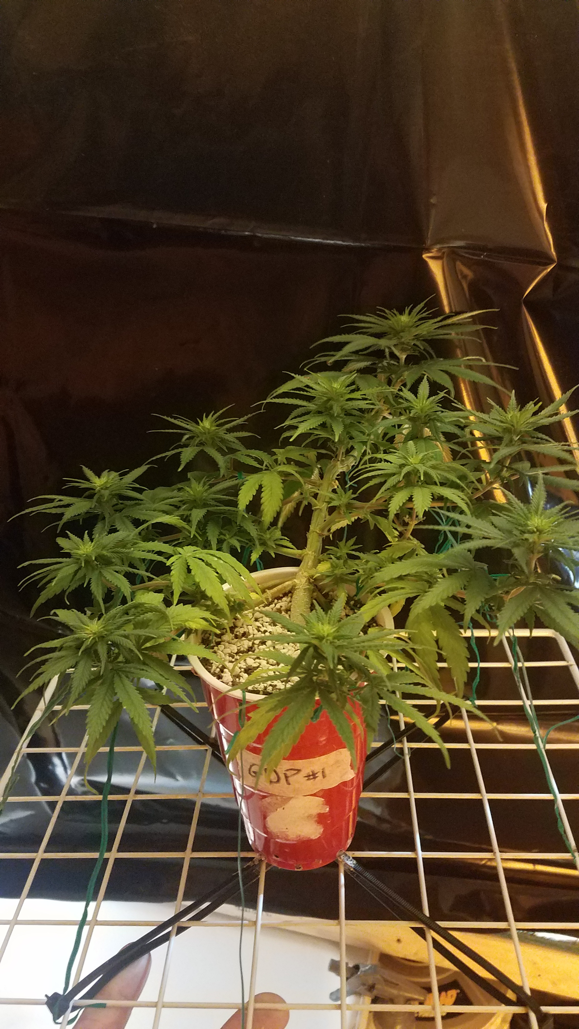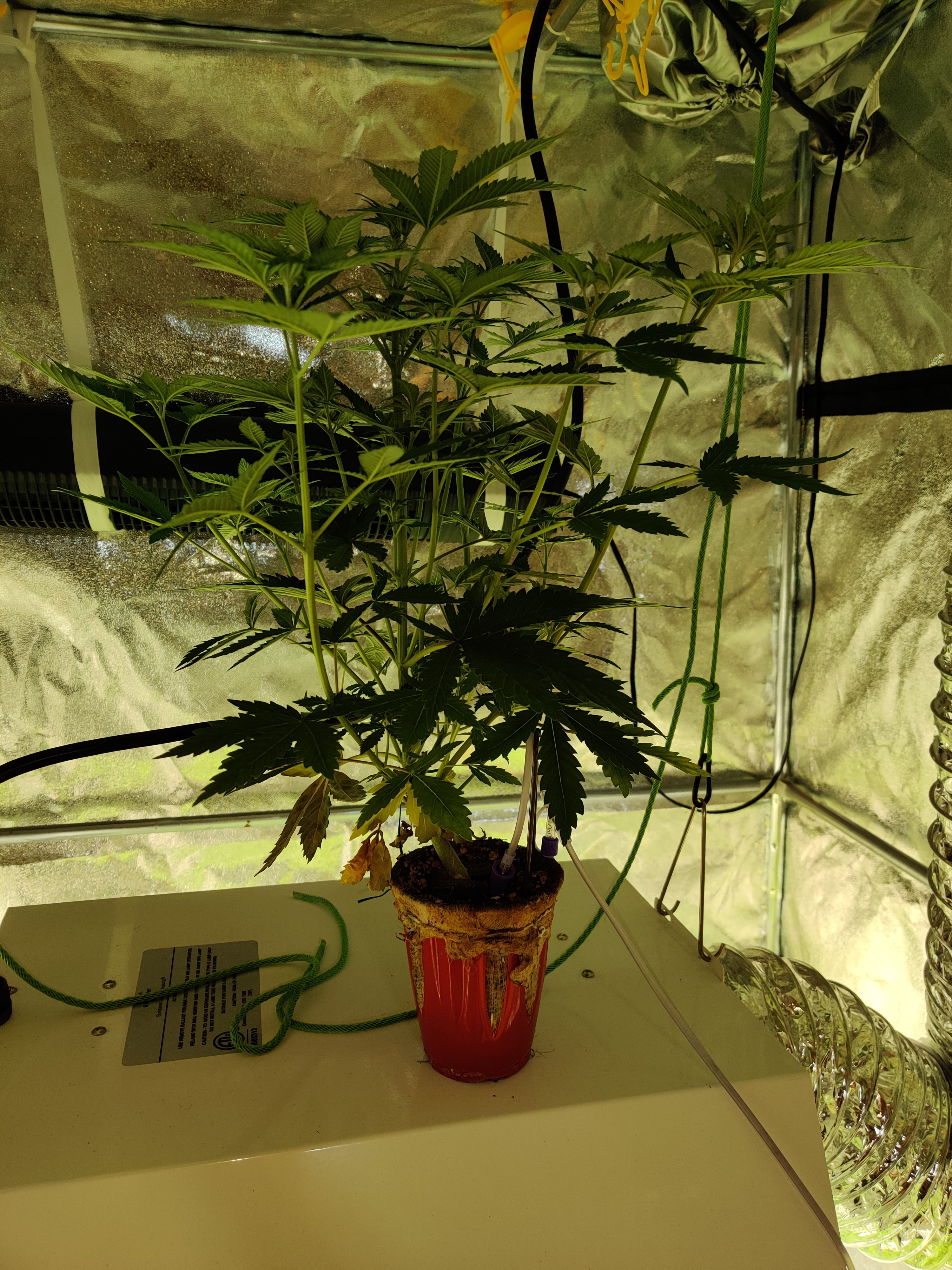 I decided to take one of my entries and put it in a 1g smart pot and have some fun with it. Since this is my second grow I wanted to see how much LST I can do and hopefully make a cool looking Bonsai tree. My main entry is in its first week of flower, and looking real happy (fingers crossed itβs a she). Iβll probably get more bud out of it than I did in my first grow with 3g pots. π