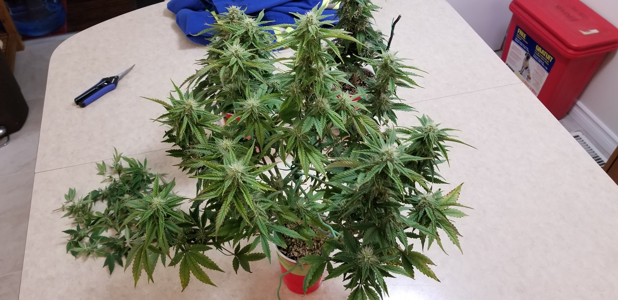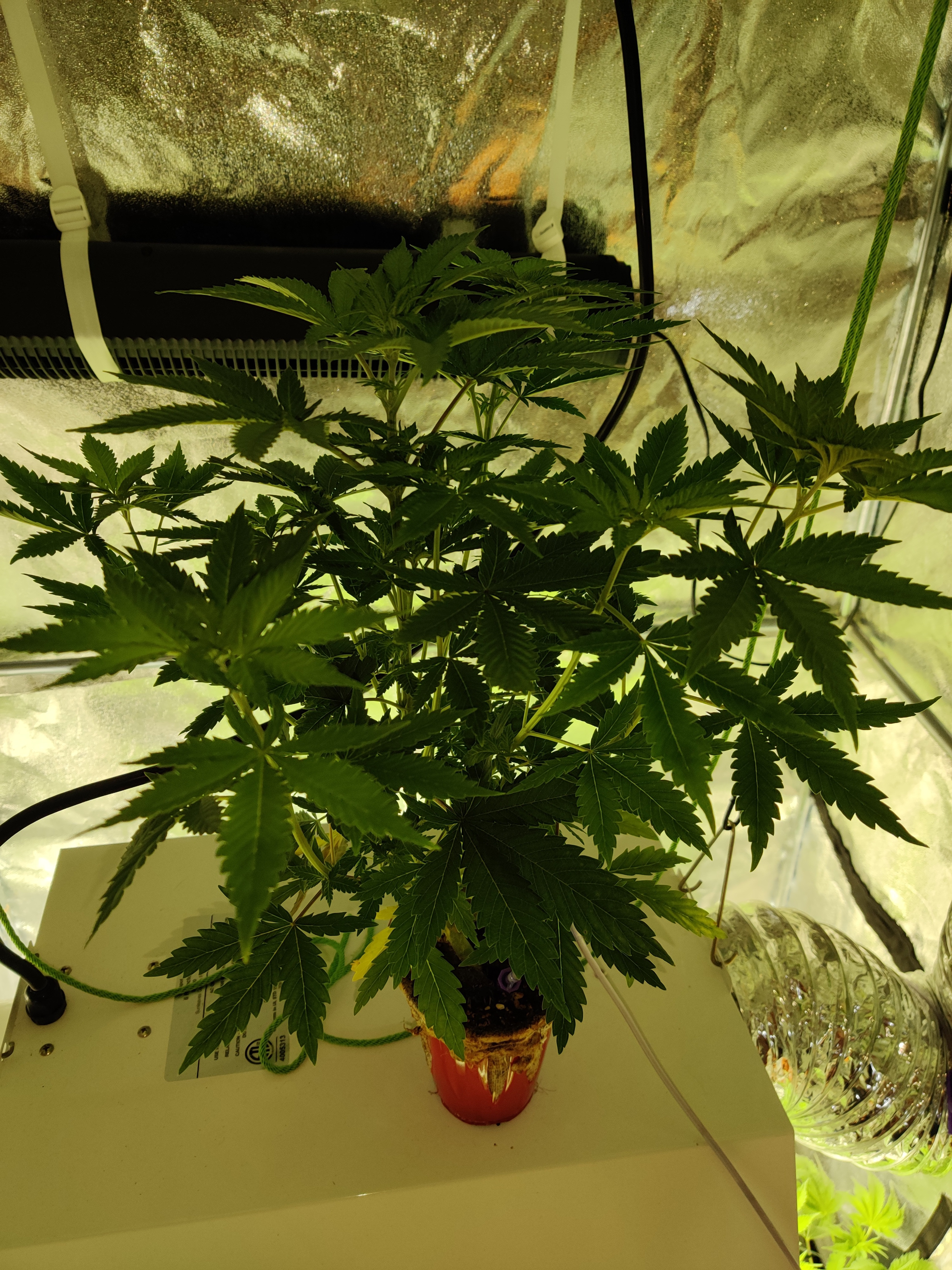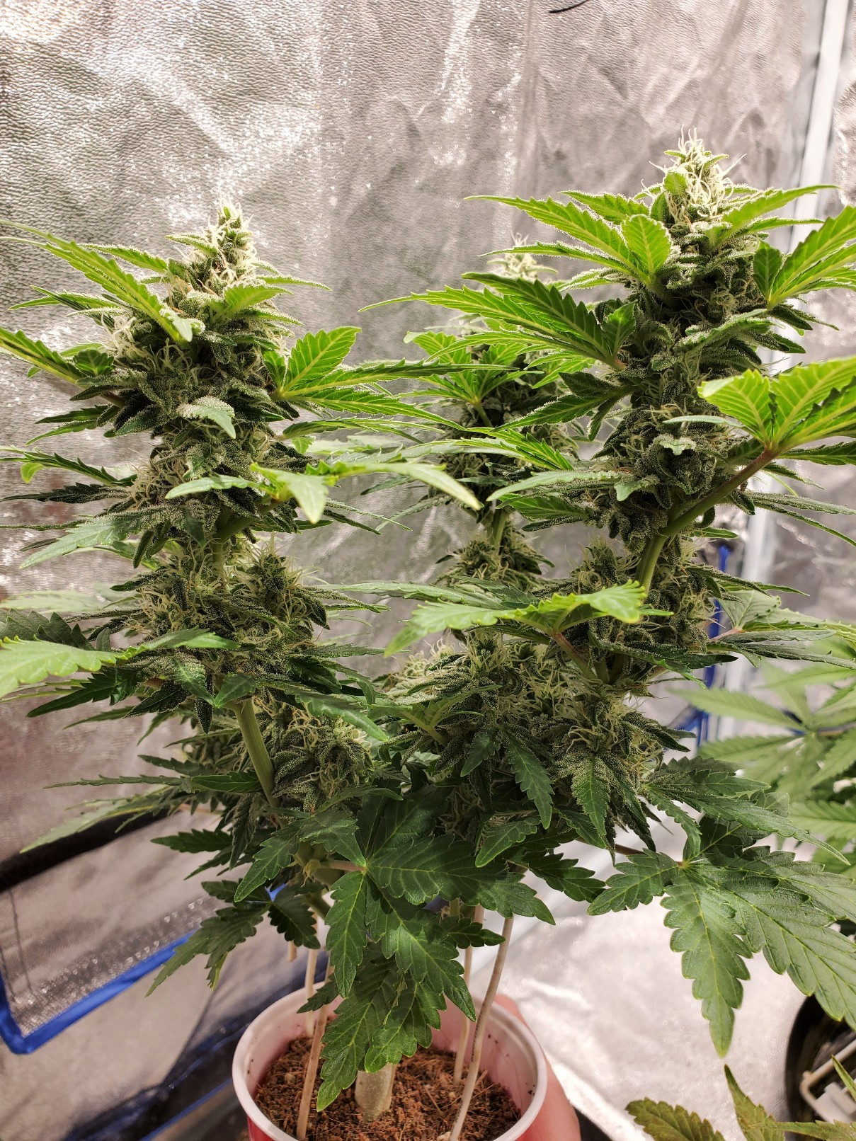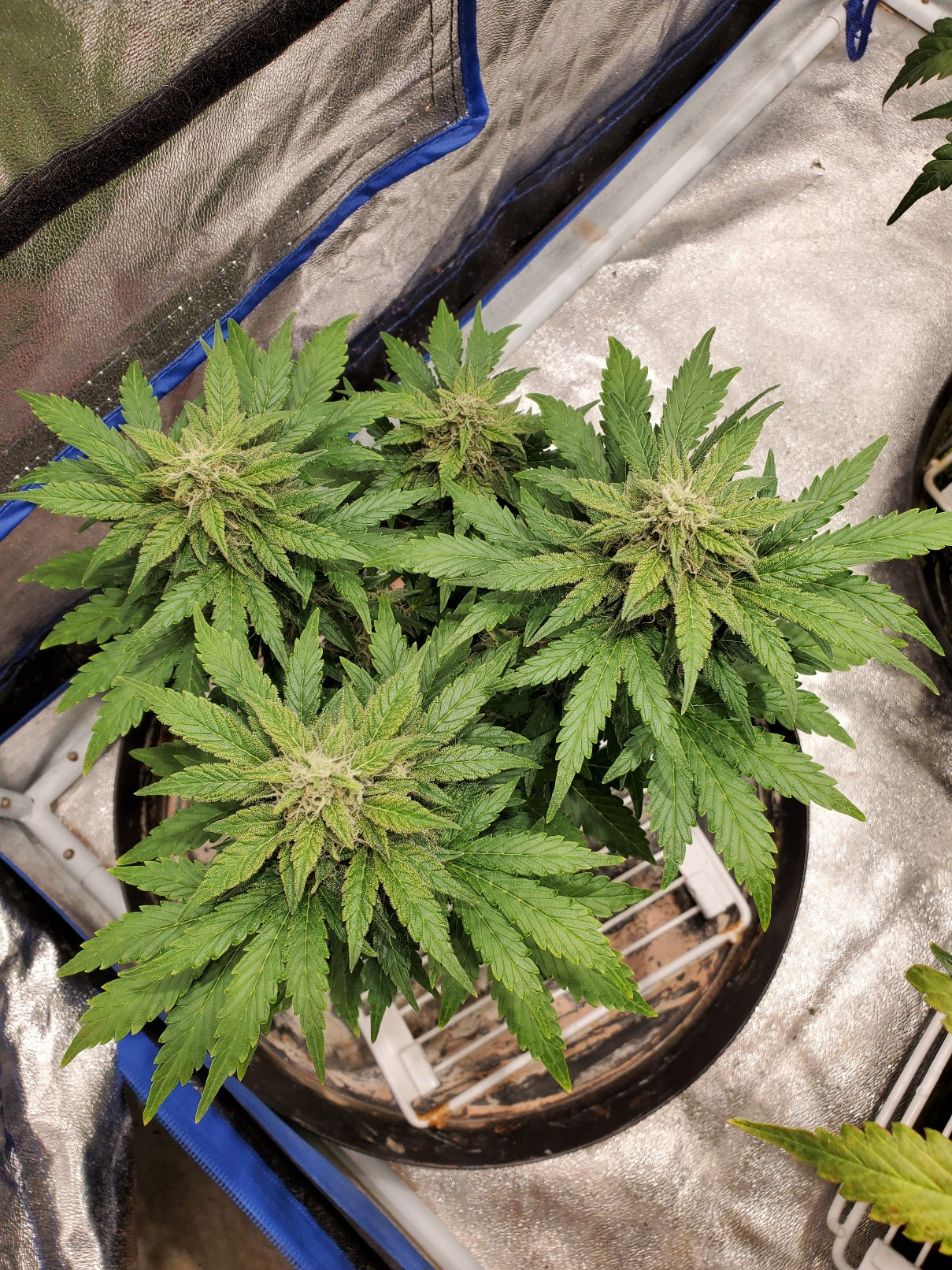 I decided to take one of my entries and put it in a 1g smart pot and have some fun with it. Since this is my second grow I wanted to see how much LST I can do and hopefully make a cool looking Bonsai tree. My main entry is in its first week of flower, and looking real happy (fingers crossed itβs a she). Iβll probably get more bud out of it than I did in my first grow with 3g pots. π