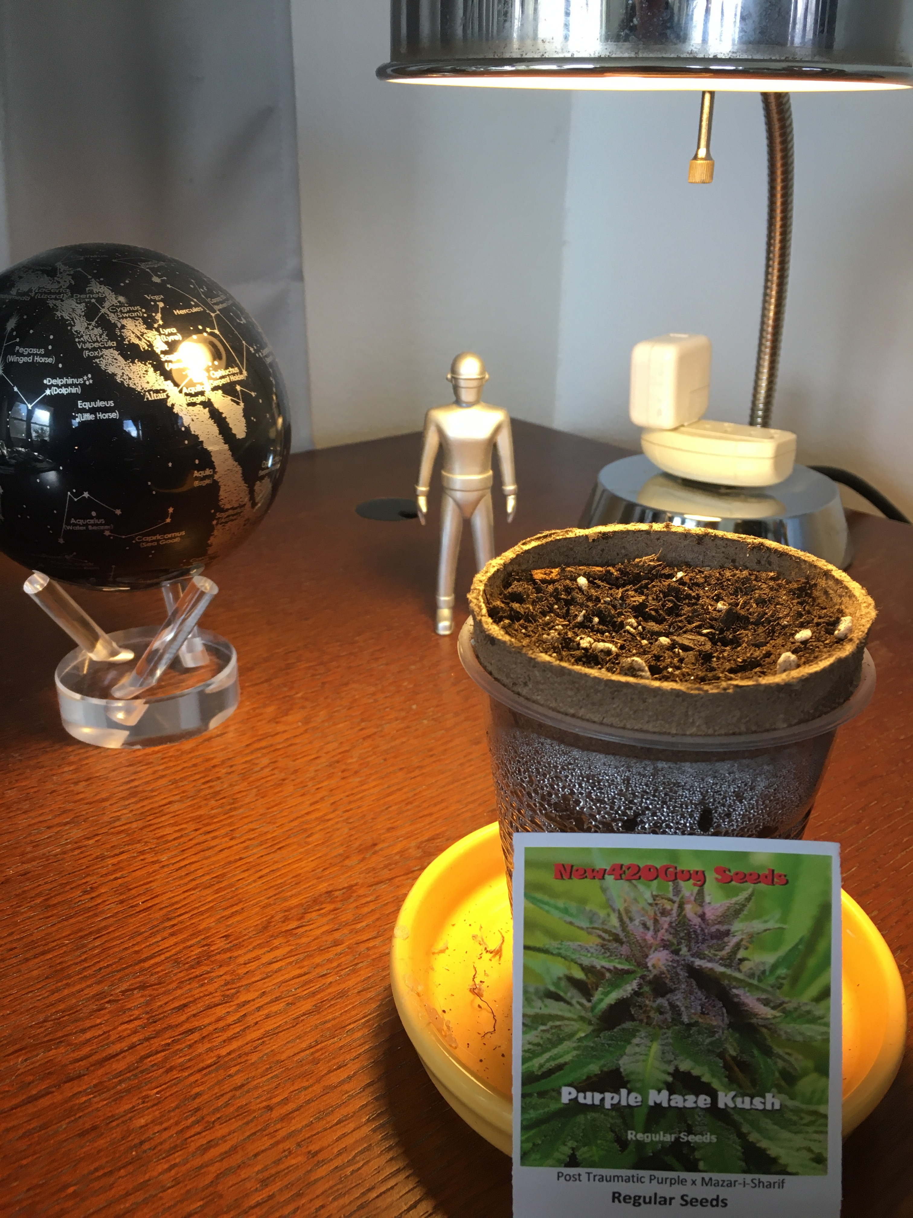 Planted the last of my new420guy seeds a Purple Maze Kush. Have gotten lots of males from new420 including feminized males. Is that such a thing? Last grow 2 vigorous male PMKs of course they are regulars. Didn't want to waste a good seed on this endeavor, but at least know what strain and genetics I have here maybe. I planted in a Rapid Rooter which went into Happy Frog all placed in a peat pot in case something comes up I want to actually grow. The peat cup will make for a quick and easy mission abort! It's all in a Subway water cup roughly 14 oz. I believe. Have a happy, and better than last new year.