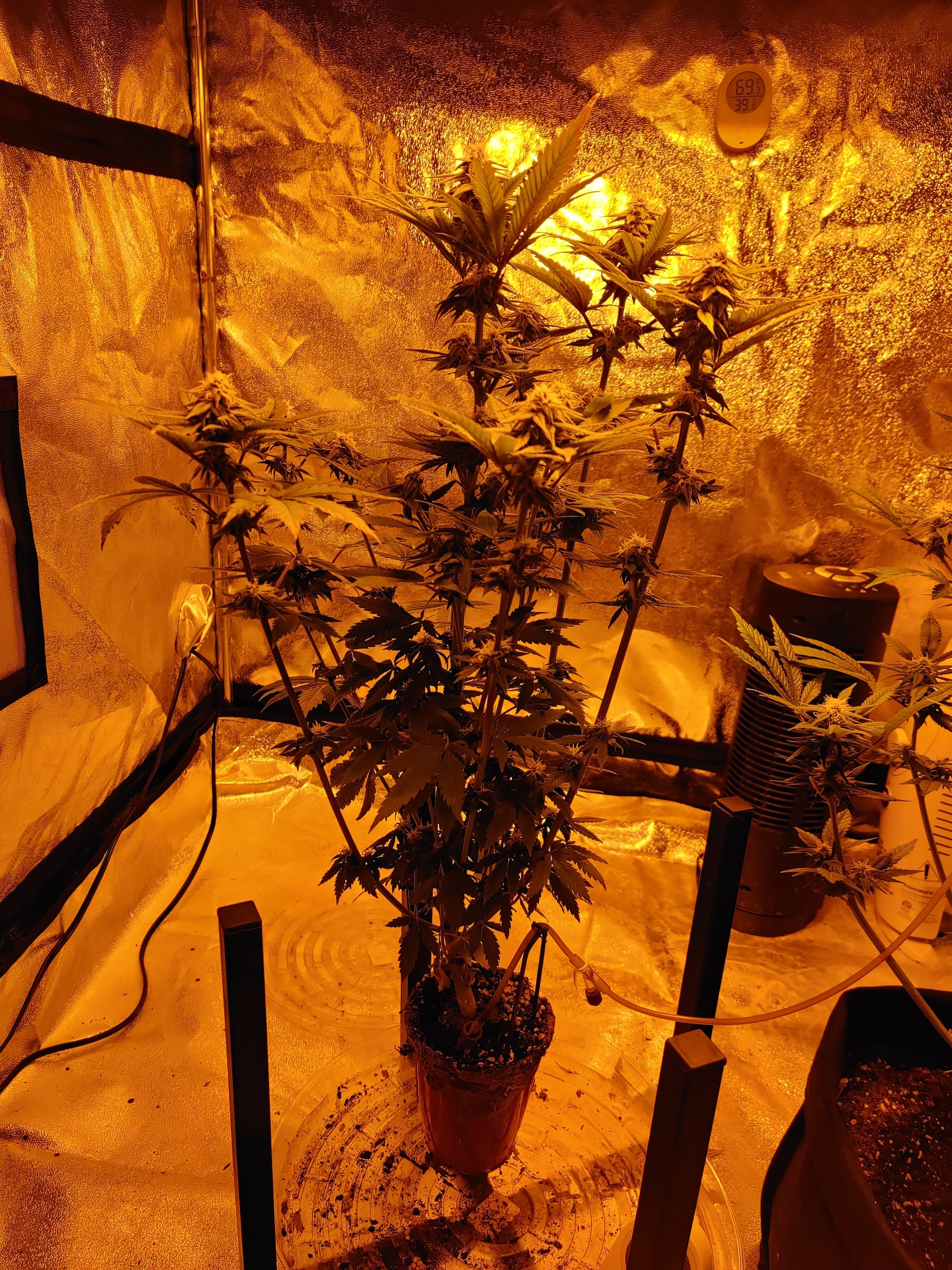 She’s hanging on, but I don’t think it’s going to make it much longer. I’ve had a little fan blowing at the roots to keep the oxygen going and avoid more root rot. The buds seem to have fattened up a little more, but she’s giving plenty of symptoms that she’s not happy. Almost as if she’s in the last week of flower...but I still have about 2.5 weeks to go.