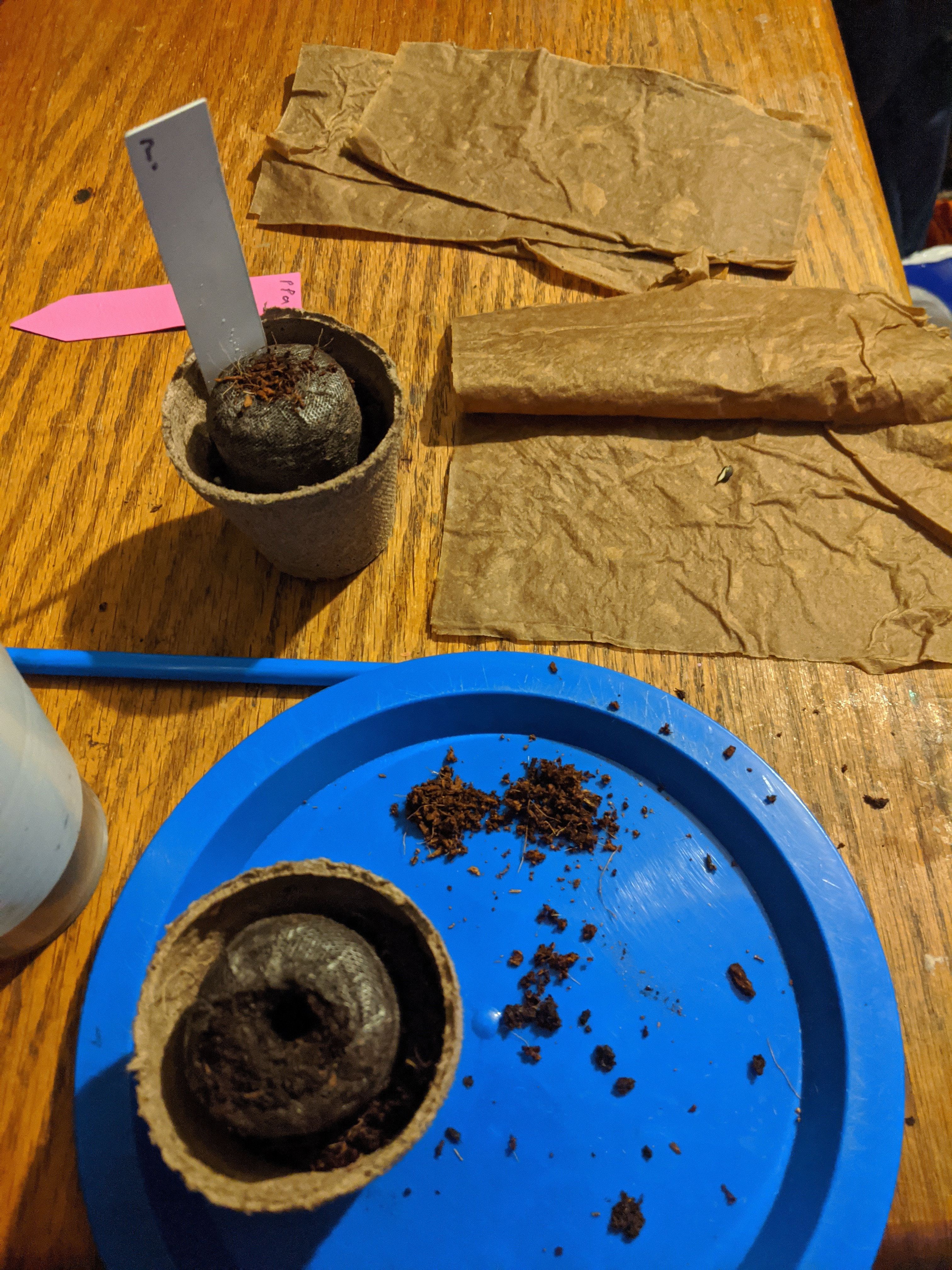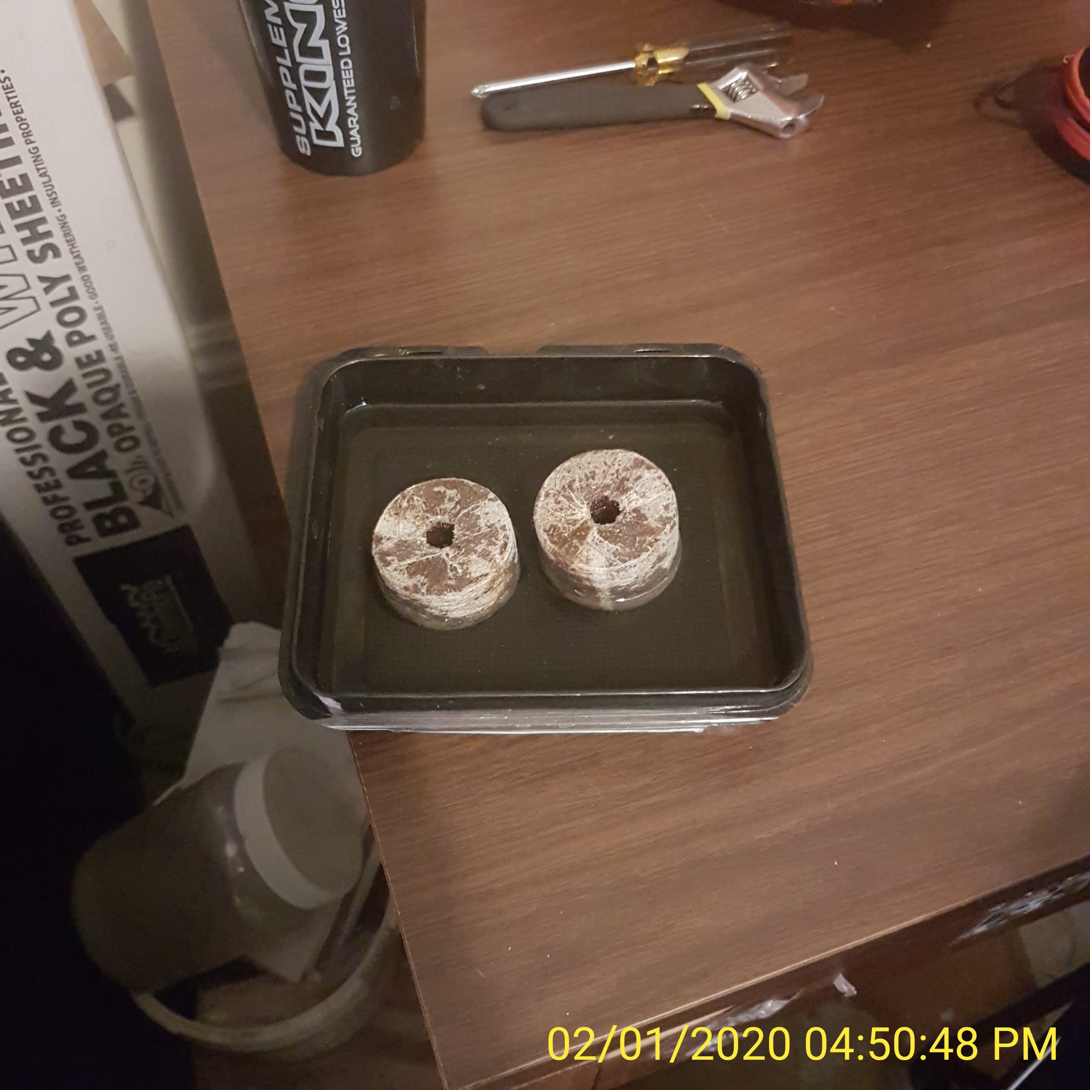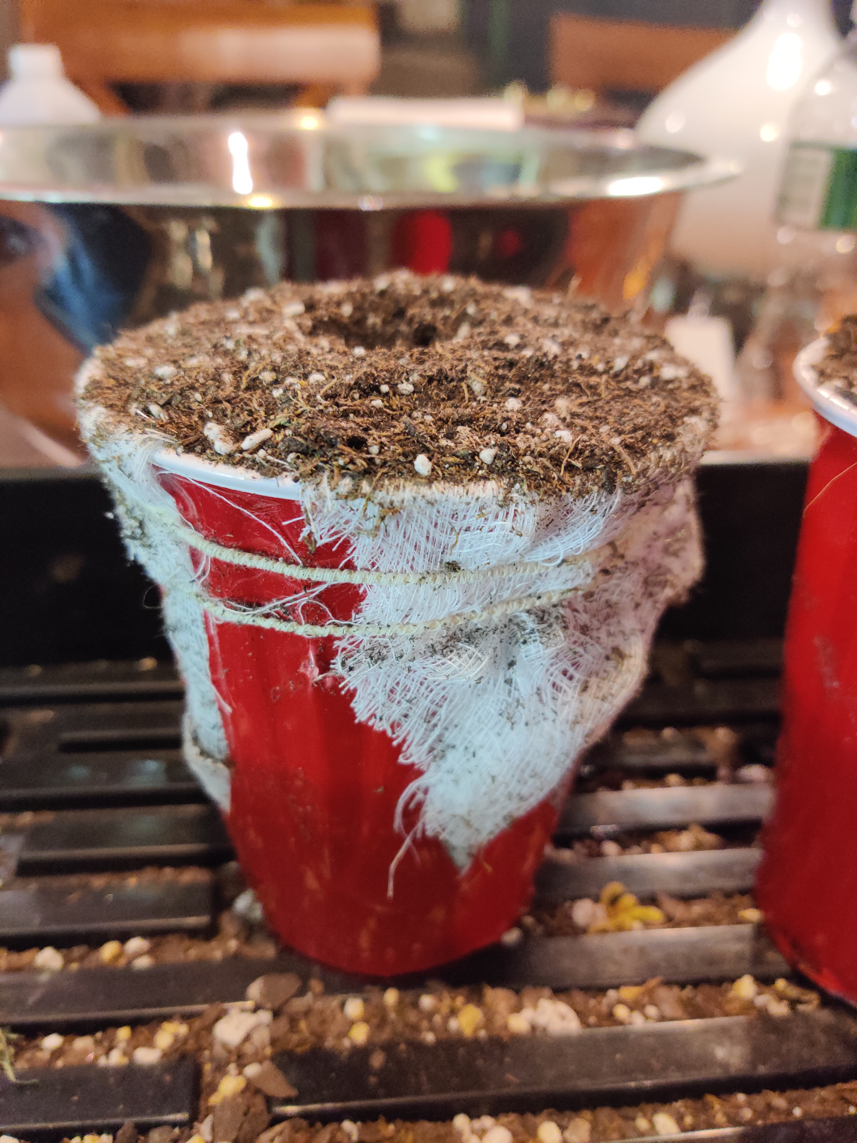 trying these new (to me) coco pellets. Soaking in treated/pH'd water. The hole is really large