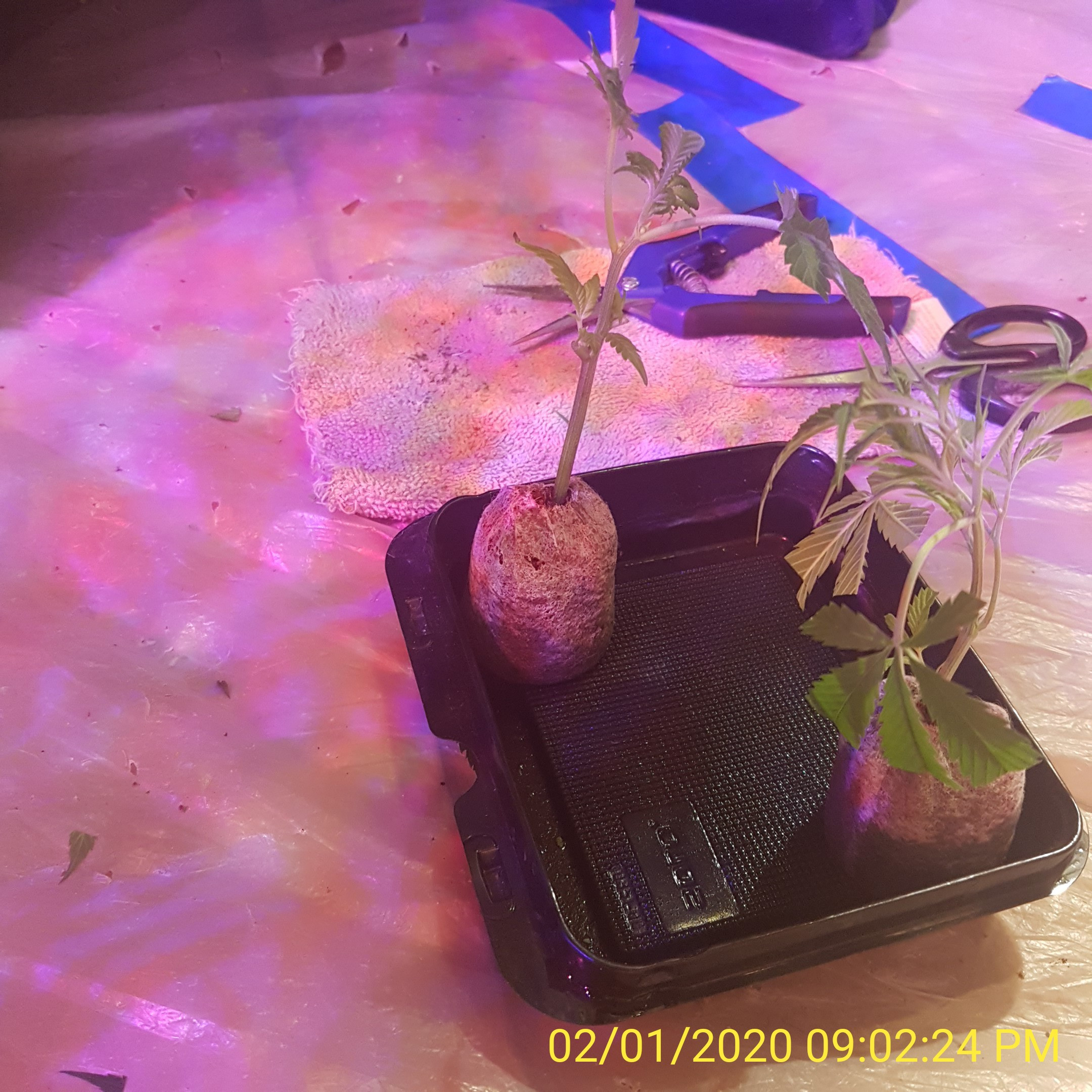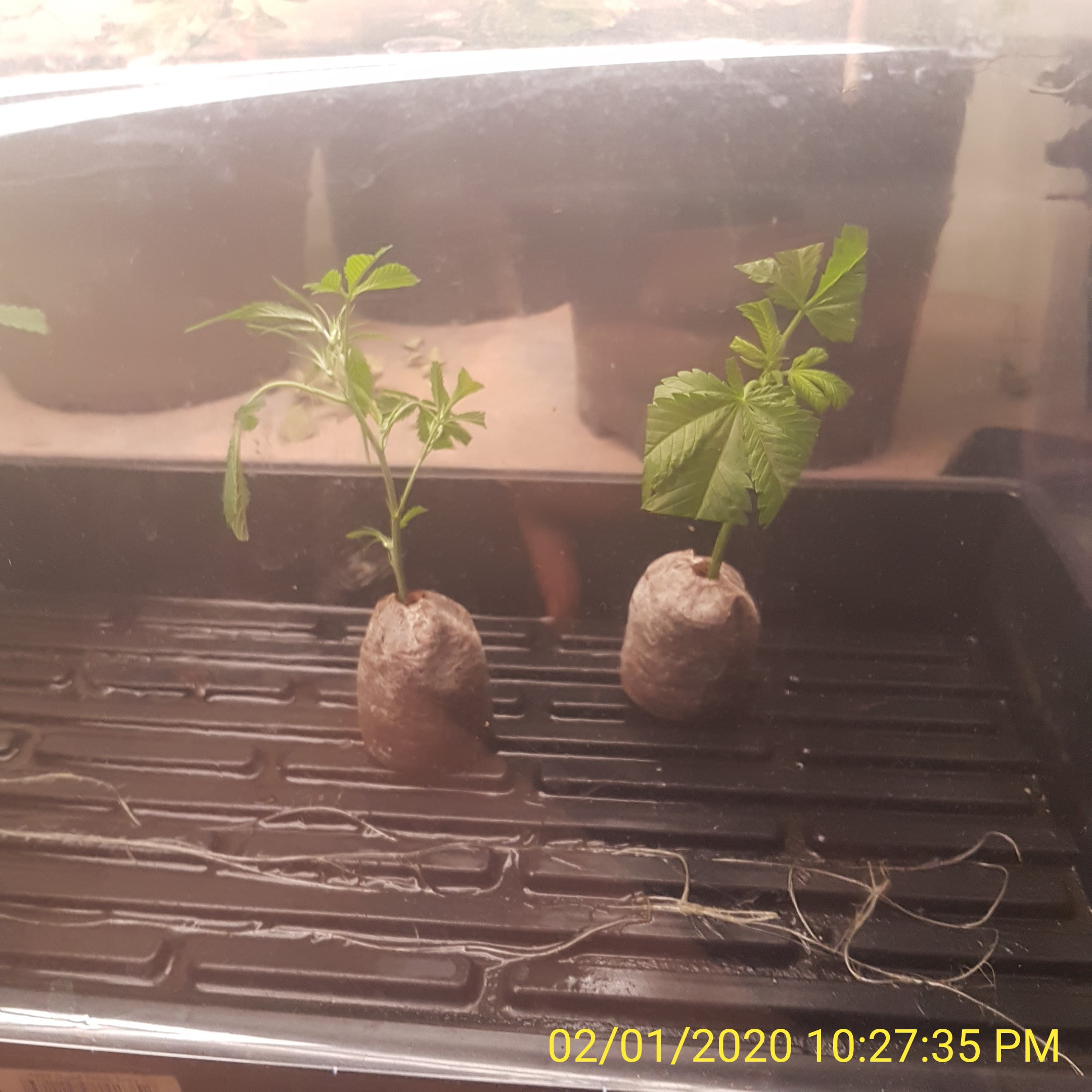2 different cuts Trainwreck (left) and Cream and Cheese CBD (right). Dipped in some mycorhizae powder, and into the plug. Had to massage the plug to get the coco on the stem - they may get a wrapping