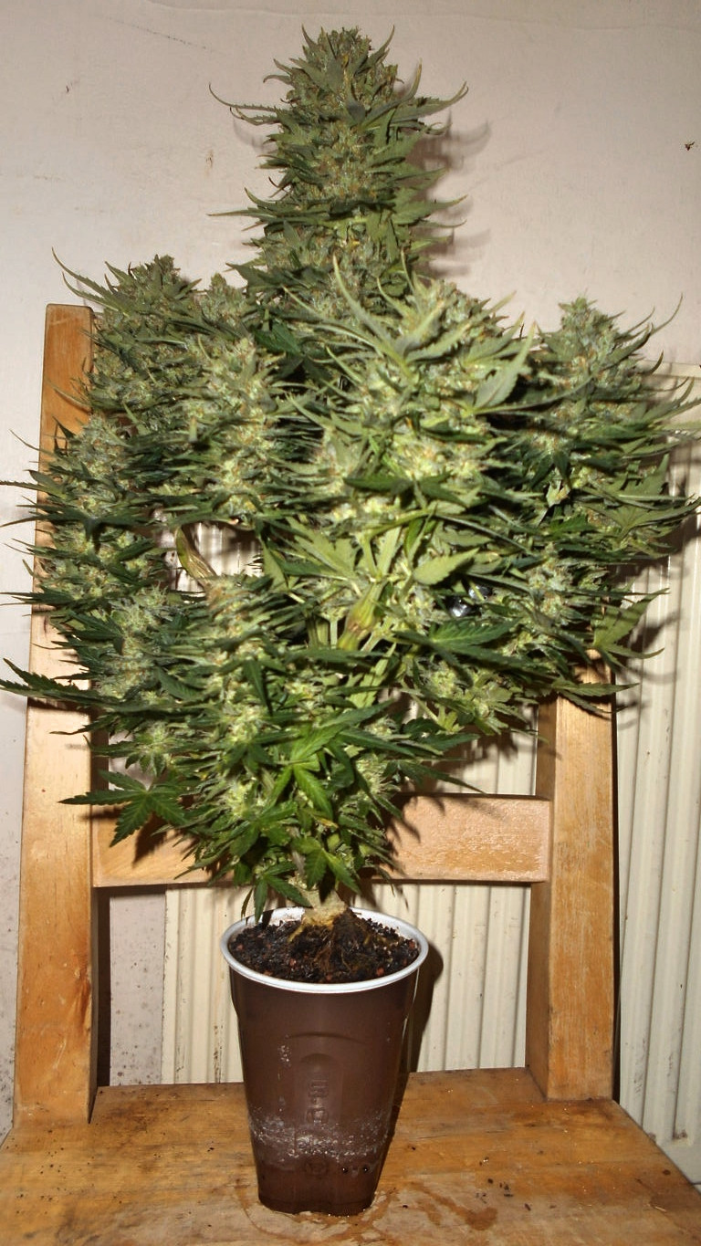 Growing with the cup being 3/4 perlite and a layer of soil/perlite mix (about the depth of a peat plug) and the improvised drip feeder with the IV made the set up work for me. It let me water once a day by filling the bag and letting the plant have good drainage. Also I cut holes in the side of the cup and lined it with some cheese cloth in a nod to the fabric pots that I have had a bunch of successful grows with. I fim'd the top about a week before 12/12 bu mostly just let it grow with very minor defoliation. She was thin and branchy the whole time.