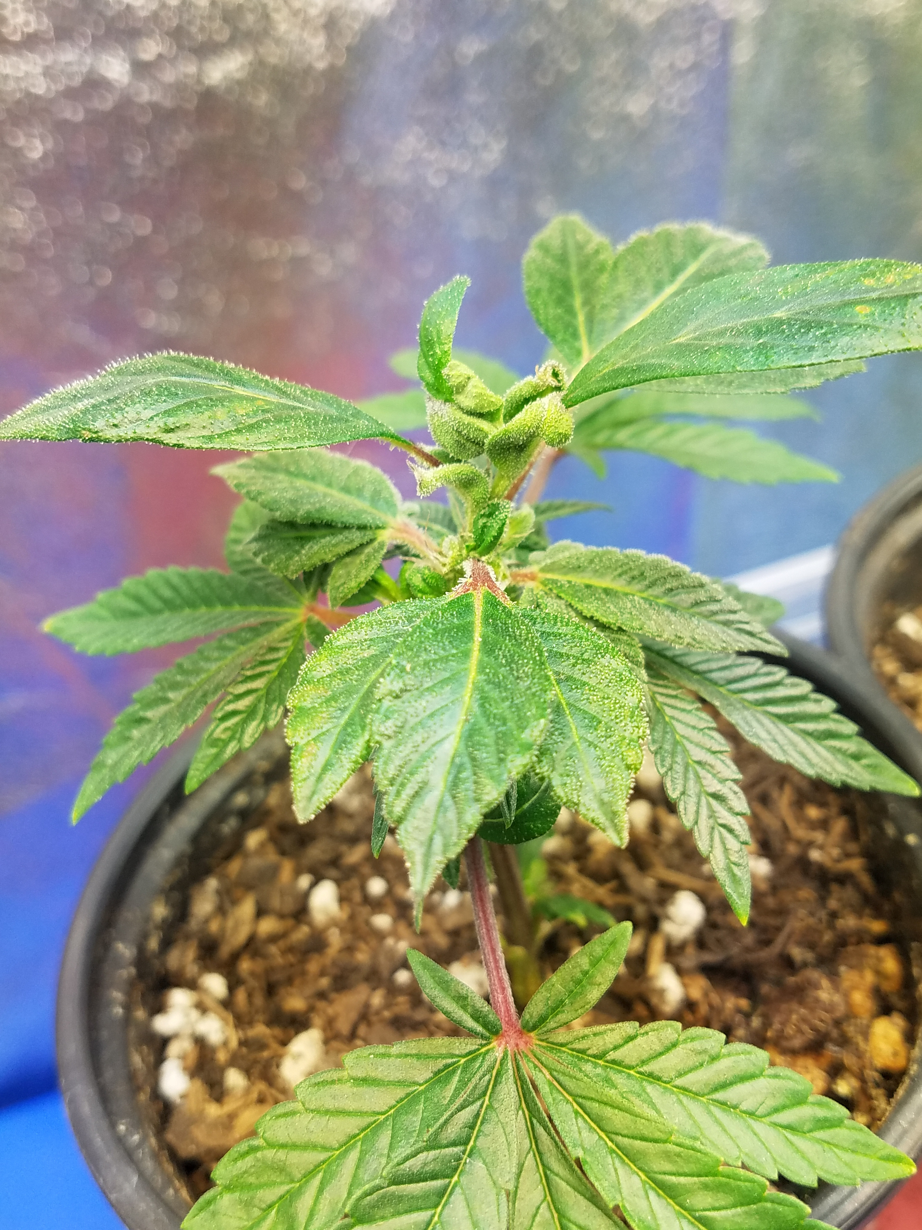 She can't decide if she wants to flower or re veg & I think it's one of the coolest sights I've seen & an excellent example of everything we're told about re vegging.