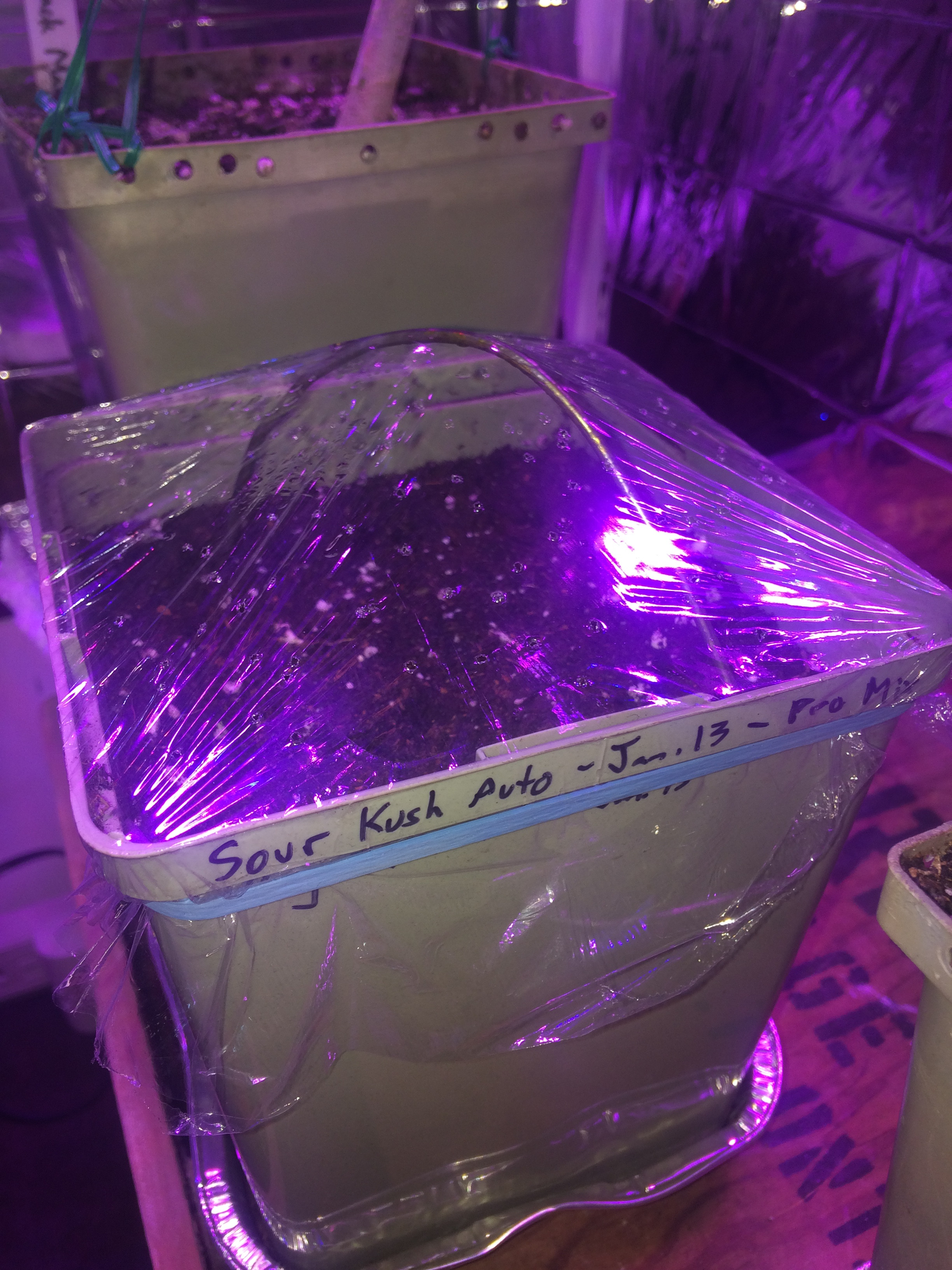 Coco hasn't showed up for the 3 "proper" plants I'm doing next round, so I figured I'd do an experiment and use the rest of the pro-mix I still have, and use the same size half gallon pots. Only changes from the last run will be these organic nutrients, and my own knowledge and plant training. Will be interesting to see.