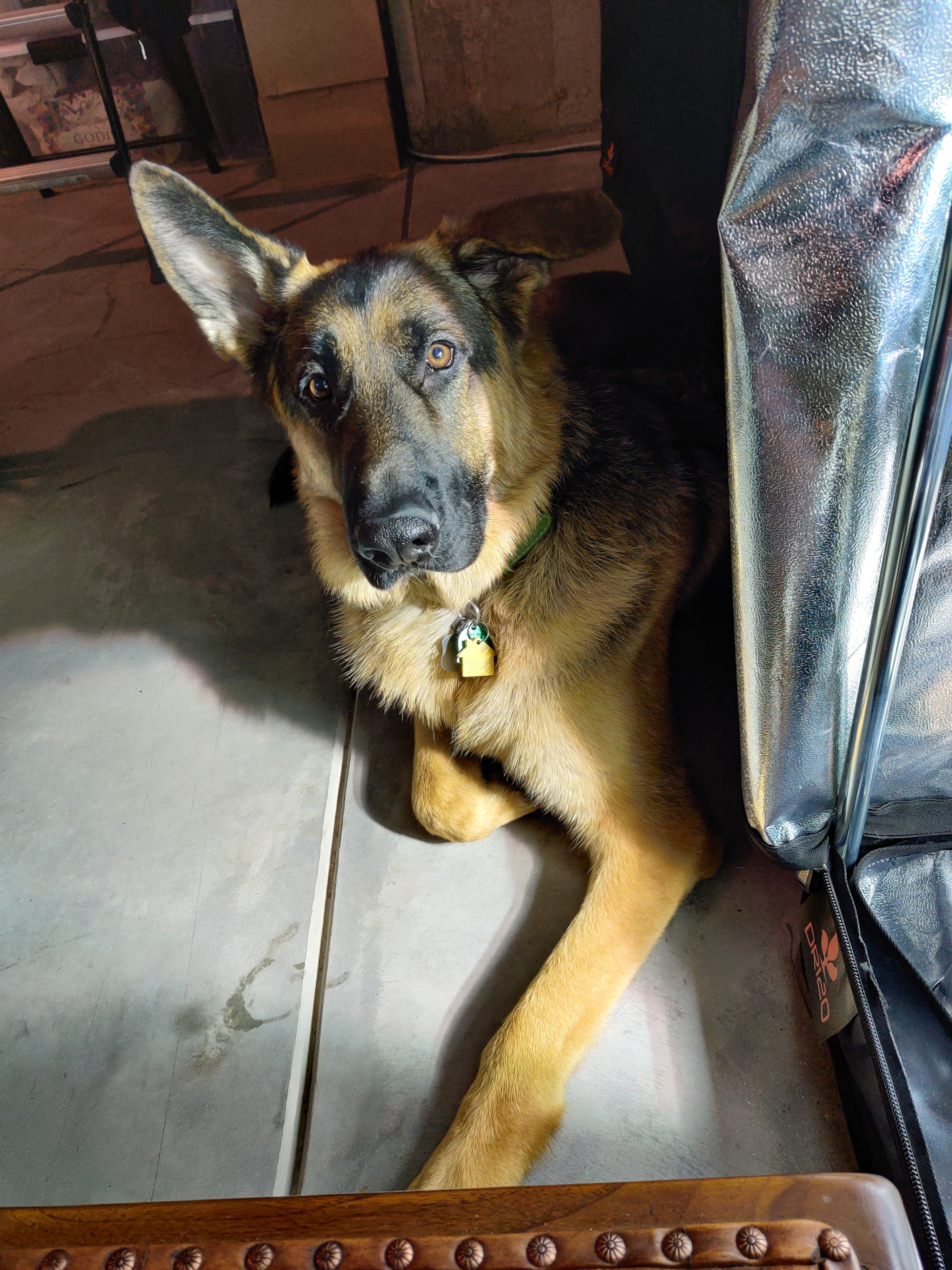 Our German Shepherd, Cork, like to know what is going on too :-)