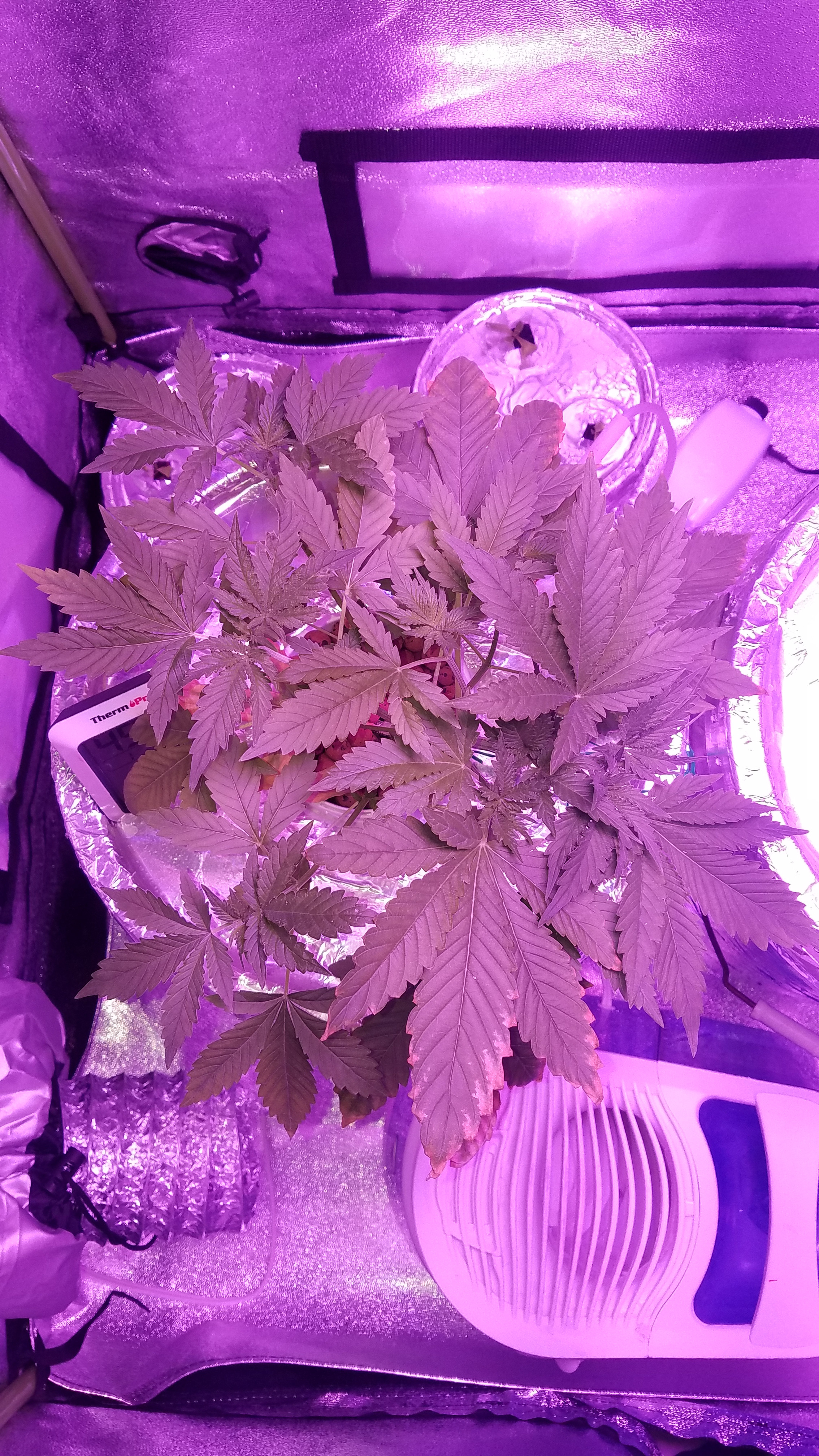 In regards to its health, I have tried adjusting the pH and flushing but it's refusing to come around. It is currently under a 300w LED light, in average 79° temperature with humidity staying right around 60. I'm using very hard well water and nutrients from General Hydroponics at about half the suggested rate.