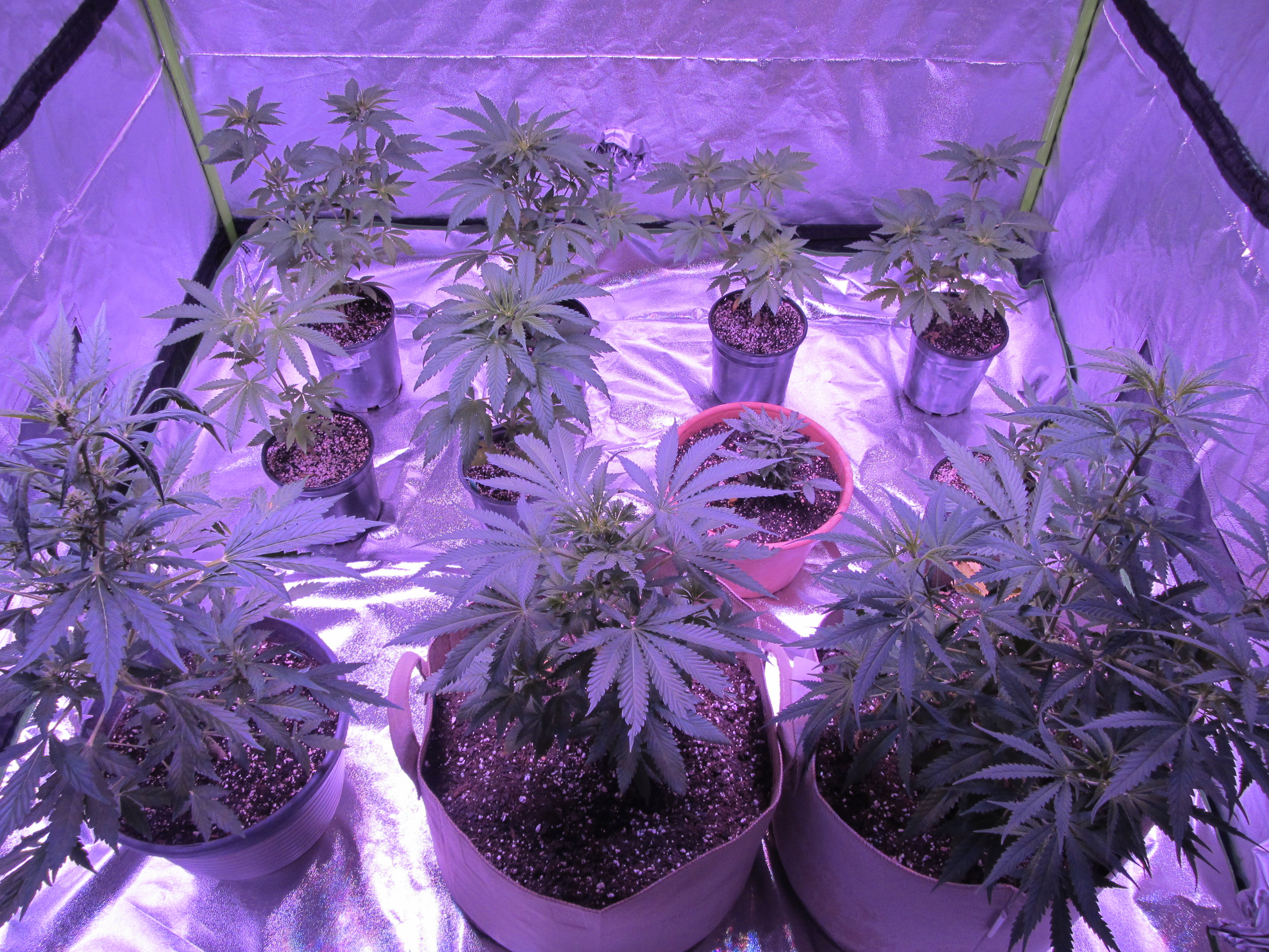 Lots of transplanting to be done to grow bags, but I am waiting until a couple of autos finish, and a couple of photos I will be doing light deprivation for an early harvest. My 5'X 5'X 80" tent would be a little overcrowded with transplanting now.