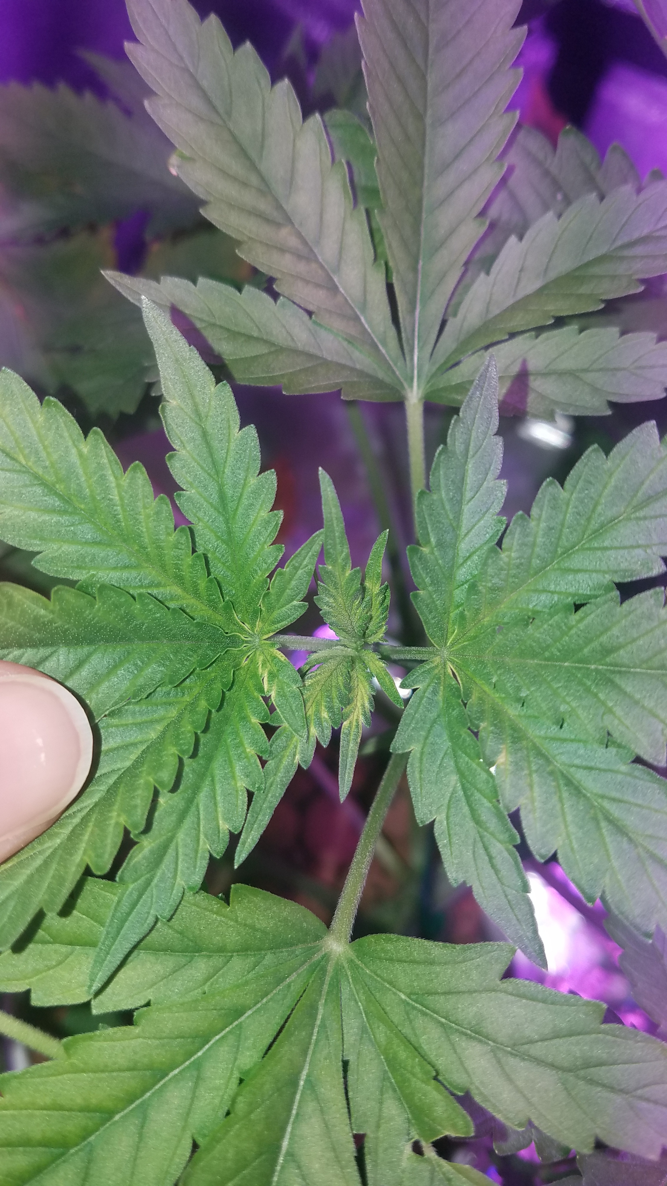 I'm beginning to notice some yellowing in the vein areas on some of my new growth. My plant is about 30 days old and is being grown in a hydroponic setup. Temperature is 80 degrees with humidity hanging out around 58%. Using general hydroponics nutrients at half strength currently. Under LED lights 20 / 4. I've really have had to struggle to get my pH steady. I'm using hard well water but it seems like I'm experiencing a lot of fluctuations despite a high PPM. Can anyone help me identify what's happening with this plant?