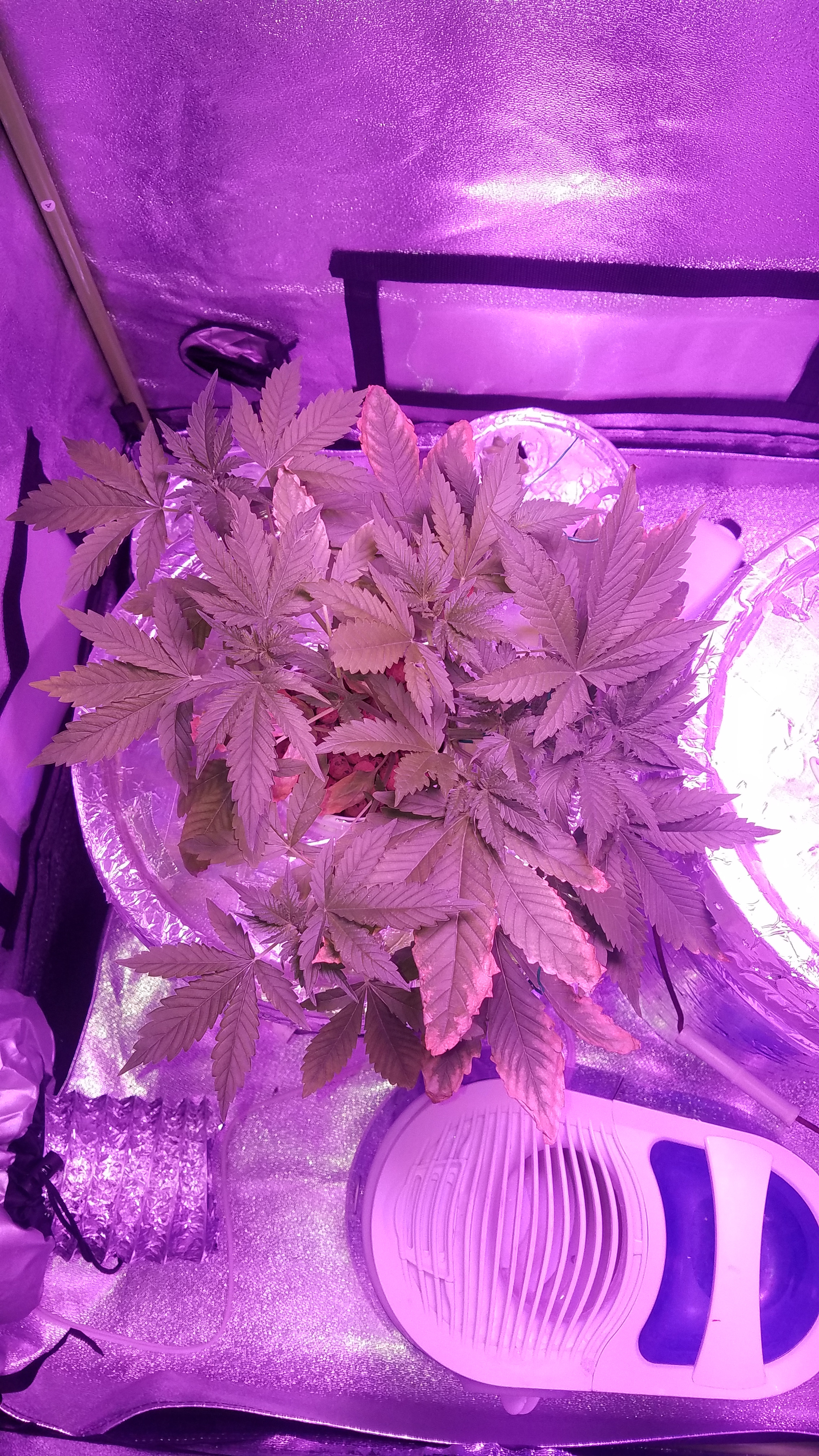and yes, I will probably dump him and start another. They're both autos so the light schedule should work. This is my first grow.. it's harder than I thought! Here's a picture of the entire first plant. Had some problems with yellow leaf tips last week but that seems to have ceased for now!