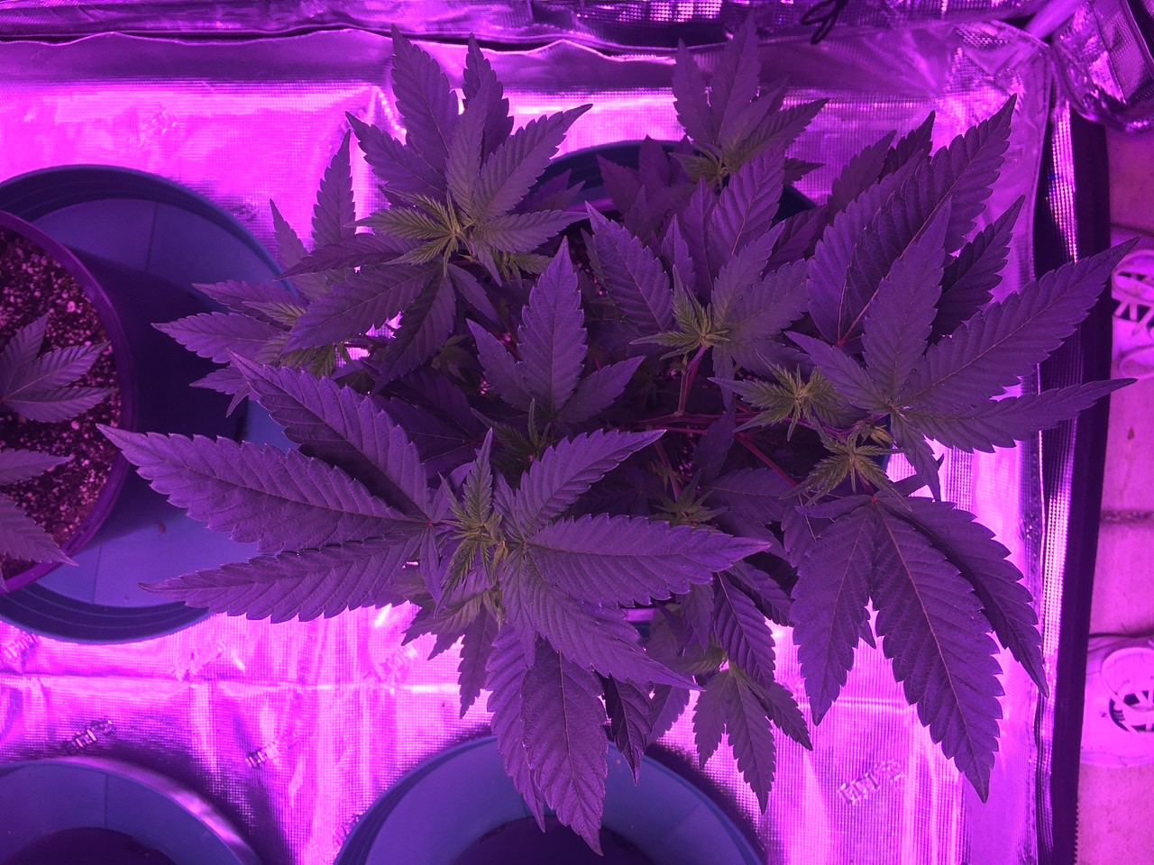 The growth seems to have slowed and they’re starting to get more bushy since I flipped the timer. 1-2” in Growth last three days. 20-22 “ now. I know I should net or tie these down but I wanted to do a straightforward grow so I could see how the plants react differently indoors in a smaller pot. Haven’t decided what to do yet. A trellis would be easy to do using the horizontal support poles above the plants which slide up and down. As a last resort, I can extend the height of my tent by 12”” but I’d like to avoid tearing everything down and redoing it.