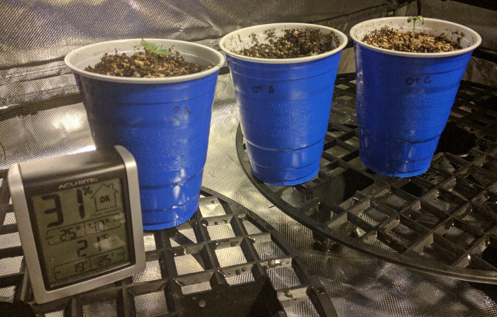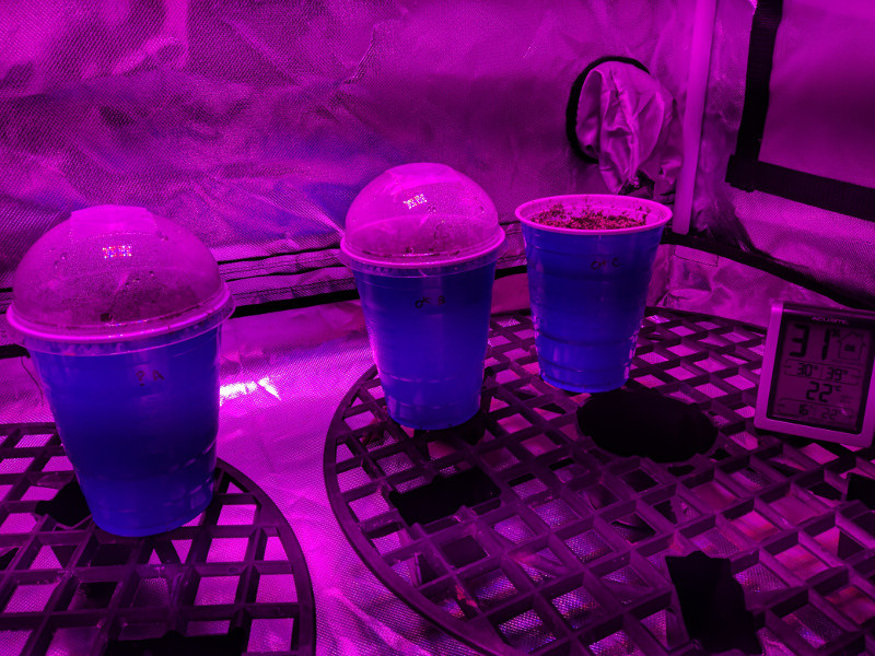 This grow is a group of Purple Kush, seeds sourced from Montreal Cannabis Seeds. All seeds have cracked. Two feminized seeds and one regular were planted. We shall see how this grow turns out!