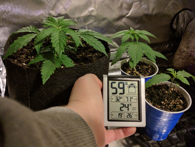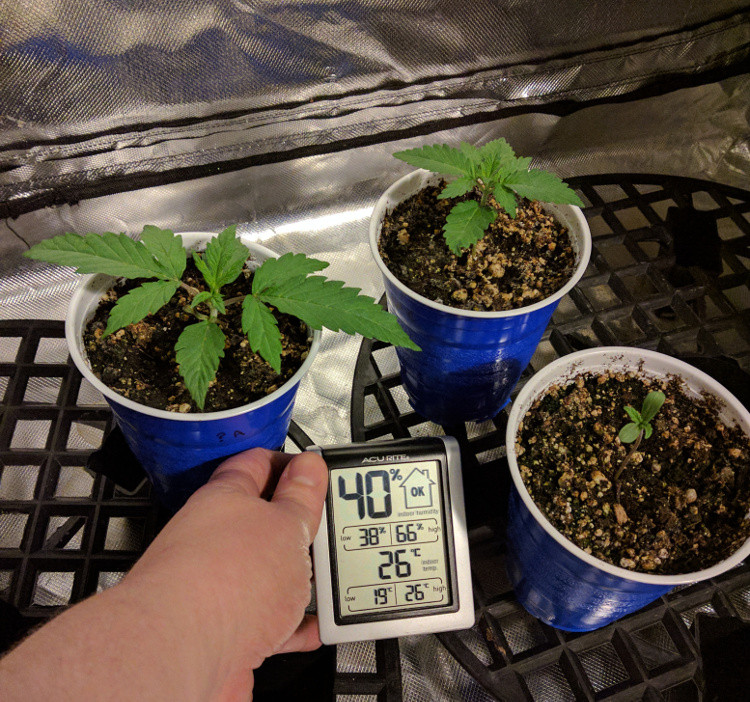 Per the photo, tent conditions are RH 30-39% (this is the room RH, no changes have been made), and temps 16c-22c, with the cooler temp happening at lights-off.