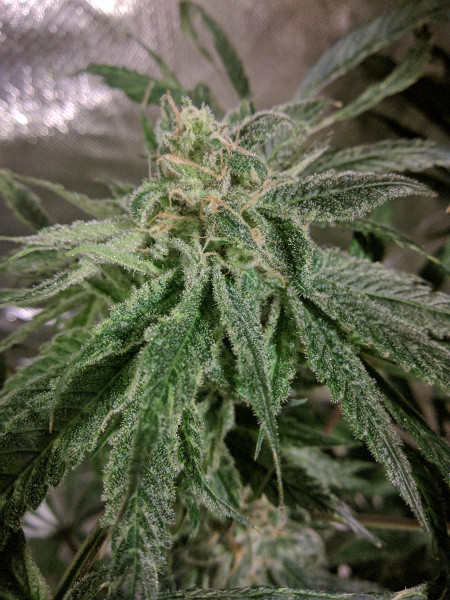 Flavor notes: This one lacks the fruity notes, and has a bit of a lemon-diesel-skunk thing going on. I could swear it reminds me of my first white kush I grew from this breeder. It's more potent than the purple, I find I get more stoned on less vaped bud, but for some reason, I don't like the character of the high quite as much. I can't quite put my finger on what makes the difference for me though.