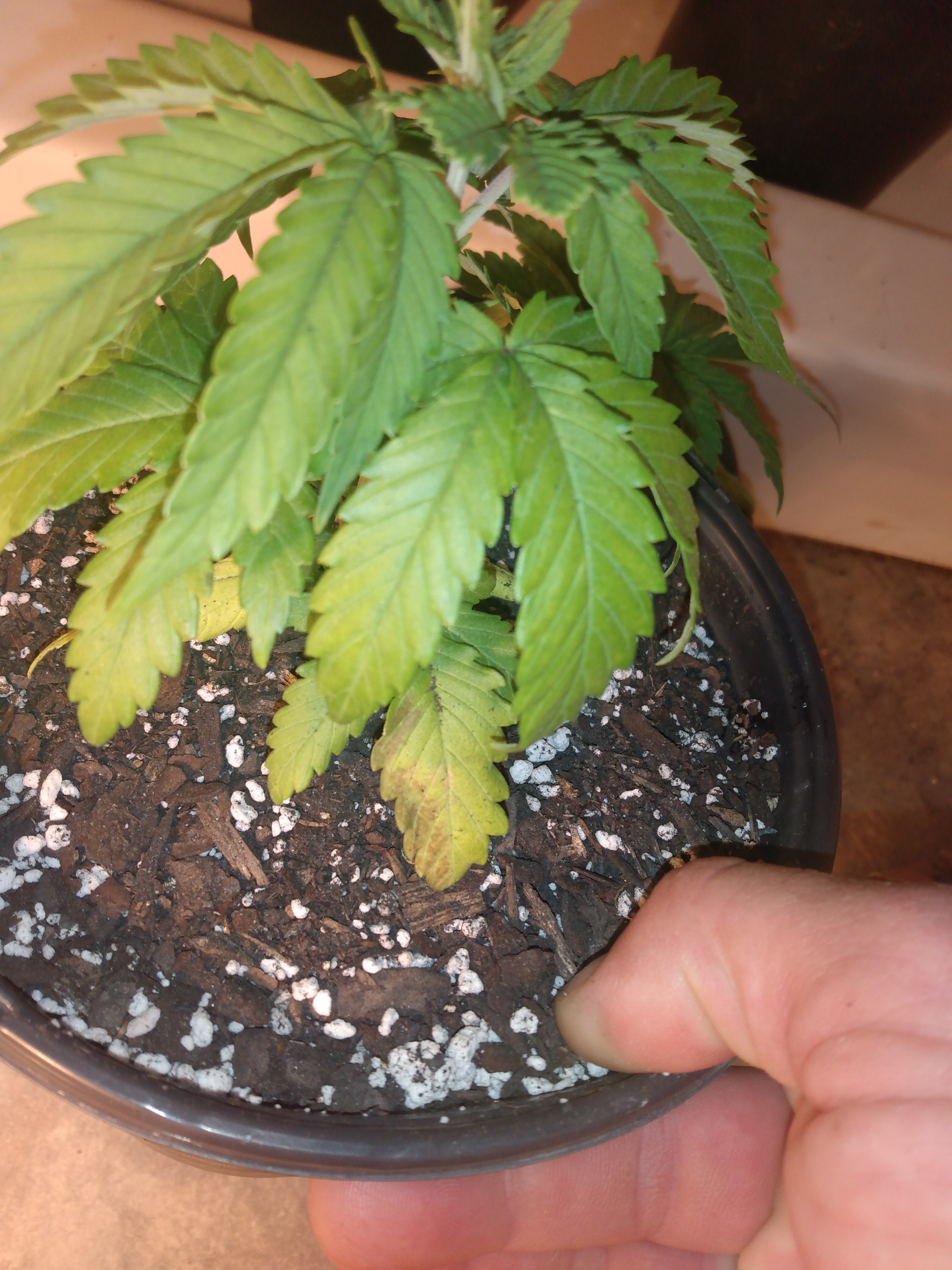 you have root issues ,your growing in dirt so I would say you have nutrient problems as well .first thing I would do is transplant into bigger pots 5 to 10 gallon, This isn't a put down or anything like that but I think your soil never had or is out of nutrients ,those plants should be 2 to 3 times bigger this girl was planted on Jan 3rd so she is close to 5 weeks ,shes in coco in a 3 gallon pot1 Photonew grow room built summer of 2017 ,argo max tent for veging ,big kahuna reflector, 1000hps with added leds for the full spectrum . 15th indoor grow ,5 years outside gorilla grows(stealth is the key),veg under t5s growing autos under 300w leds