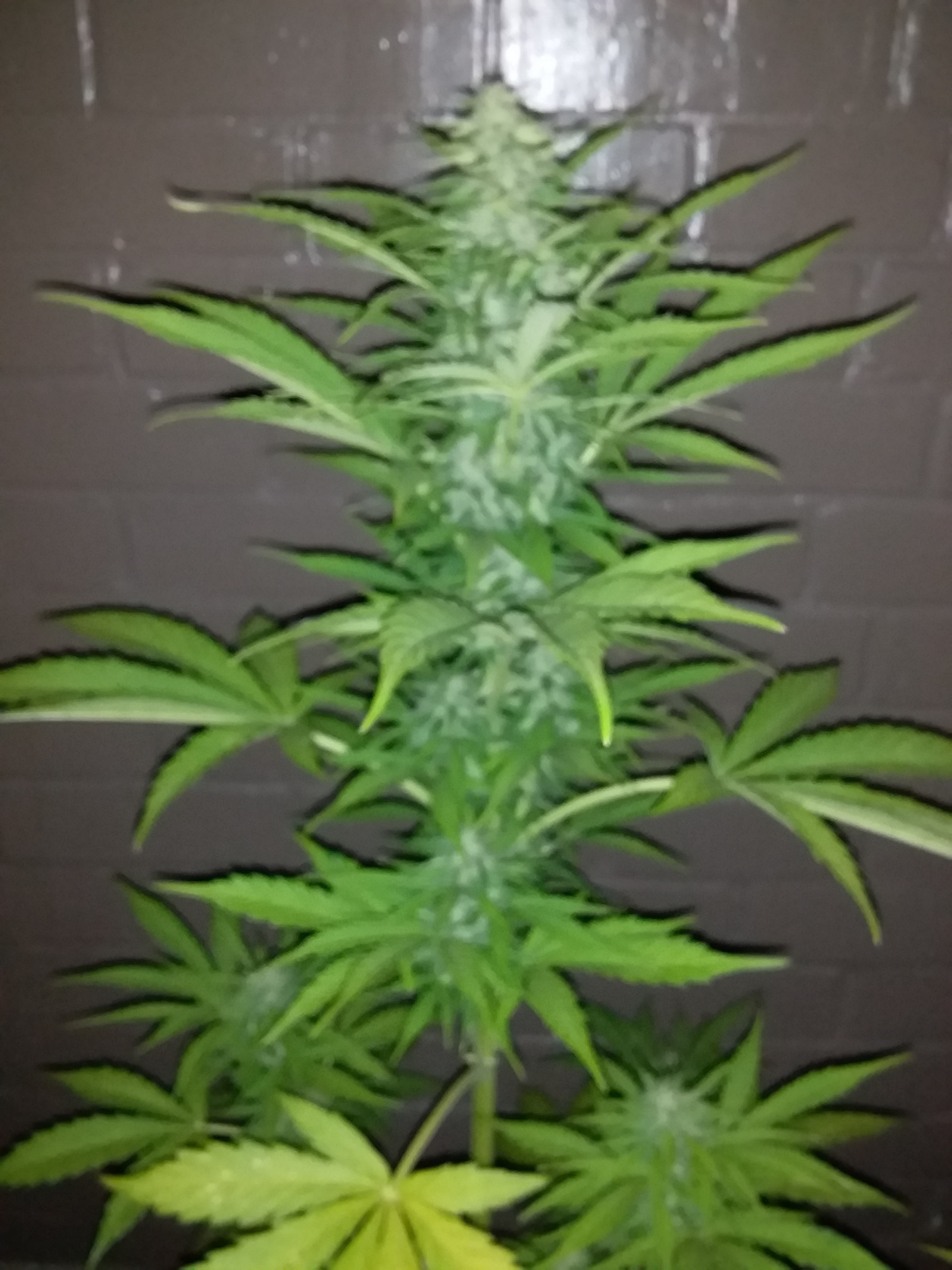 And this is my amnesia x at 8weeks old outdoors. Excuse this.girl she had conplications but the little buds that are on her are very dense and the aroma is 2nd to none she smells pungently fruity fresh proberly the best scented weed iv ever smelt.