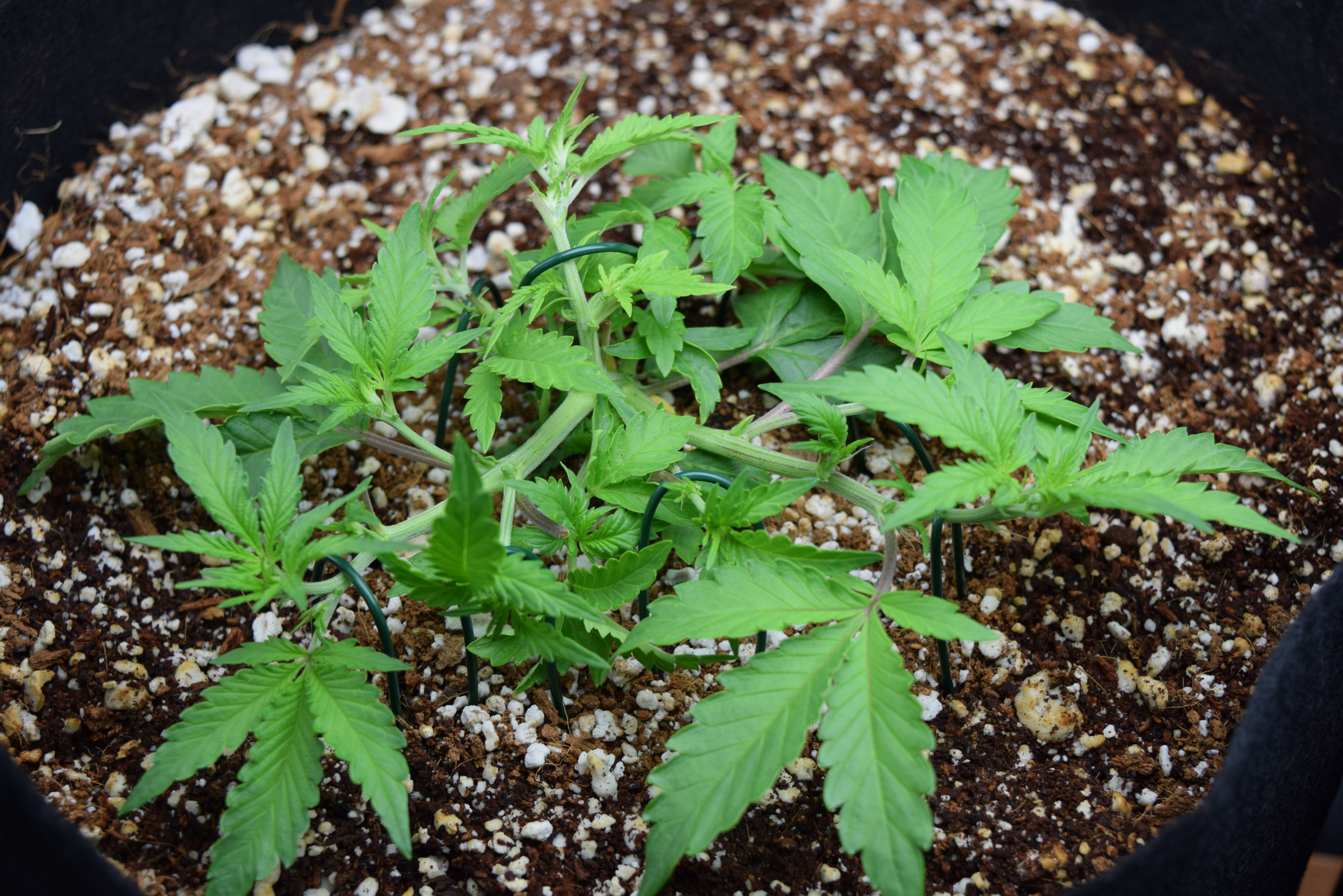 They are just before flowering they are suppose to be 56 days on 25 today. I topped it at 4 nodes to get a busy mindset in the plant more branches is more pot. then you start to train those branches and opening up the plant to more light. I can't top again you just lay the branches down some take a couple days to get the same height as the others and take the leaf blocking the bud sites.