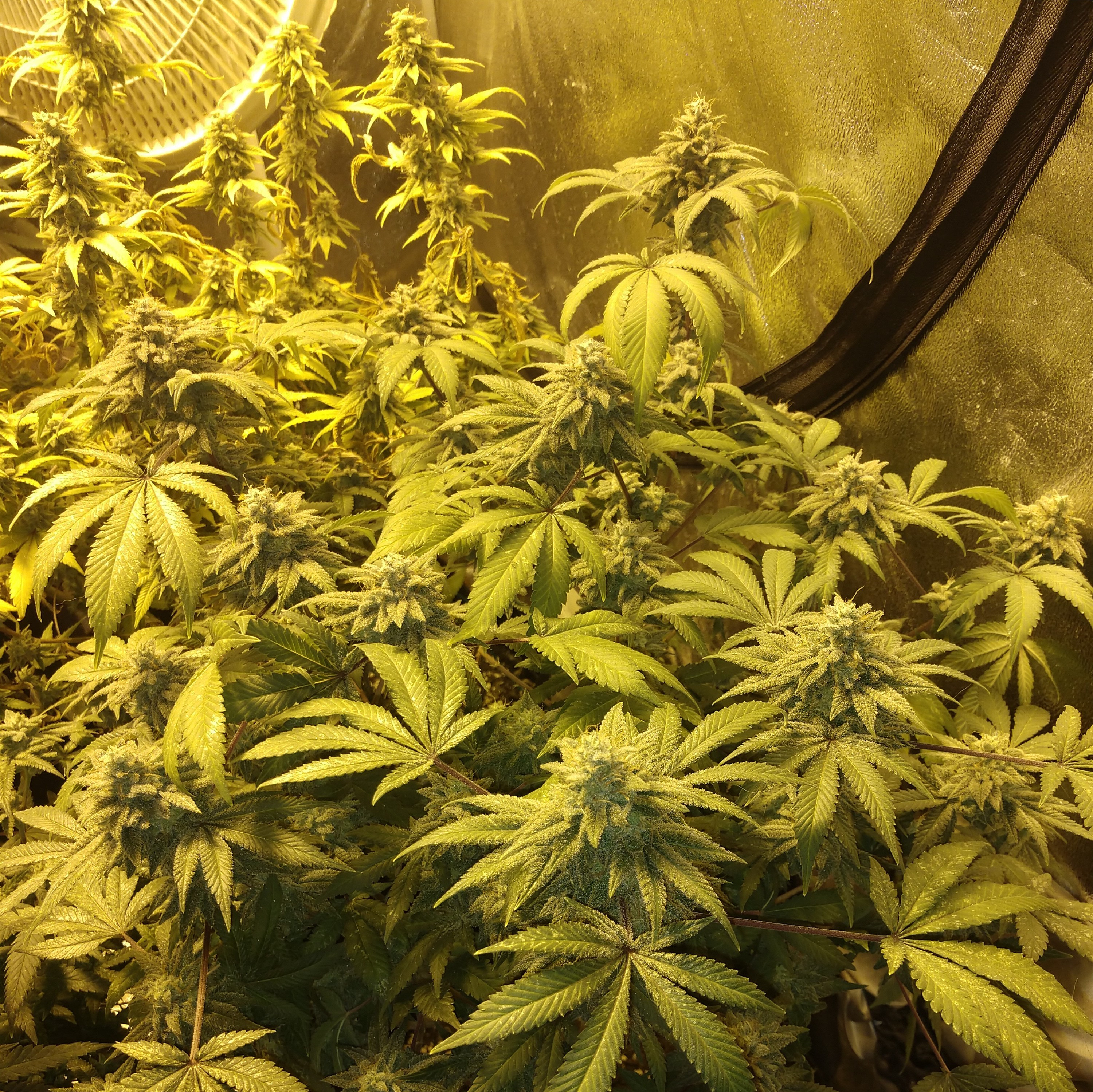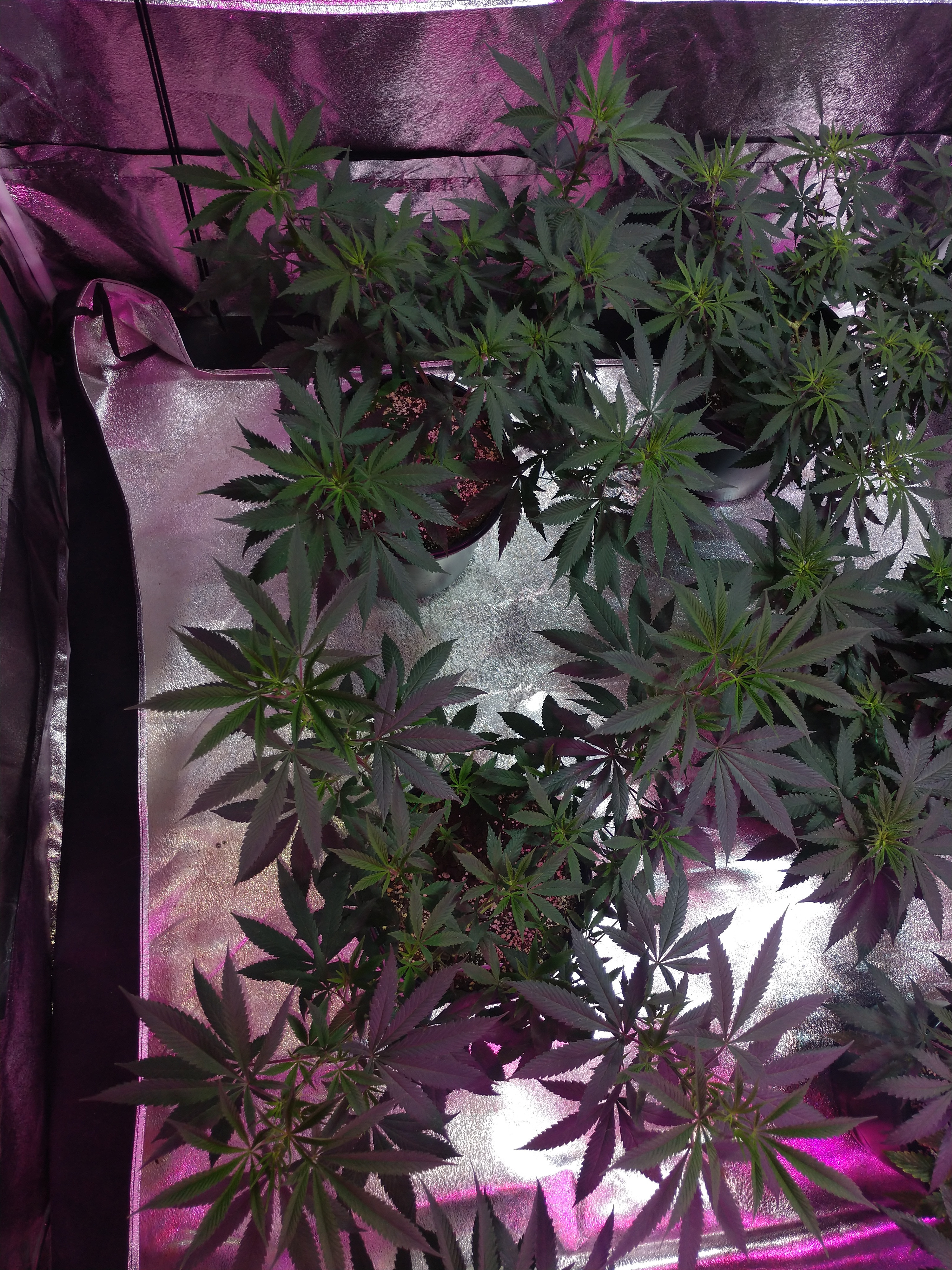 They actually have a little room between them it's just not very noticeable with the angles. Definitely not going to wait much longer though. I kind of want roughly 6 more inches on them before I flip but mainly trying to let the roots dig into the amended soil a little first so they explode. Been getting antsy though cause some of them are pretty big and already showing pistils on most of them. Can't wait for the flower stage, should be an interesting mix of aromas, citrus, coffee, cheese, and more. Kind of wanting to get some clones since there's 10 strains in there and a few of them I don't have many seeds left, if any at all. Just don't really have the room for all that right now. I may take them as soon as I flip so they'll be ready as soon as the big tent is empty, hopefully.