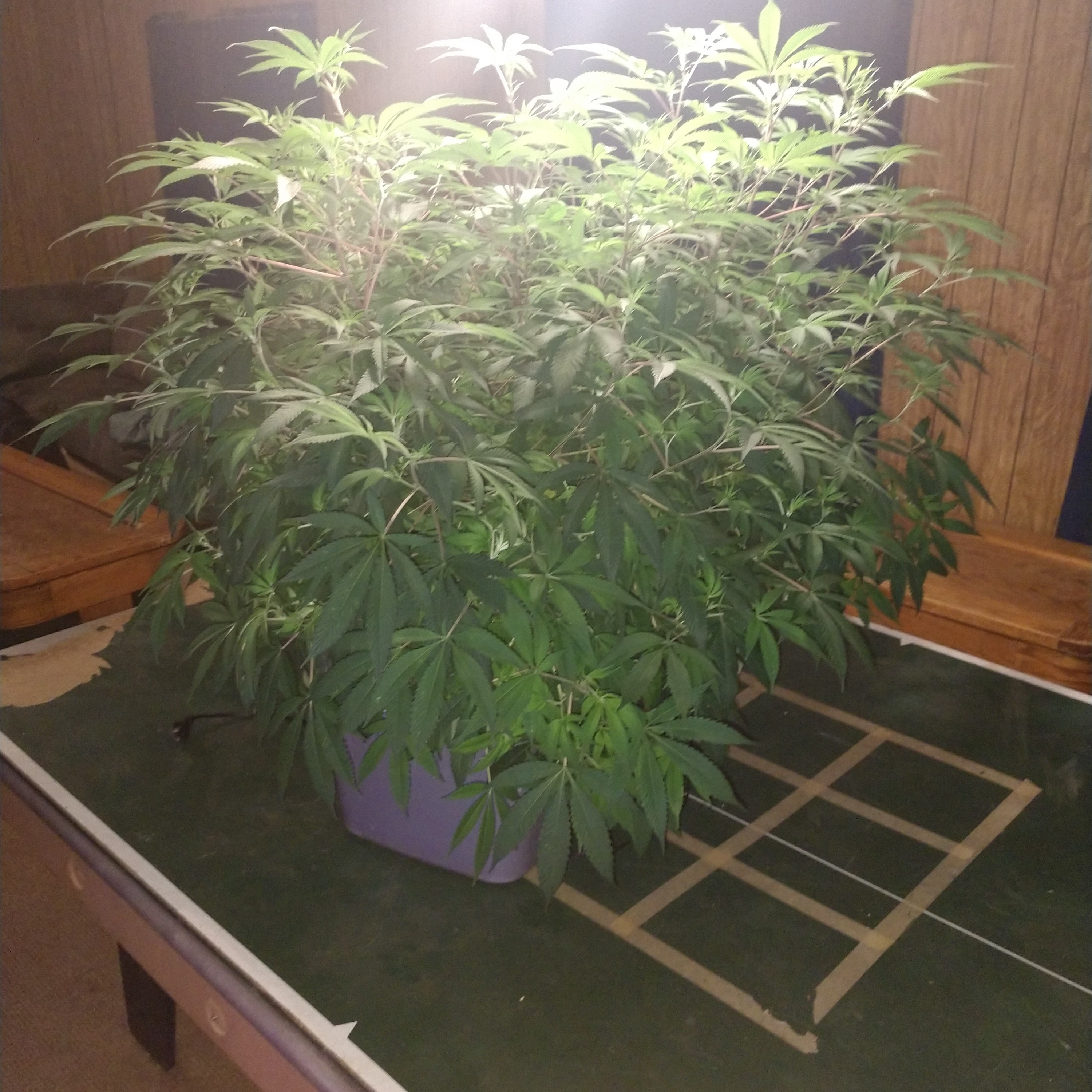 I know she does look the same. She's just really thick honestly. I took all the big fan leaves out, as well as some of the bud sites that wouldn't get much light. I threw out about half a kitchen trash bag worth of trimmings but at probably over 3 feet wide you can't really see through her still. I'll try to see if a top angle will show up better. Not taking her out this time though, that was a chore last time. The pictures aren't in the right order though so that doesn't help either.