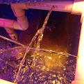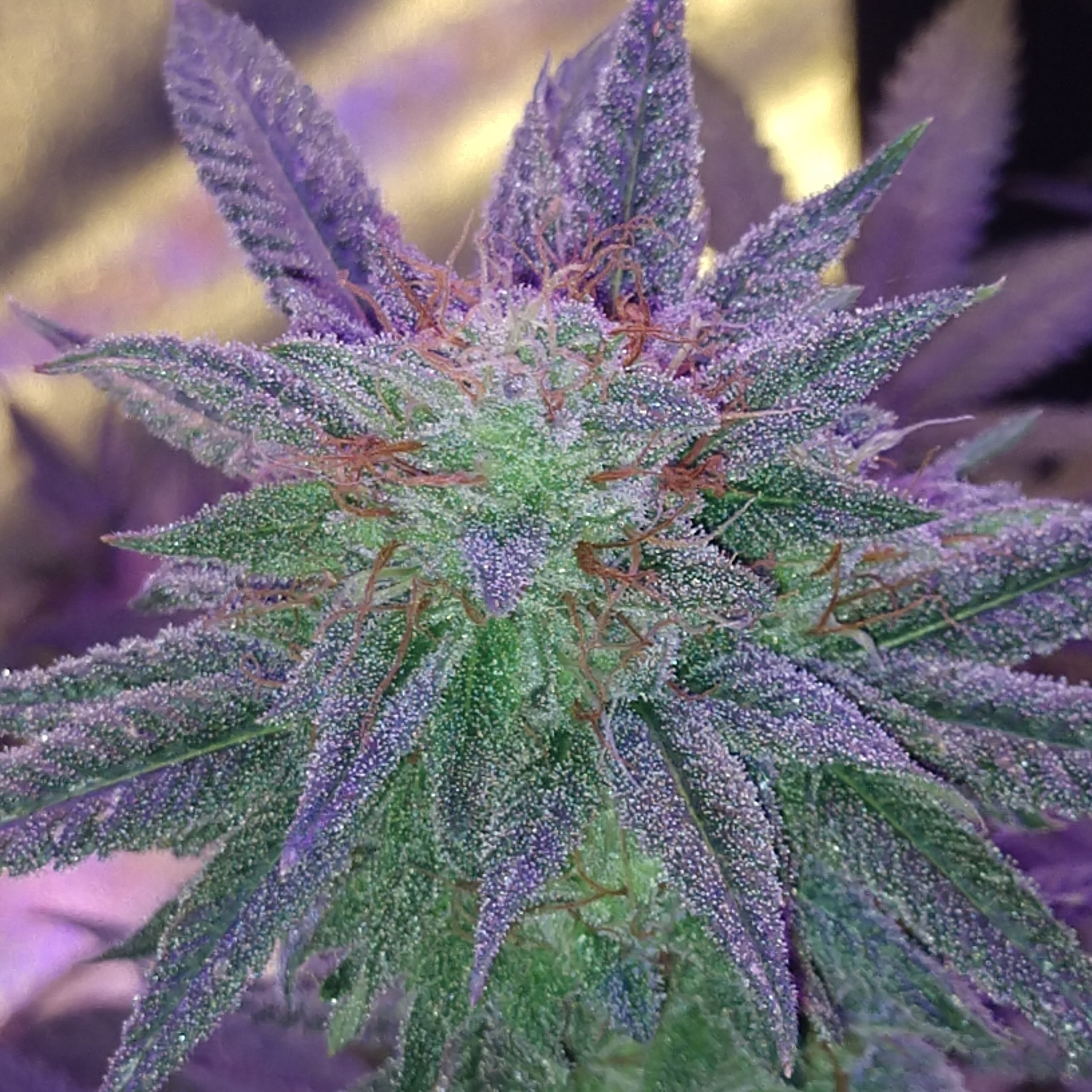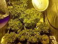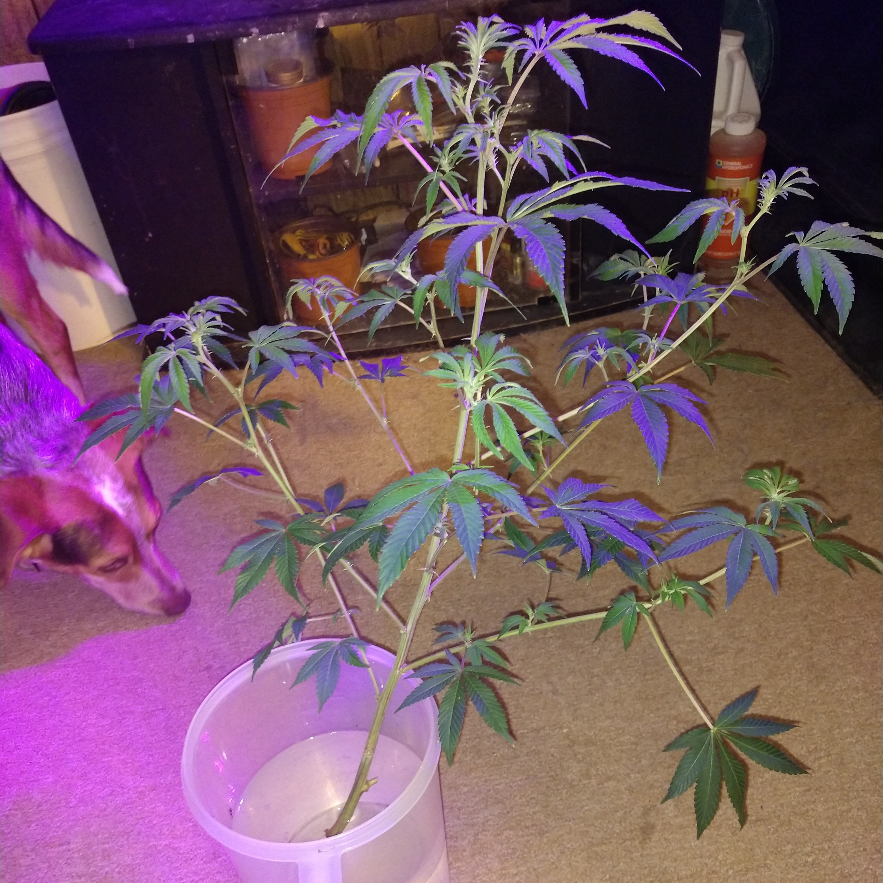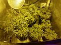 So I found 2 males, GG and Under Dawg. If I remember correctly I didn't care for the Under Dawg that much. It wasn't bad but I was mainly growing it to have a different strain to smoke (the more the merrier, right?). After careful consideration I decided to toss the Under Dawg and keep growing the GG to collect the pollen. I realize I will have to be careful not to pollinate my other girls but I wanted to try my luck with cross breeding. I separated him from the other girls and topped/supercropped him so he'd fit in my 2x2. Tight fit but I made it work. I think the GG will make just about any strain so much better, but I really want to cross the GG with Str8 Lemonade (thinking of calling it Lemon Glue). I feel like it will be the perfect cross and I'm hoping the flavor is as amazing as I think it will be. Also took some huge cuttings from the bottom of one of my hydro clones. Hoping they root cause they're over 12", one is probably closer to 24". I figured that will cut off a month or more, easily. They're actually so big I have them in a pitcher! Anyway, pictures are the GG crammed into it's final home and my veg tent with the cuttings. Cuttings are healthy too, only sprayed them a few times so far (took them 2 days ago) but they're reaching for the light so that's a good sign. Also, just for fun I took some pictures of the beast with pictures of the manifold from the bottom so you guys can see the structure. Probably could have trimmed a little more out of the middle but I'm pretty much done messing with her unless she gets really unruly again. Throwing in some pictures of the big tent too. Thinned out the girls in there (since I know they're all female now). I may have gone a bit high on some but I think I at least got the lollipopping done right this time. Been having trouble figuring that part out, I usually leave too much so I end up with a lot of popcorn buds. Trying to get the long, fat colas like I see everyone else get. I feel like mine always stretch too much for that though, there's always space between the buds. Anyone have suggestions on how I can fix that? Don't mind the droopy leaves on the one, it's watering day so she's a little dry. The flower pictured has maybe 2 weeks left until she's done, last 2 from the last cycle. Will be starting a new post since there's only 2 left from the original post anyway. Pretty disappointed with the yields I got so we'll chalk this one up as a learning grow as well. Probably would have helped a lot if I had kept feeding the molasses and lollipopped better. Have been good about it on the remaining girls so we'll see how much different it will be. Hope you guys enjoyed this grow, thanks for tuning in.