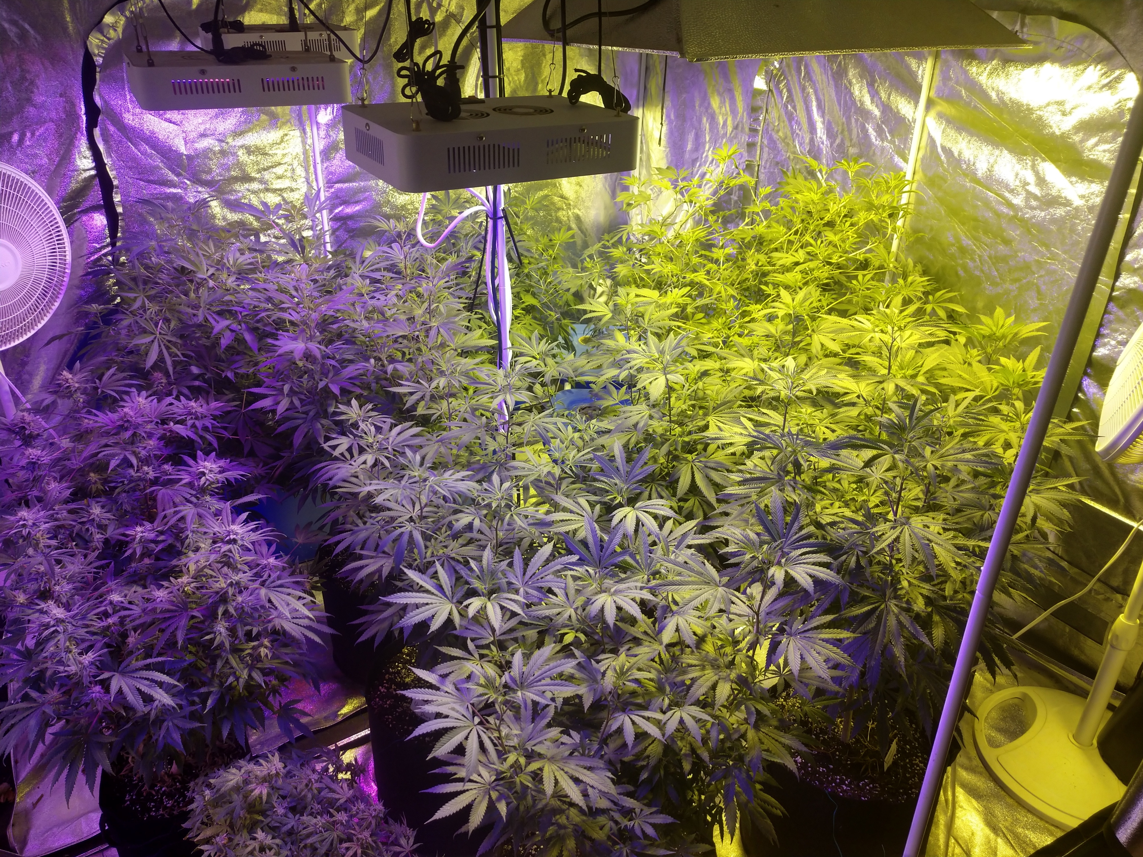 Thanks. I'm using amended soil, a mix of Fox Farms Ocean Forest and Happy Frog on top. Thought about using an entire room but the smell would be overpowering. Not only that but I can stagger my grows this way and harvest every month or 2 as opposed to every 5-6 months. My 8x8' tent is basically an entire room and it's in my dining room, since I don't really use it. Can't see it all that well but there's 3 hydro in the big tent as well. Hydro grows faster but I like the flavor of soil weed better. Still probably going to do one hydro tent and the rest will be soil.