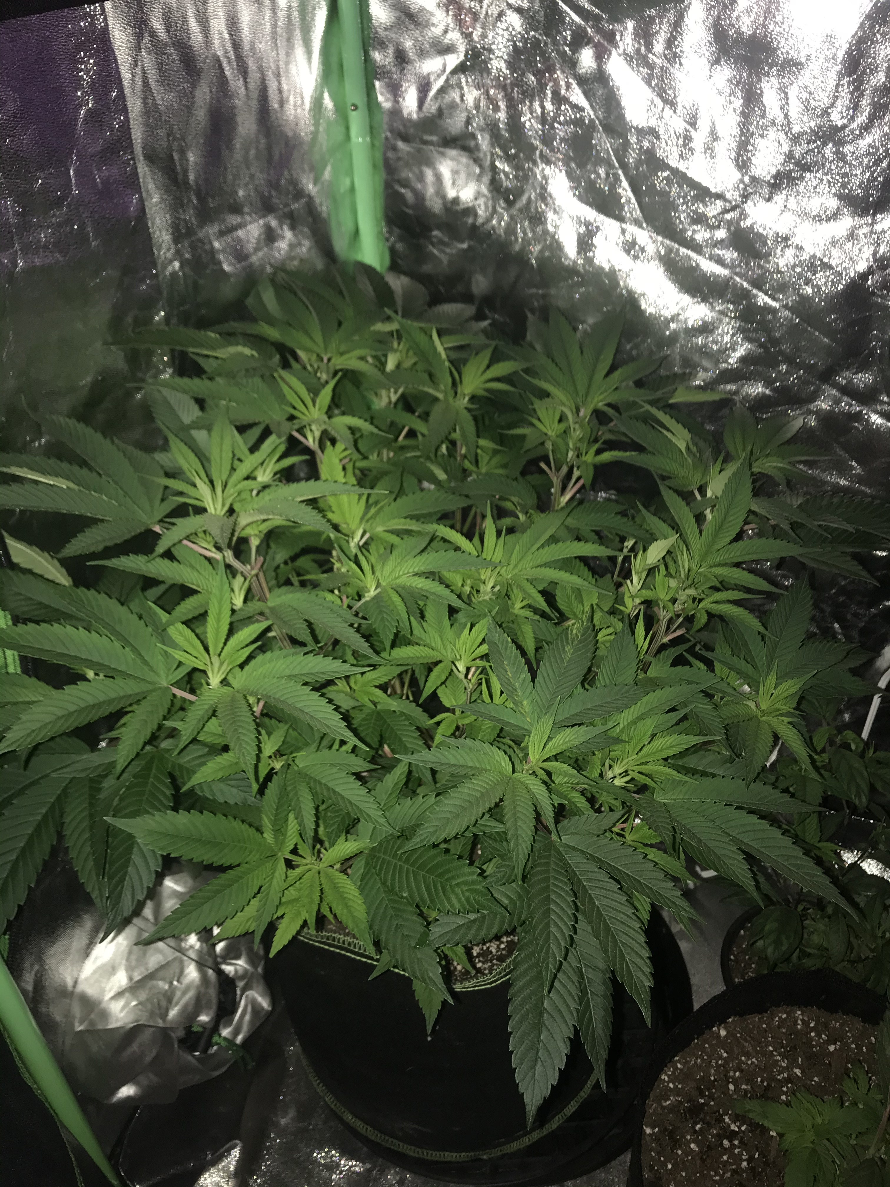 Bigger pot for sure, grow bags are the way to go for a new home for it. Let it dry out for few days after rehoming. Then just some PhD water till it looks better.. Not to highjack your thread but I have a Green Crack going right now and this is in a 5 gallon grow bag and is 48 days from it’s transplant as a clone.Last edited by Booger789; 02-27-2020, 04:43 PM.4x4 flower tent