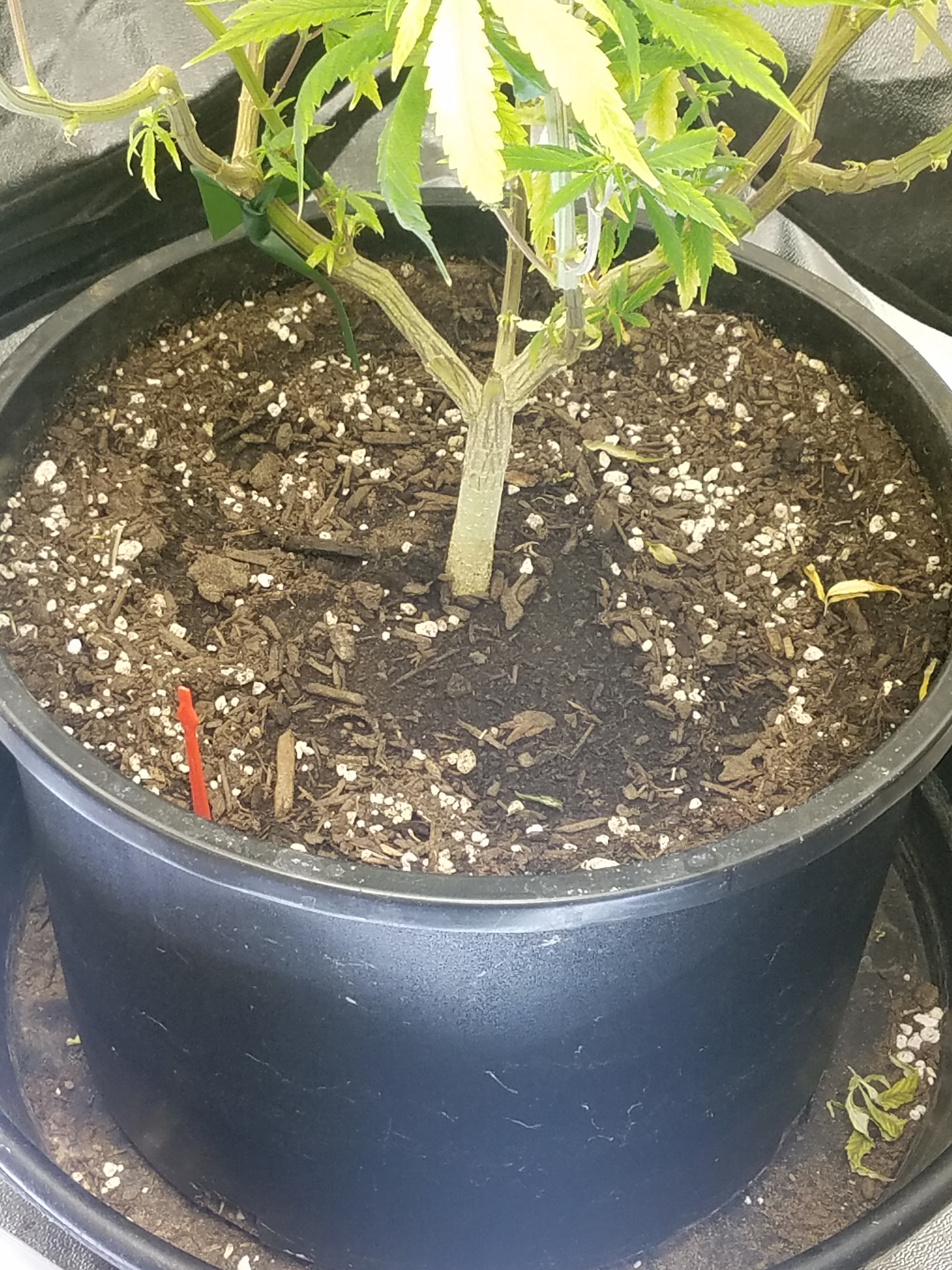 So my ph is spot on, feeding Humbolts Secret A&B, Cal Mag & molasses, 7gal plastic, flushed soil, 4wks into flower. How is a whole plant turning yellow? *Note this is the one I had probs with earlier until Mr.furley helped me remember it was in 1/2 used soil. It was doing great & catching up until now.