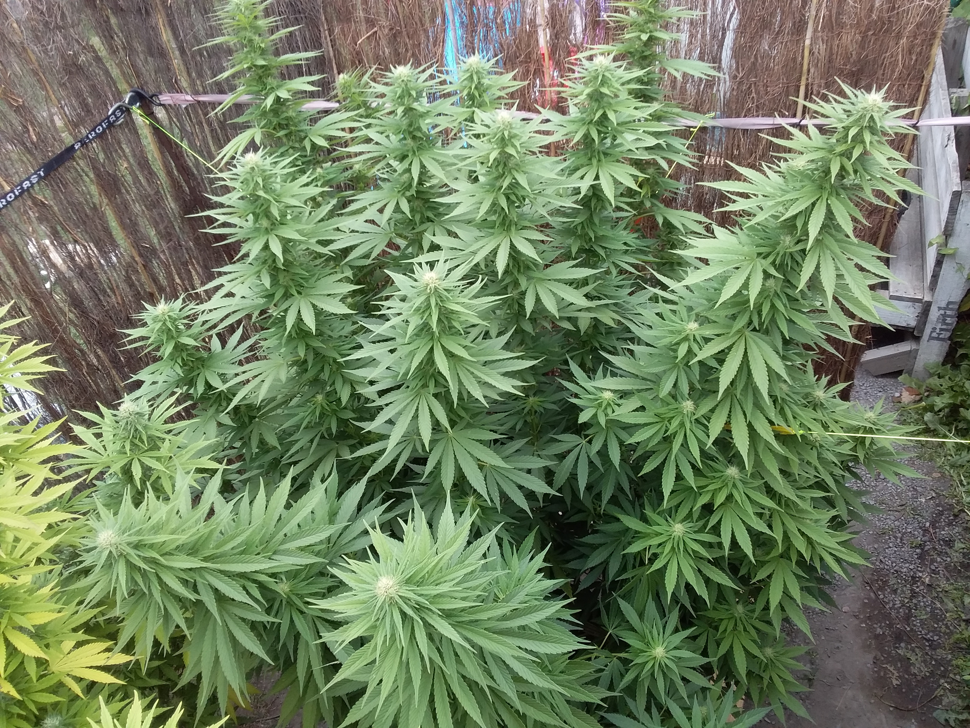As ya can see in 1 of the pics they are up to my sheds spouting nearly higher than roof 2.2m in height 1.7width is the big yellow one the hst.lst plant is 1.9m height if i get a tape measure and follow mainstalk ive seen alot of plants but not like this tho im not being cocky just honestIO'D