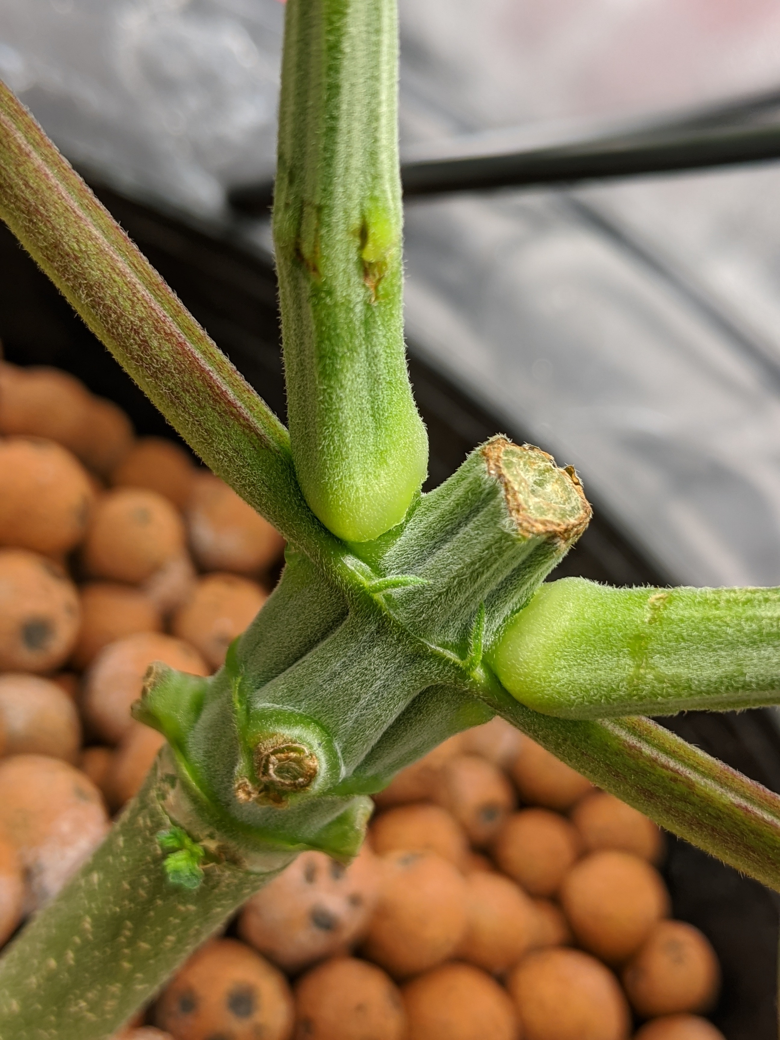 It's been a while since I last posted. She stopped getting worse, so it may have been a combination of needing CaliMag, stress, water temperature and light burn. The two branches had grown to 6 nodes, so I trimmed her down to only the third pairs on Friday. So far so good, I just wish I'd realized that I had been following the old mainlining tutorial instead of the newer manifolding tutorial 😅. It'll cost me a couple weeks based on how long these branches took. New pictures post-trimming attached.