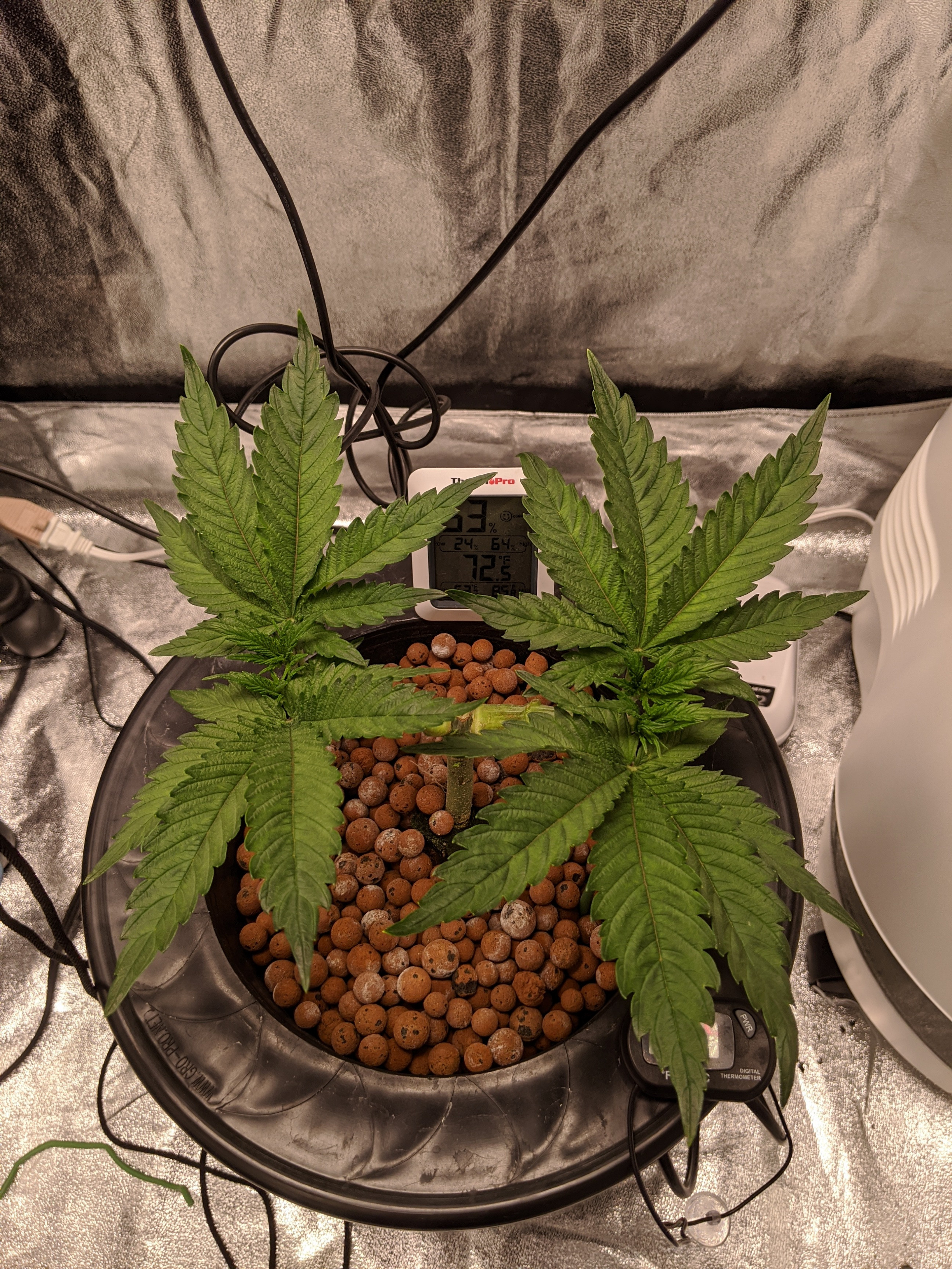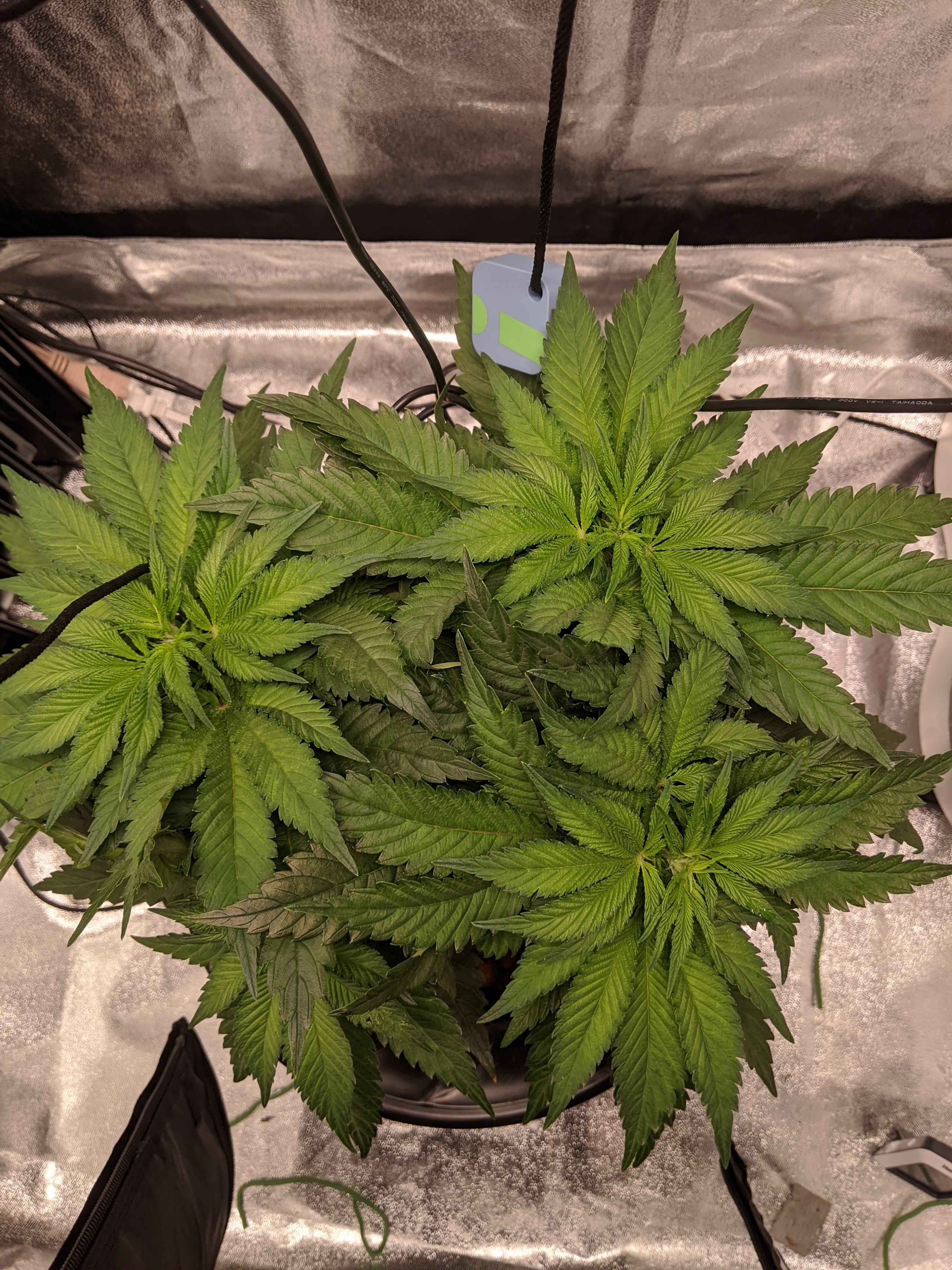 Another Sunday, another Sunday update. She's still growing well, the really old leaves are starting to show some spotting so I've increased the CALiMAGic a little bit. I also realized I accidentally bought the hard water variety of Flora Micro which is probably contributing. I'm going to keep this update short, as I'll be doing the last topping in a day or two, the third node on the current branches isn't quite as developed as I would like so I'm going to give her some more time. As always, photos attached, and I'll update again in once I've topped to start the final branches.