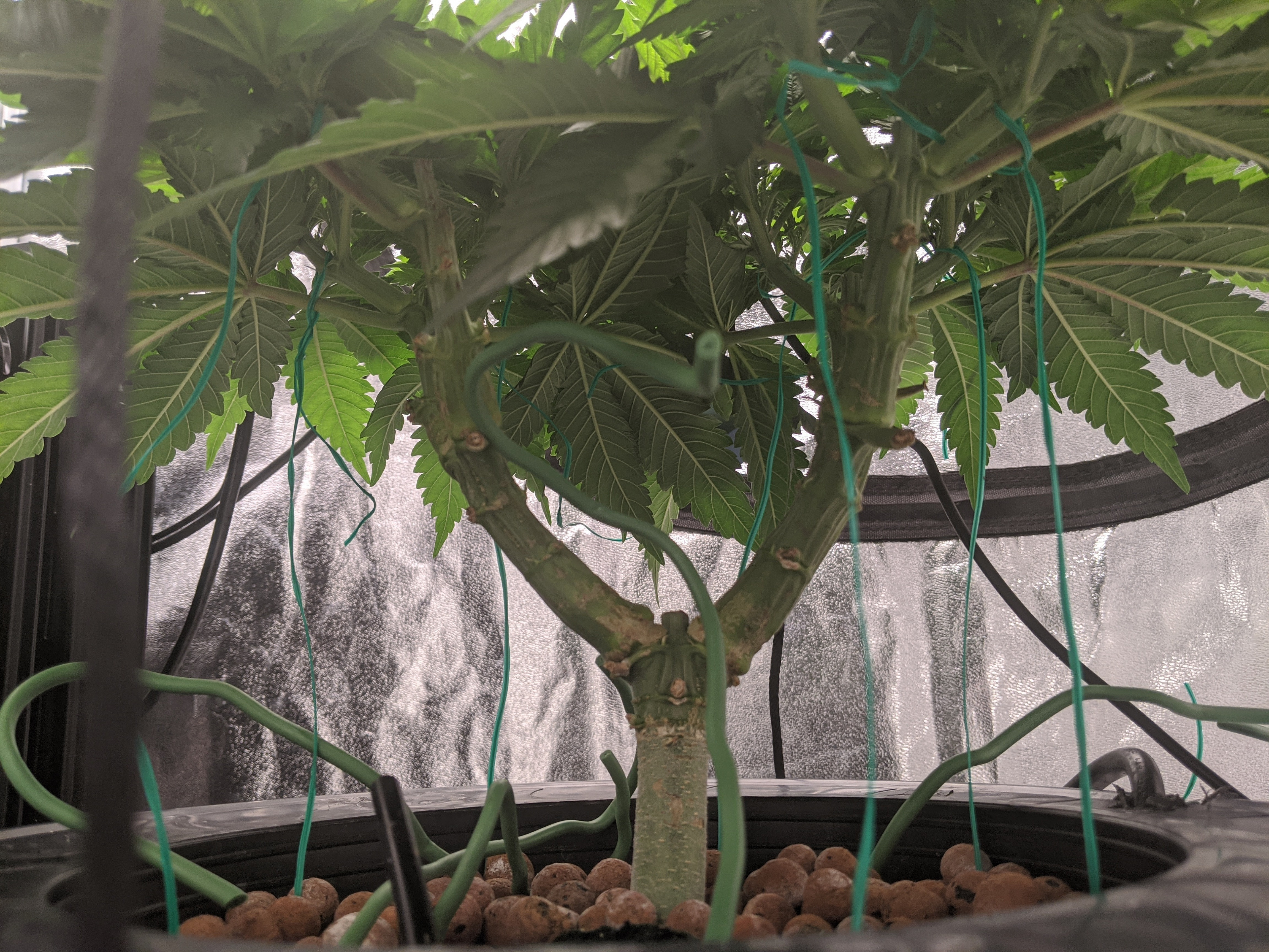 It’s been another couple of weeks, and the trichomes are starting to show. There’s a bit of nute burn going, so the next top up I’ll just put in some PH’d water. Even though I’m approaching week 6, I still had to do quite a bit of defoliation. It probably needs a bit more, but I was focusing more on the lower leaves with accessible stems. I’ll probably do a bit of trimming tomorrow on the upper canopy. As always, photos below.