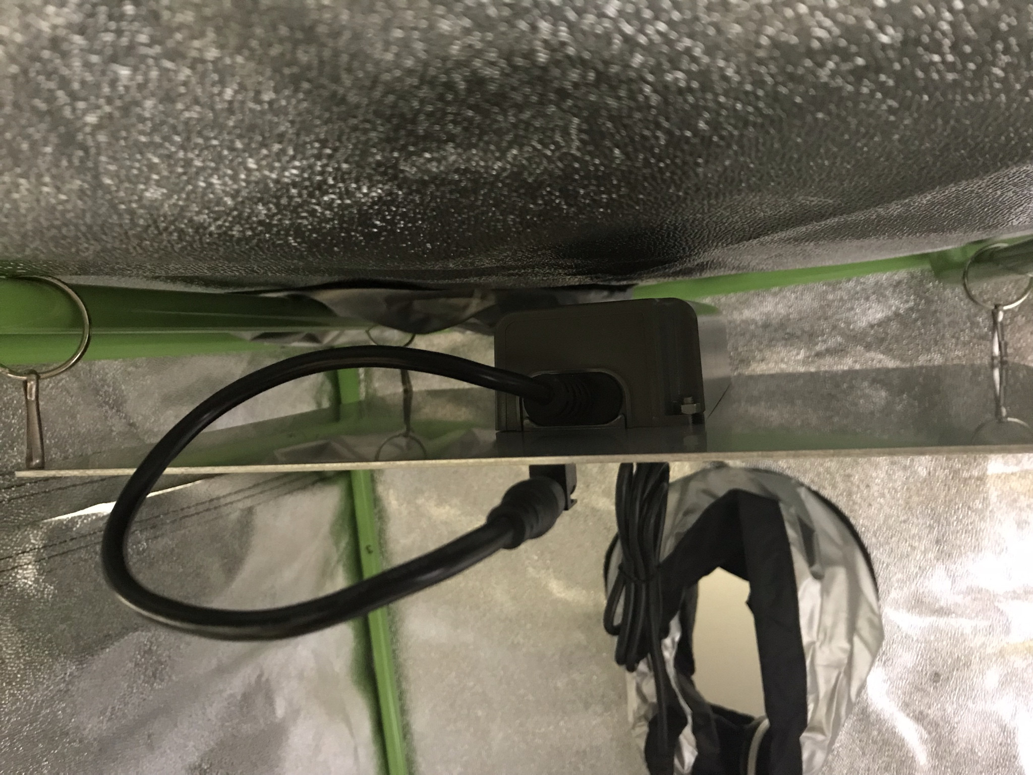 Last night I snaked a temp probe through the top of the tent and let it sit on top of the light about an inch away from the driver. I turned on the light and exhaust fan and checked the temp of the probe after 5 hours and it was sitting at 115F.