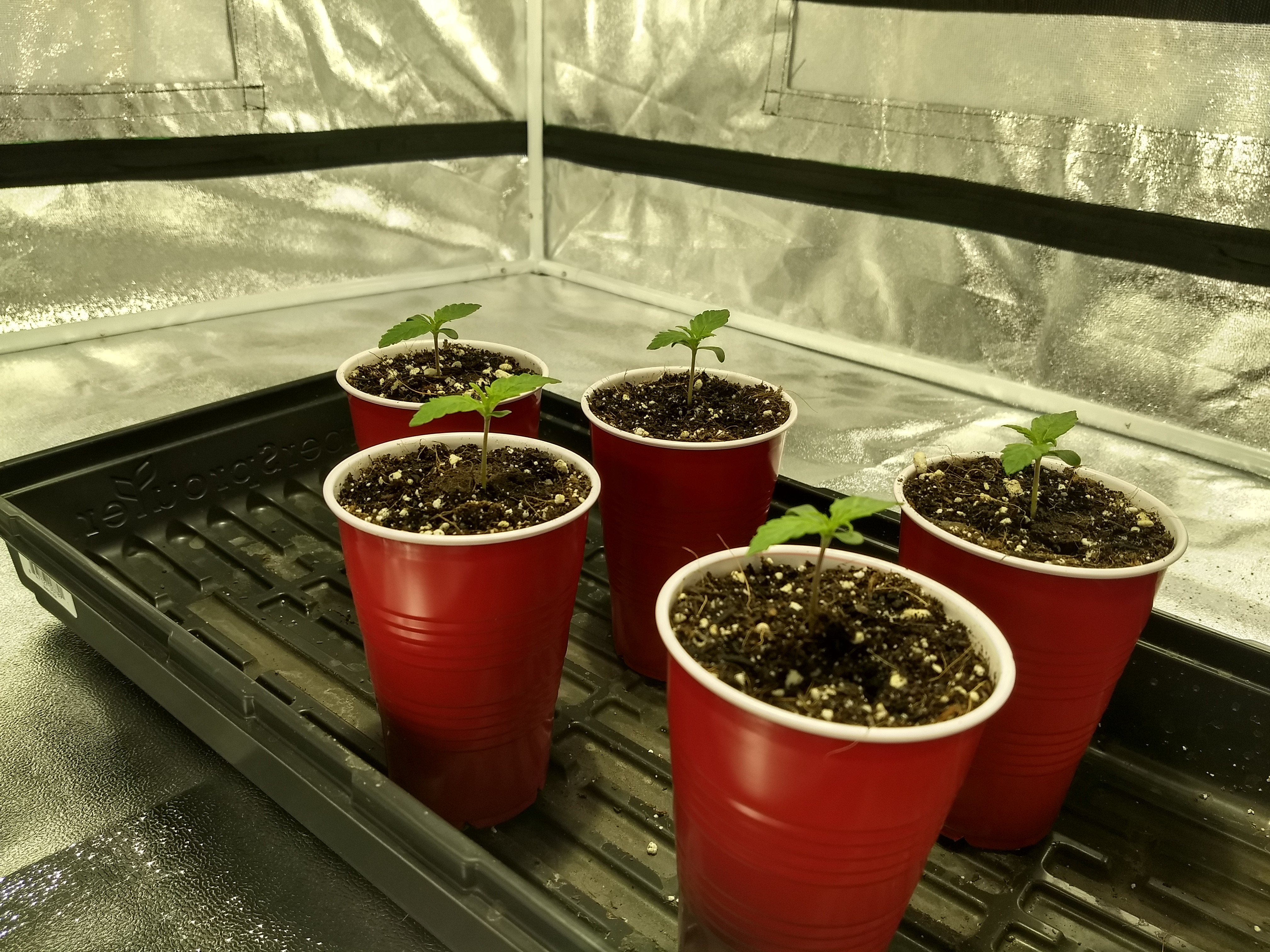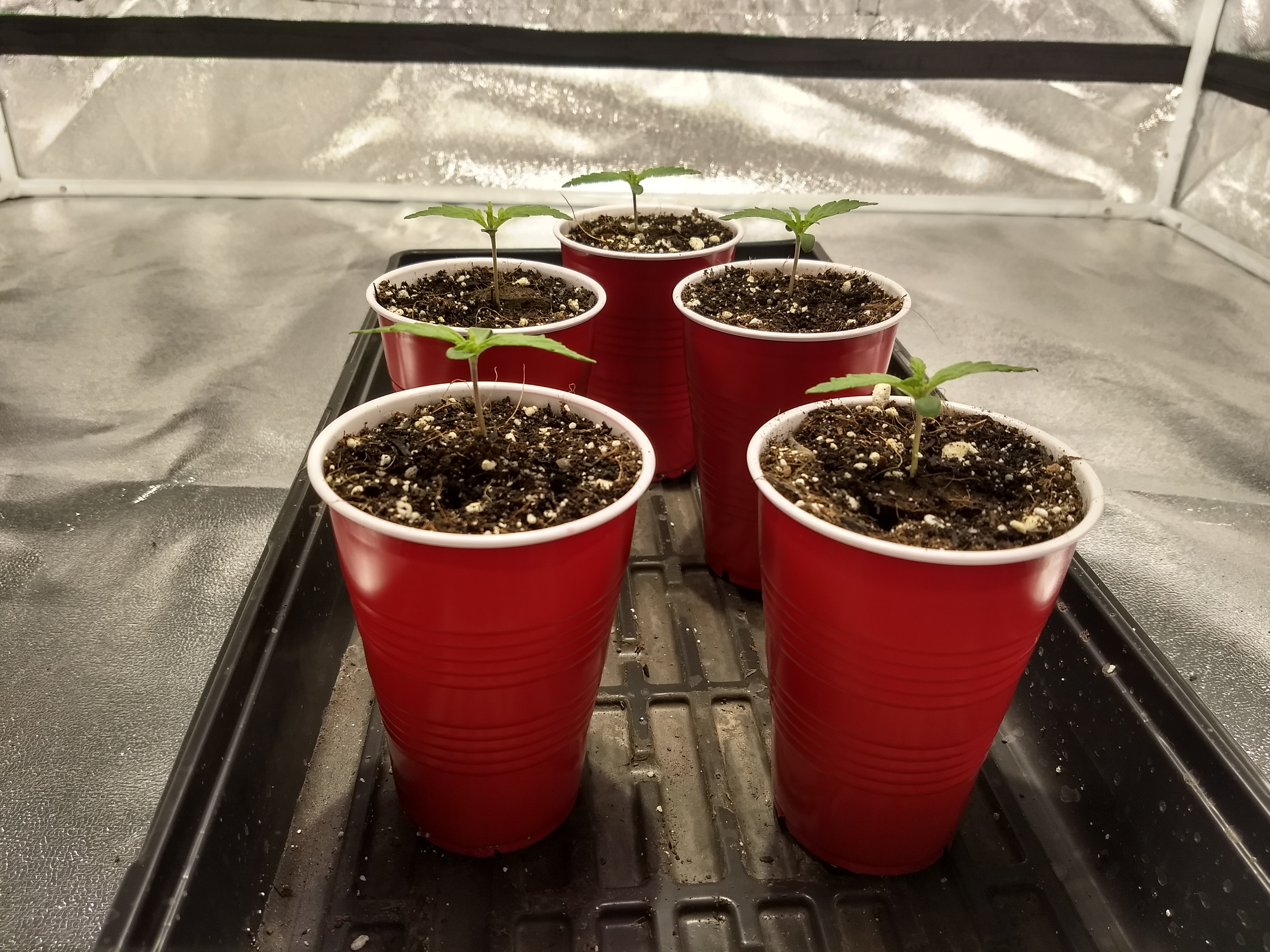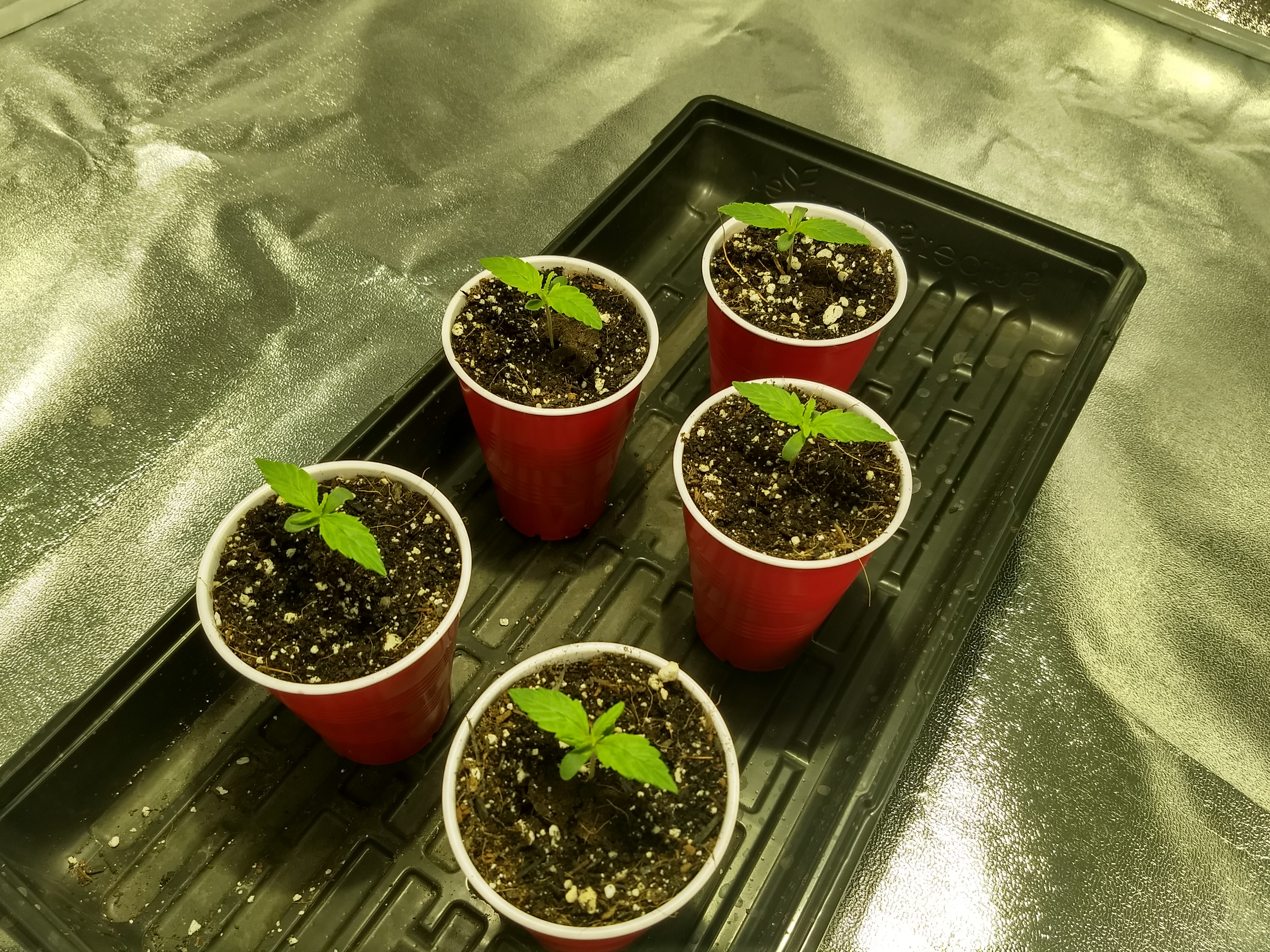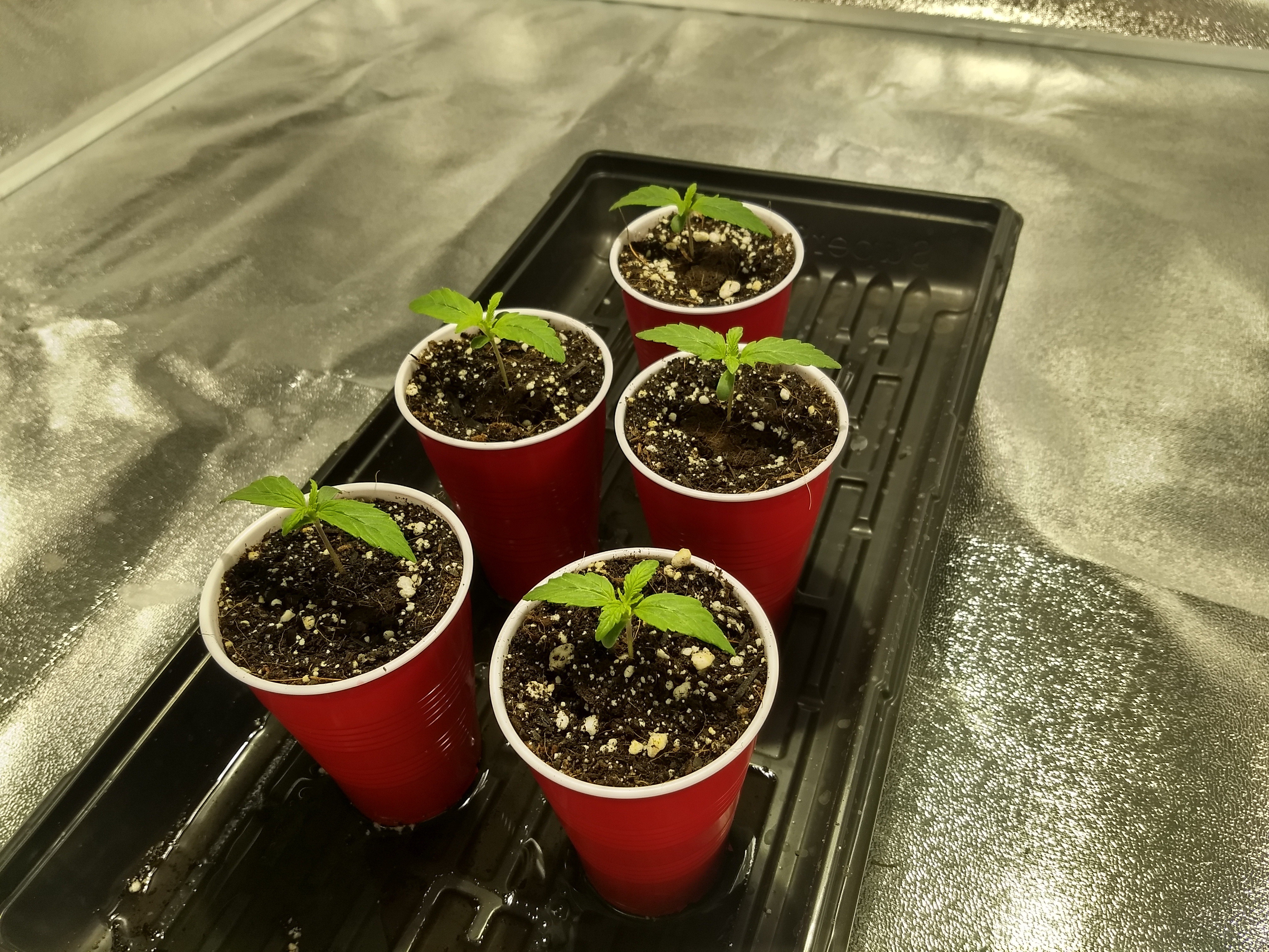 Gave them soft LED lighting for a couple days before I put them in coco, in solo cups, with 1/4 strength nutes (Cal-mag & Canna Coco A&B) on 3/12/20, and put them under the 315CMH.