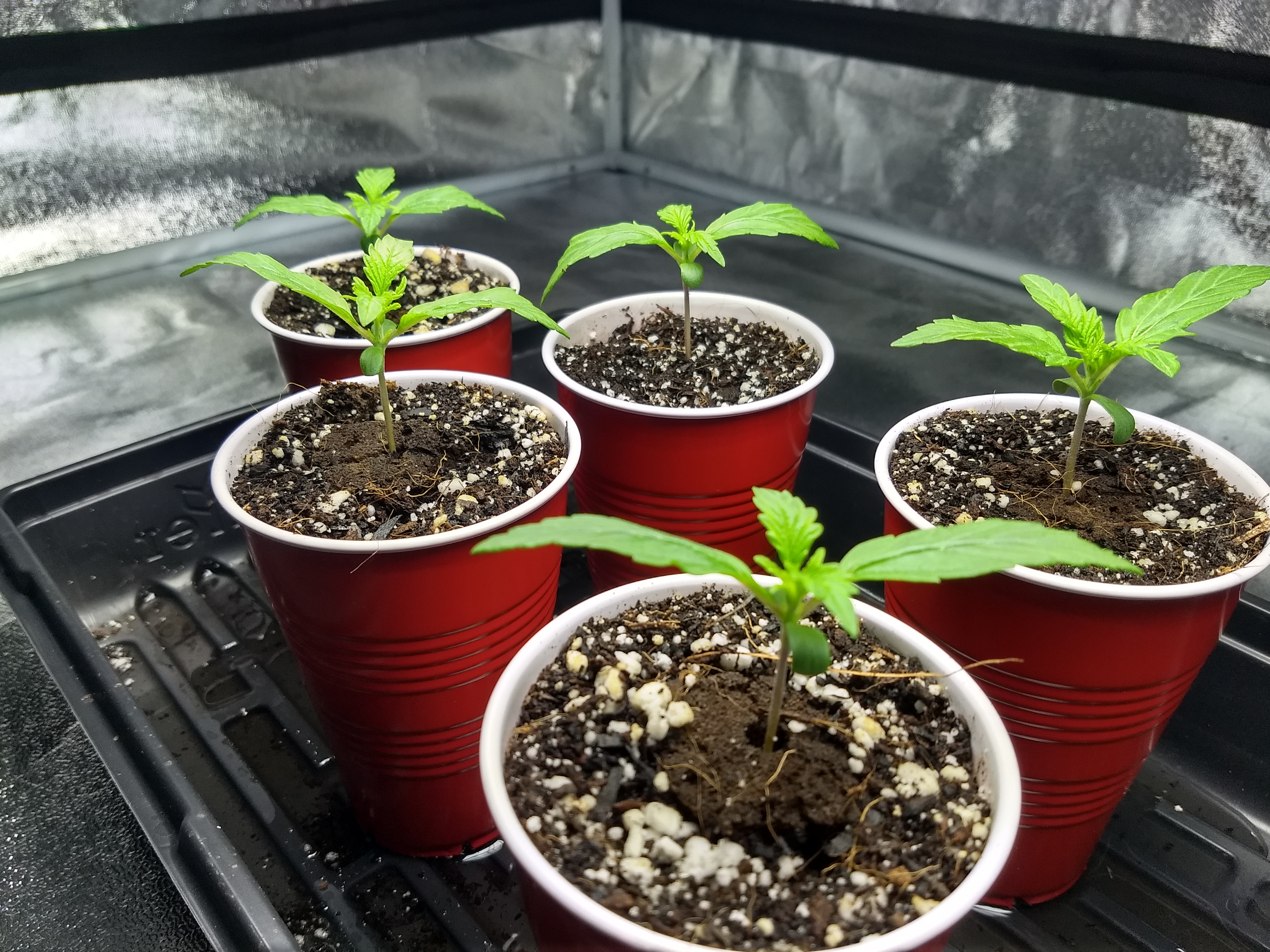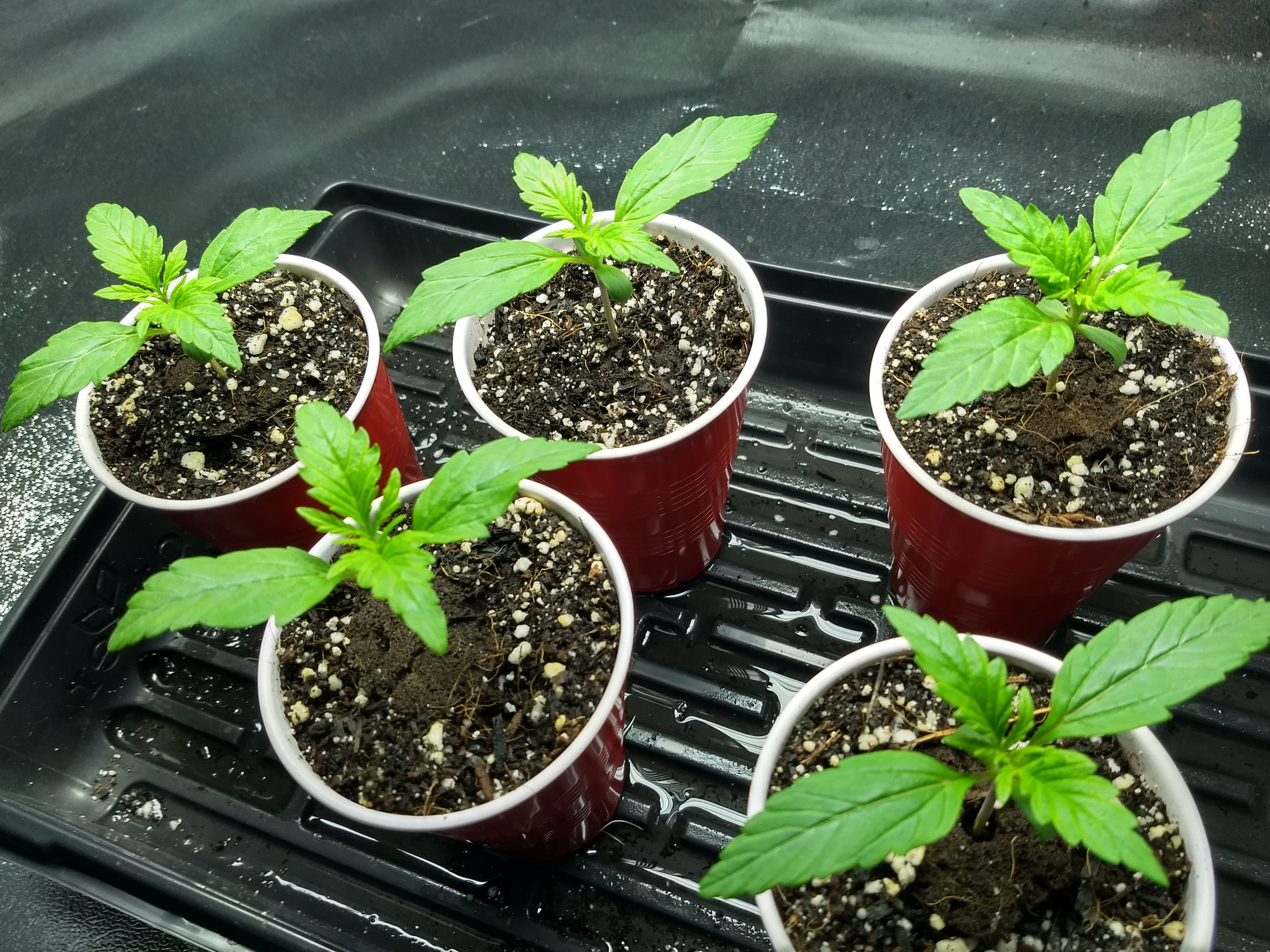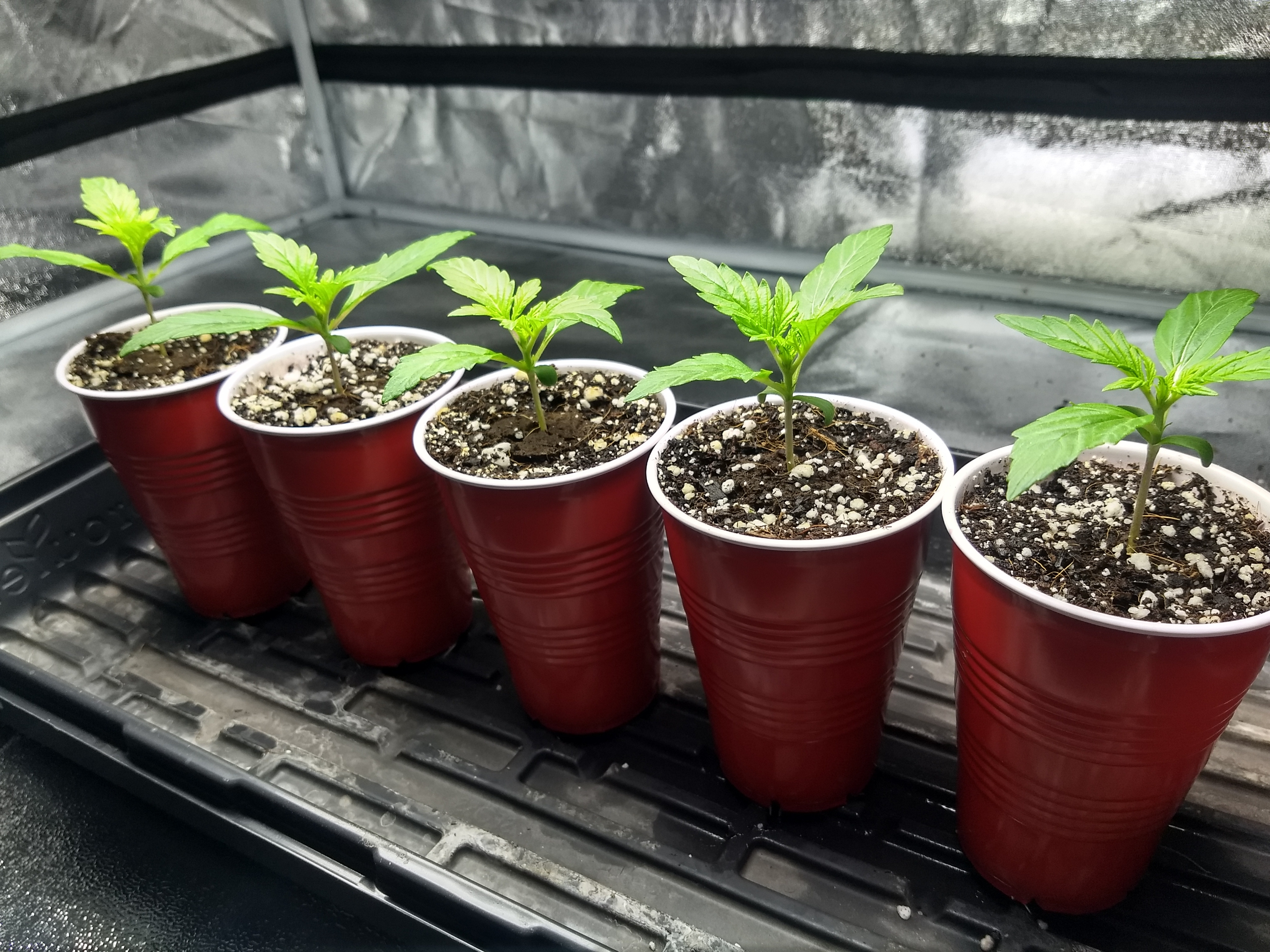 I've never rushed out of Solo cups. I cut big enough holes around the bottom that it prunes the roots and they don't circle. Just have to know how to feed because they use the 60/40 soil perlite mix really fast then it's on you to keep em alive. I have some yellowing because I haven't Fed half of the plants, just water to see the effects, well they all got fed today strong n and low n depending. First 4 way lst today.3 PhotosVegging 4 aurora indica, waiting on seeds. Got eyes on a 4x8x8 tent.