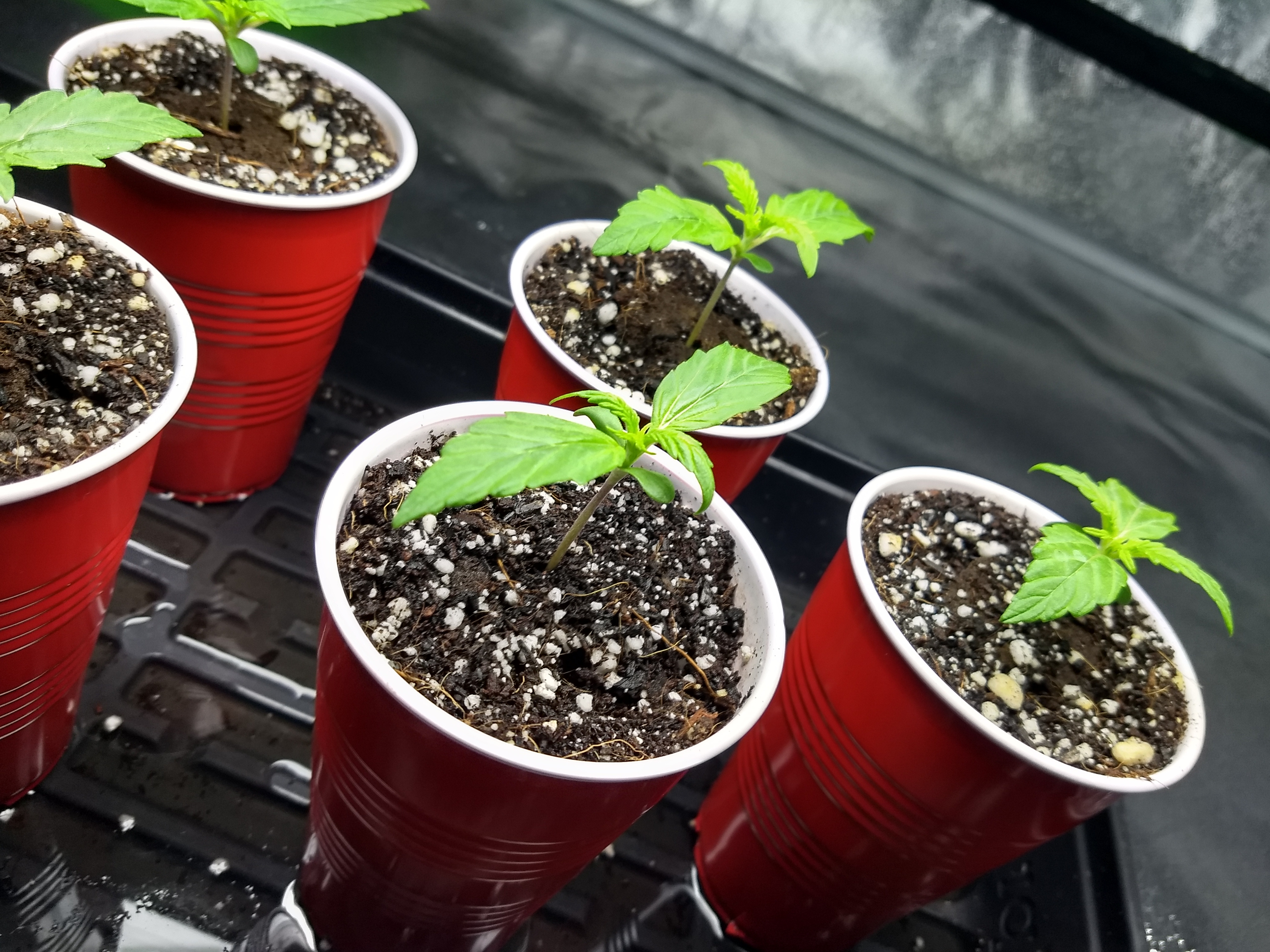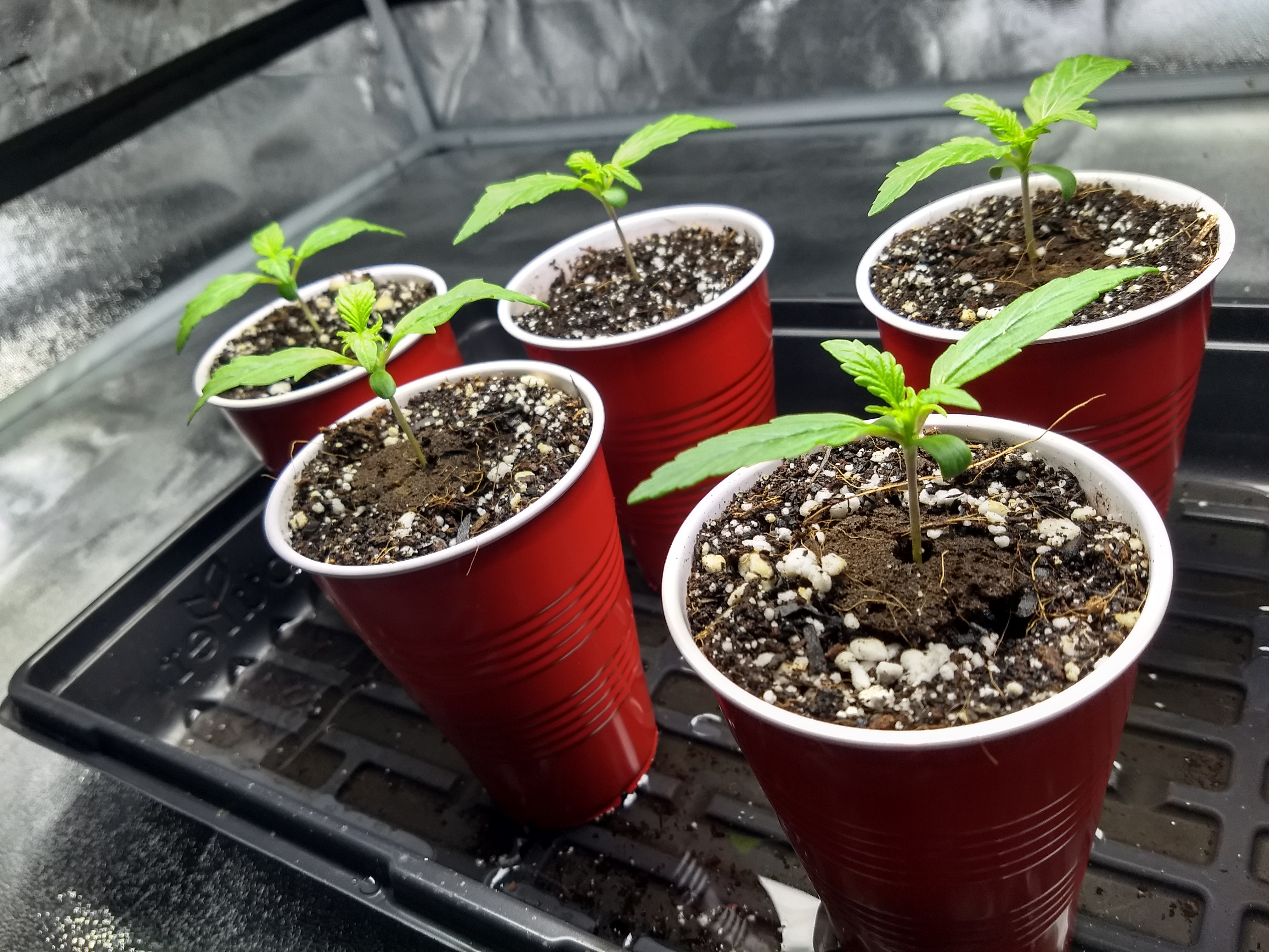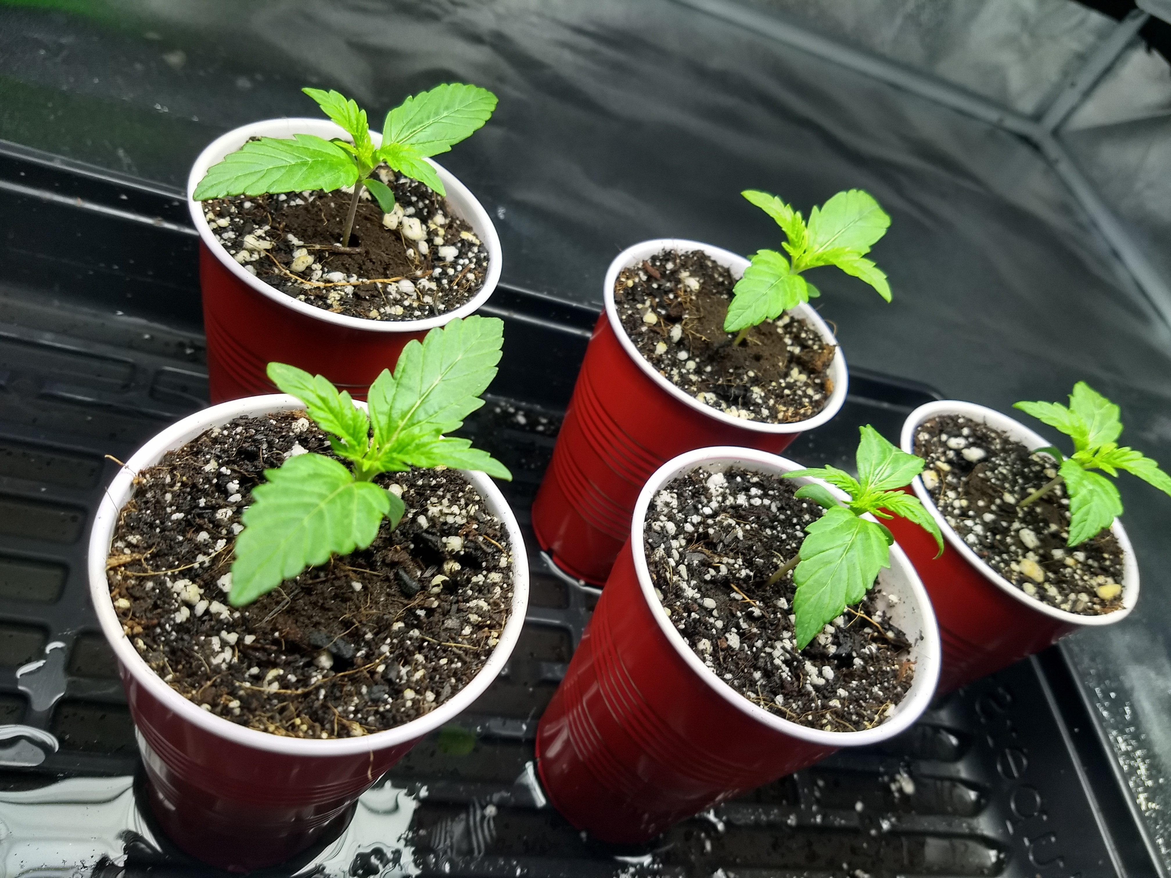I've never rushed out of Solo cups. I cut big enough holes around the bottom that it prunes the roots and they don't circle. Just have to know how to feed because they use the 60/40 soil perlite mix really fast then it's on you to keep em alive. I have some yellowing because I haven't Fed half of the plants, just water to see the effects, well they all got fed today strong n and low n depending. First 4 way lst today.3 PhotosVegging 4 aurora indica, waiting on seeds. Got eyes on a 4x8x8 tent.