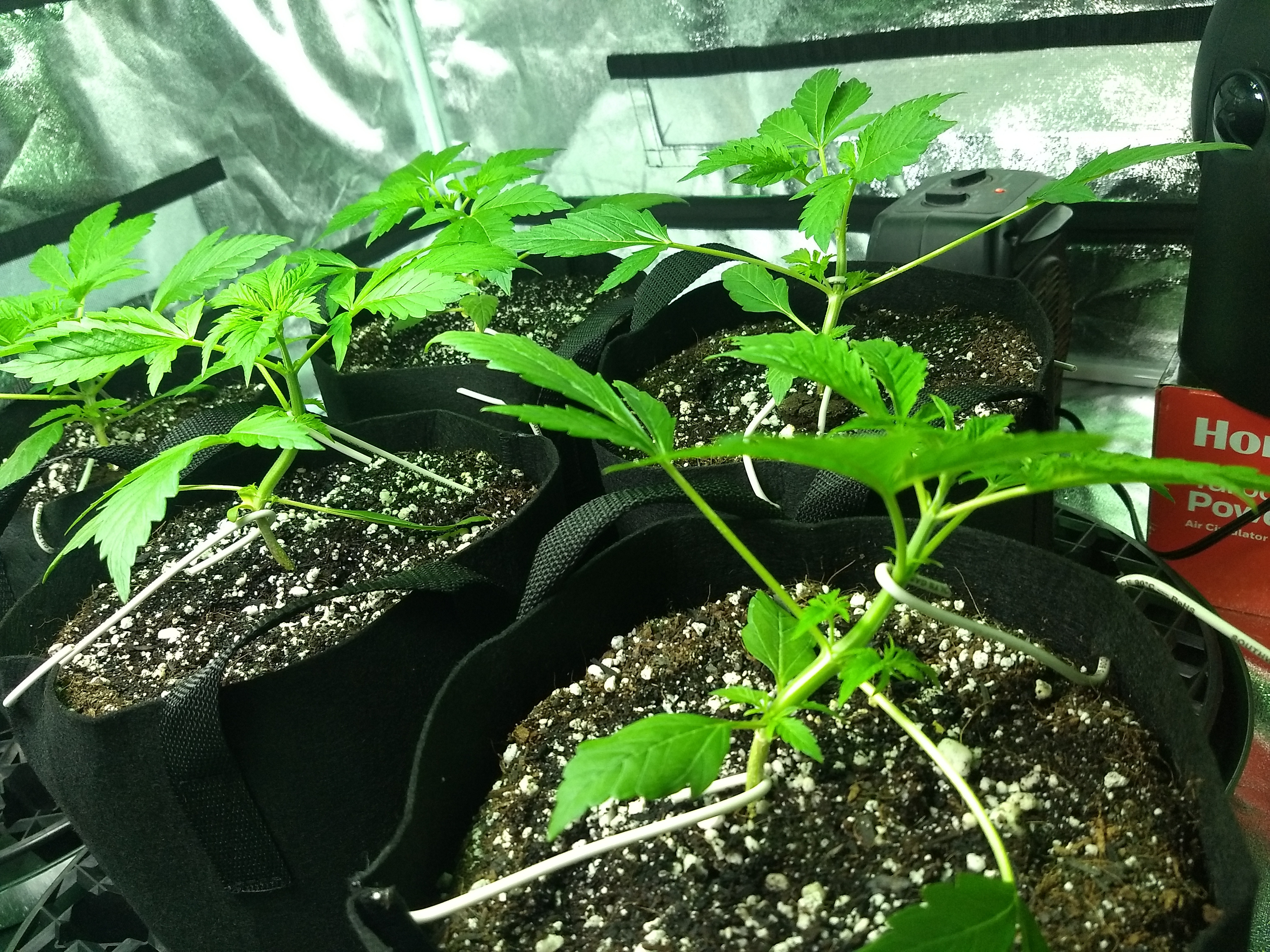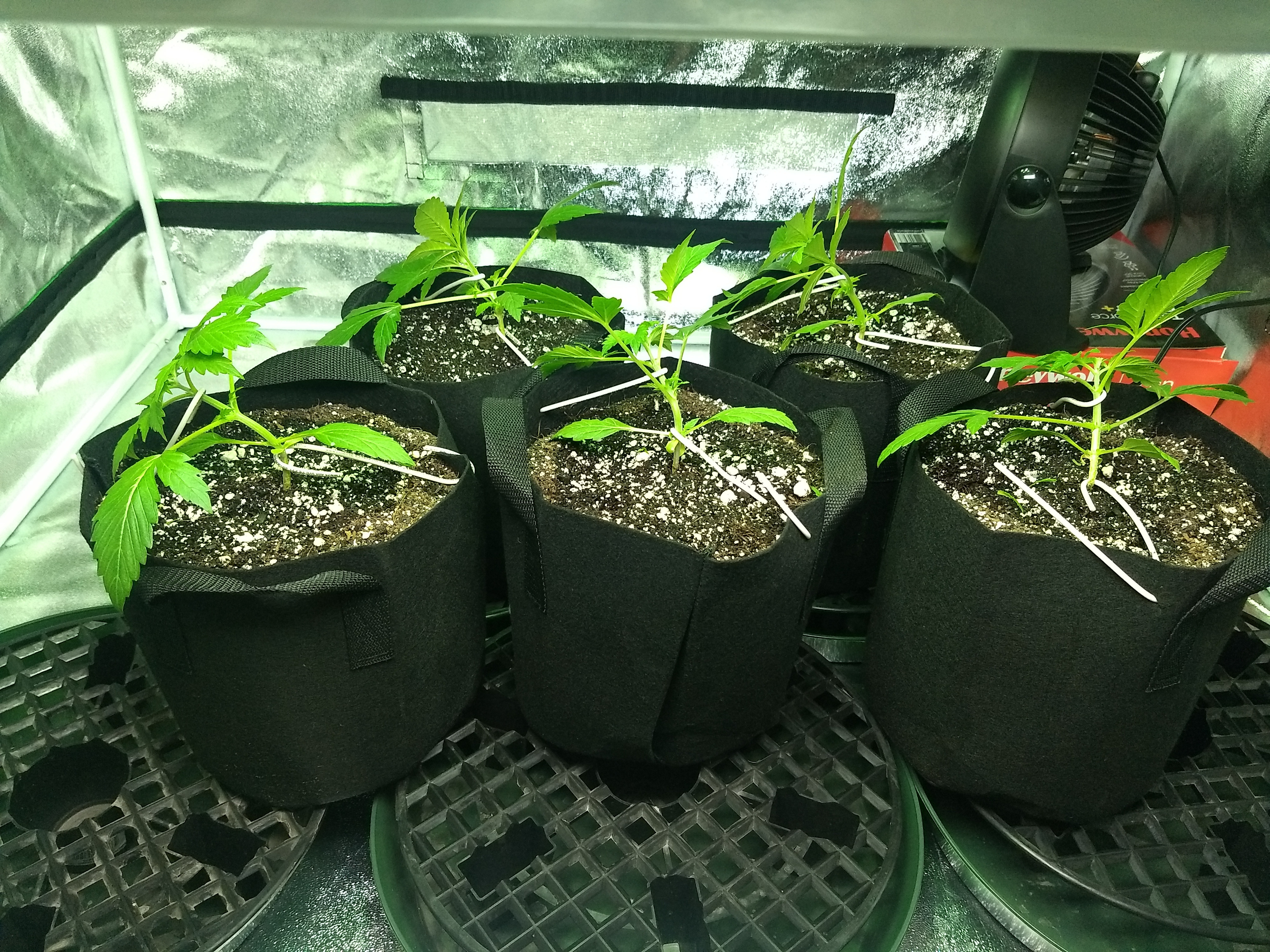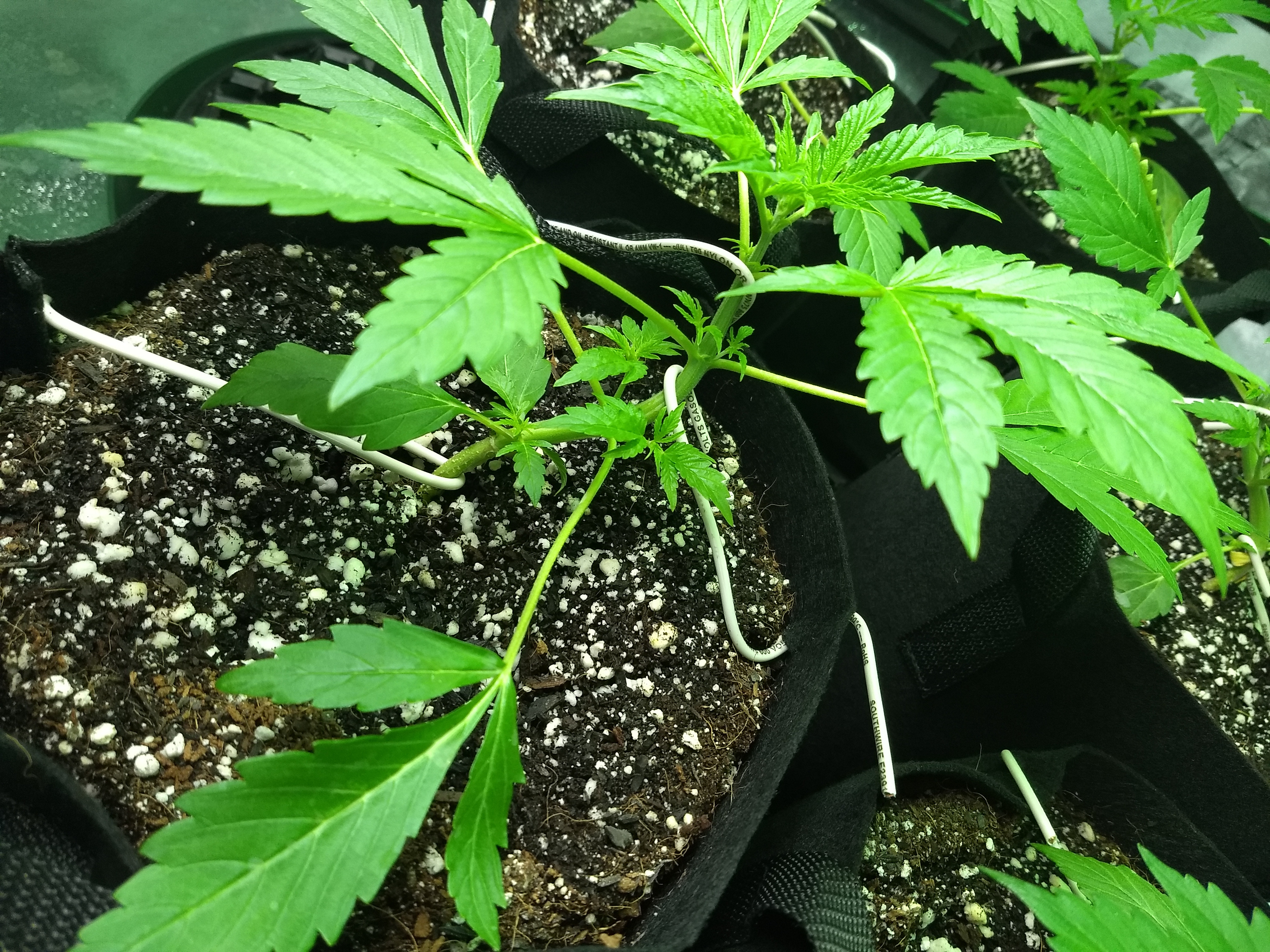 I don't think I like training very much. I'm worried I'm gonna break something. I fimmed one. I think. I mean maybe I topped it, IDK I only cut off like a quarter inch. And then tried to LST it. Give me pointers before I go fuck up the other 4 plants.
