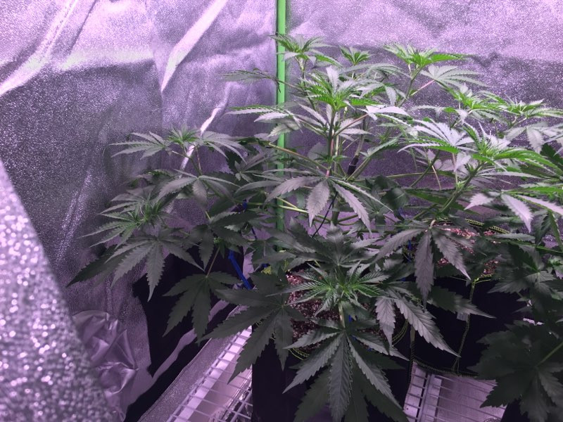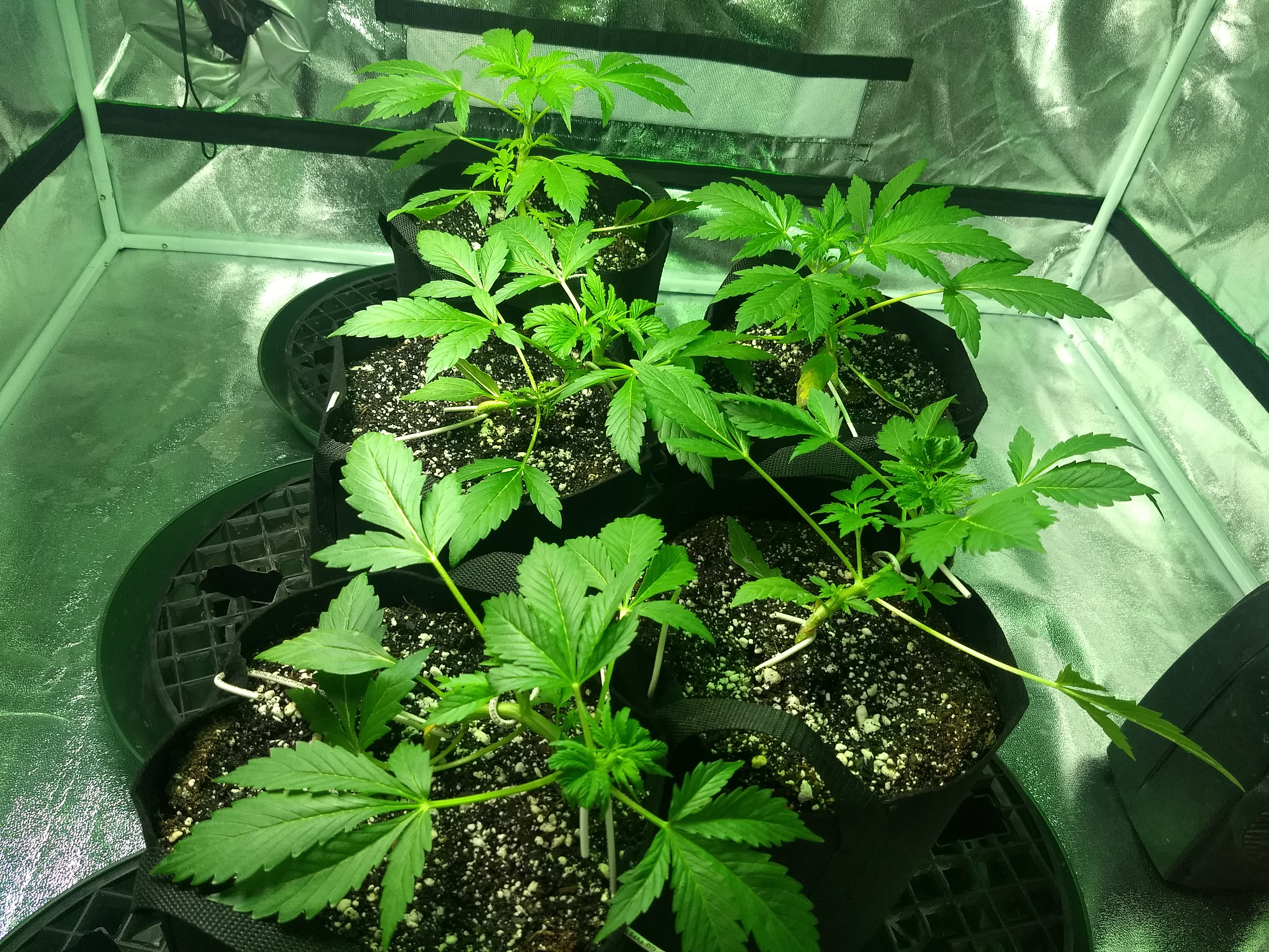 good morning dude, mine are right behind yours, day 29 here. still no sign of flowering. decided to do some LST on one, last Sunday, after seeing some pics of texasbob's plants, so I tied her down, all was looking good, then I came back into the grow room, several hours later and the main stem was snapped, just barely handing on. i taped her back together, thought for sure that section was dead, then all the sudden, when i came home from work on Thursday, she was back to life. I was so happy, lol!