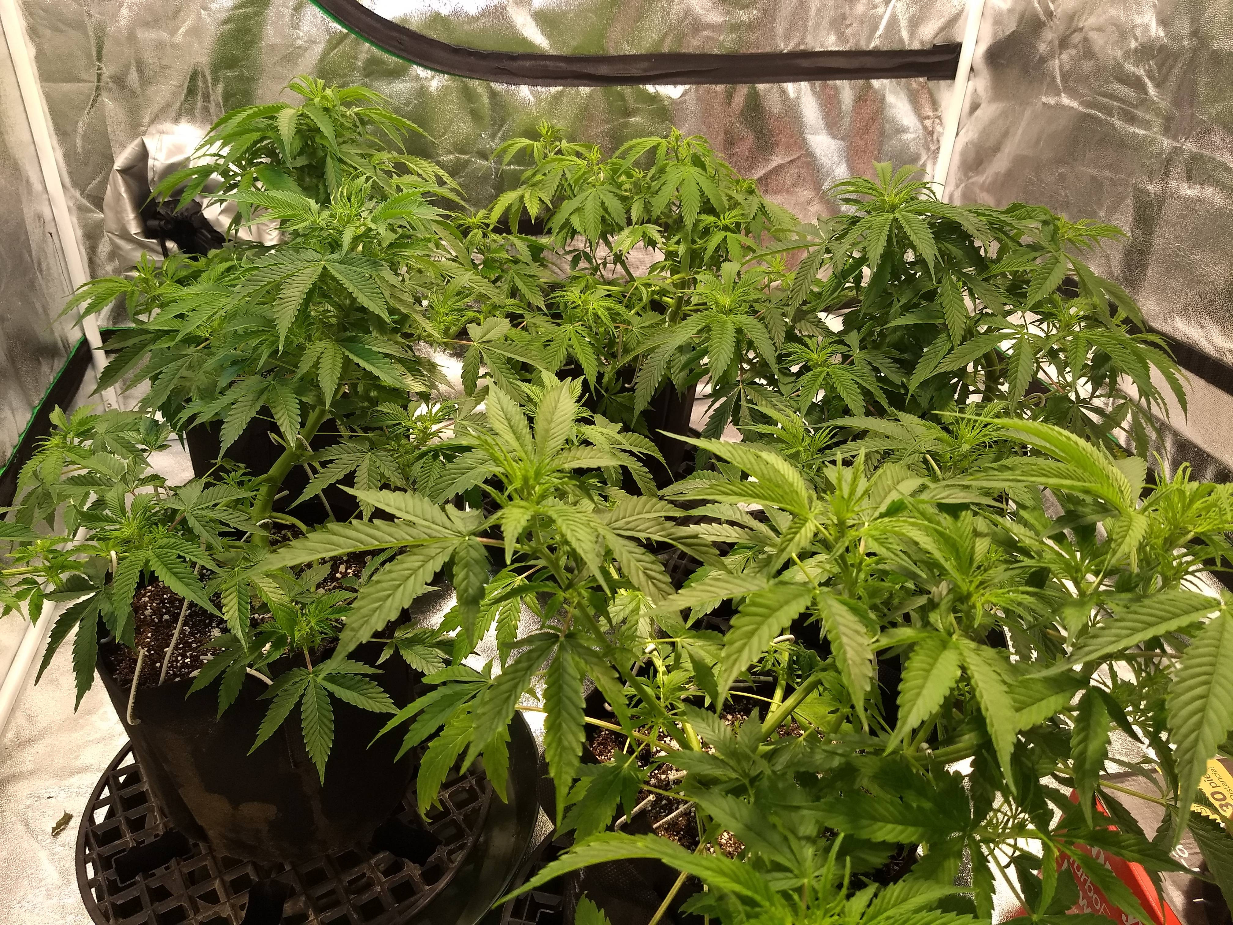 My first grow. Yesterday morning: Lv6Zbh1.jpgnnCwrXy.jpgkQEaYXu.jpg This morning: 6WwANdl.jpg378B7tm.jpgWBPh5bq.jpg AMS Northern Lights XTRM Auto-fem (And we know that the auto part was untrue at the very least) They are in 2 gallon fabric pots, under a 315CMH and a dinky T5HO. I haven't seen the temp top 80 yet, but it's