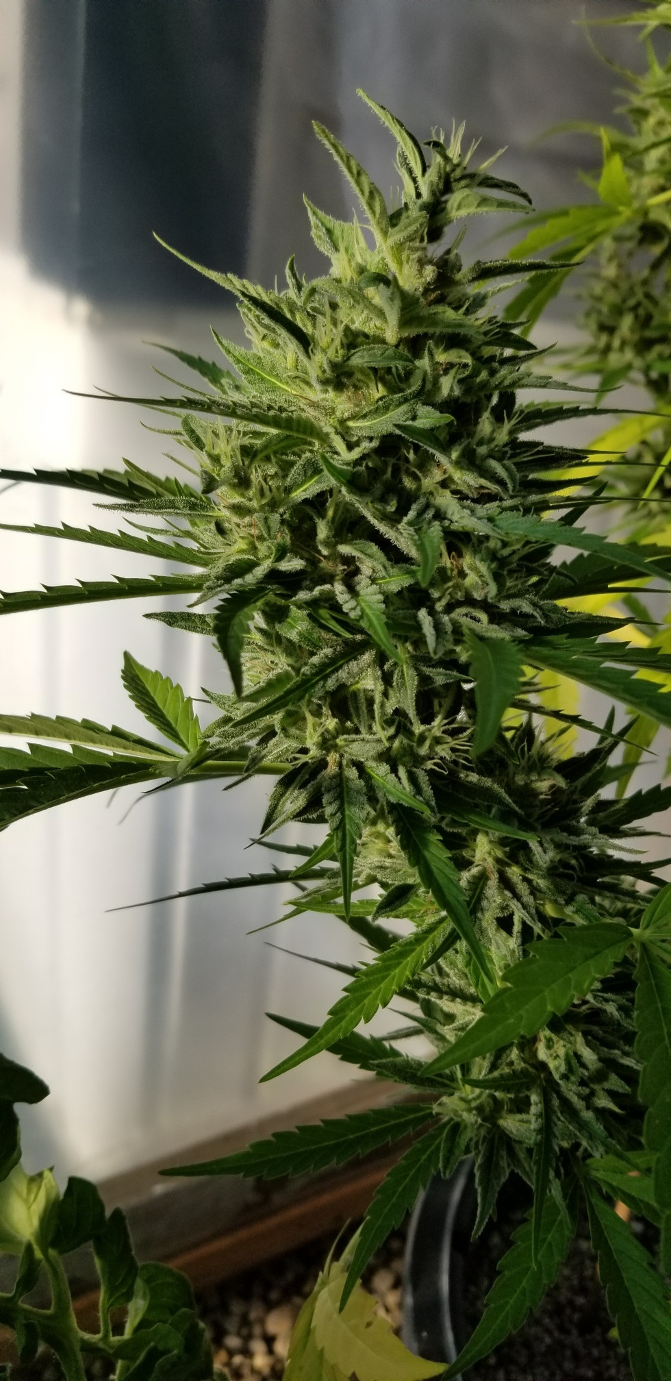 Oh man now this is exciting to see i have 4 mini versions of GWS in auto form going. Yours is a beauty of a photo great size man your going to get a haul off of her. She is a beauty. I just this a.m. finished the last of the tie downs on those 4 GWS autos they have been in a tent under 24-7 LED for a month now. I'm sure i slowed down the timing because of so much training and i broke a stem slightly she's gonna be fine. I'm sending them outdoors to the big world today it's so hot in the 70s during the night. Keep posting EthnicColeslaw i'd love to see the finish of yours.